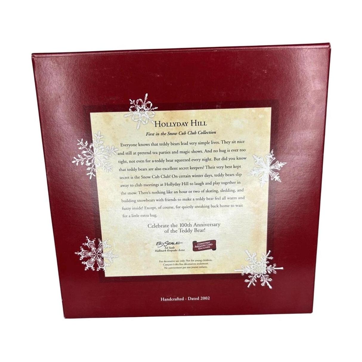 Set the stage beautifully with the 2002 Hollyday Hill Display Base (Snow Cub Club)—the elegant platform designed for display of the Snow Cub Club series. This base features a curved snowy hill-scape about 1.294″ H × 7.5″ W × 5.051″ D and is part of the Hallmark 2002 promotion. Crafted by Ed Seale with detailed winter texture, this base is used to showcase one or more of the Snow Cub Club figurines.
