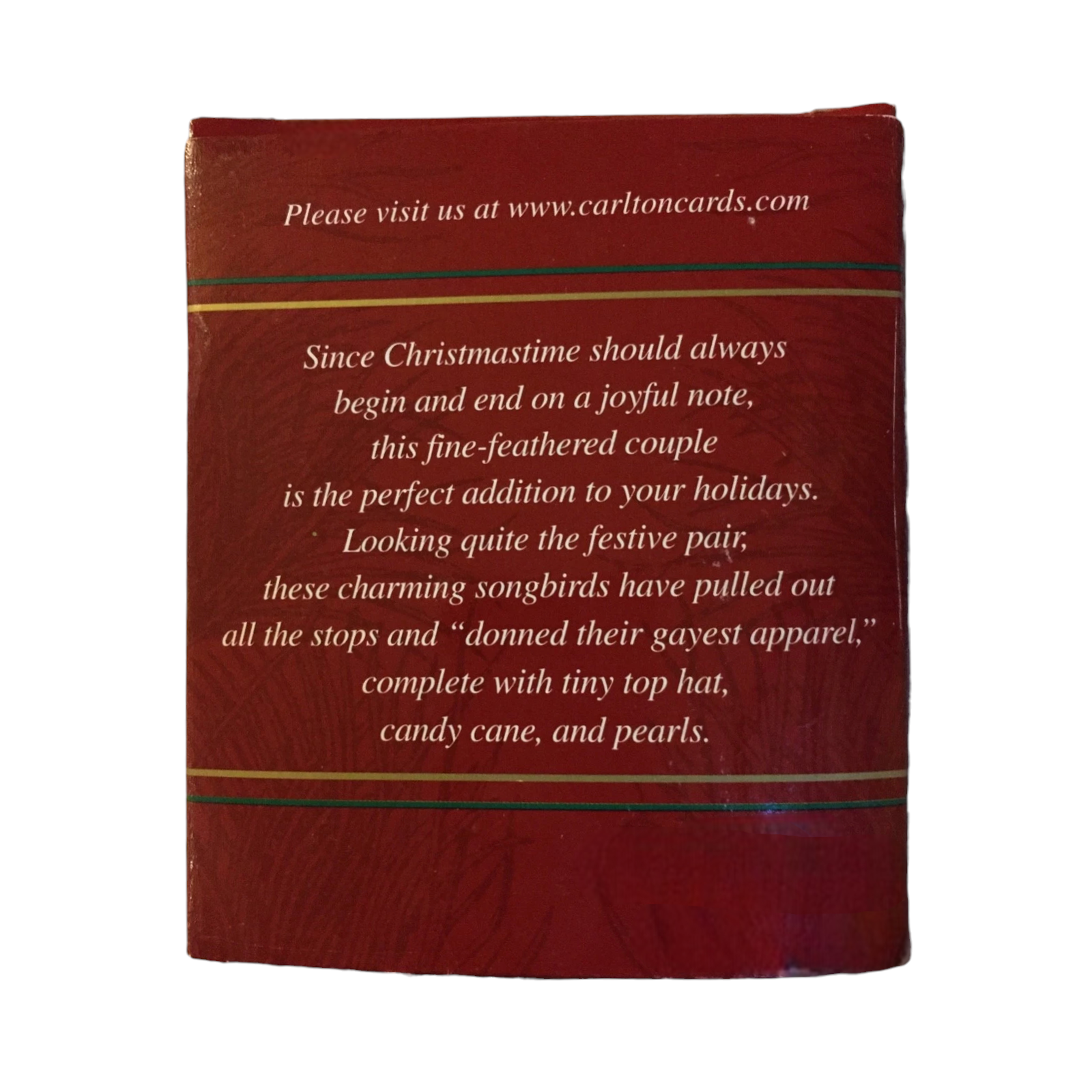 Unveil holiday whimsy with the 2002 Nutcracker Tweet (Penguins) ornament from Carlton Cards’ delightful Penguins series in the Heirloom Collection. This playful figurine captures two adorable penguins dressed as Nutcracker performers—complete with soldier hats and instruments—perched on a festive stage aimed to enchant any Christmas display. It arrives in its original red Carlton Cards Heirloom box, complete with molded insert and hang‑tag.