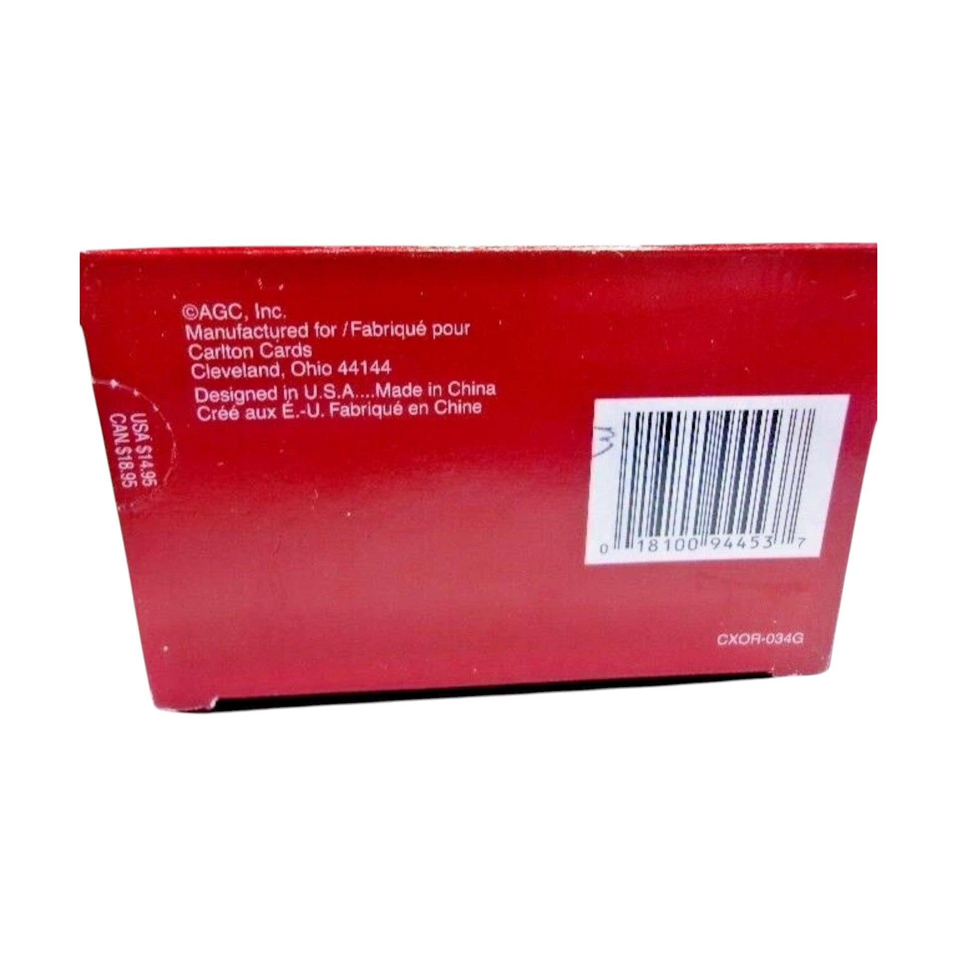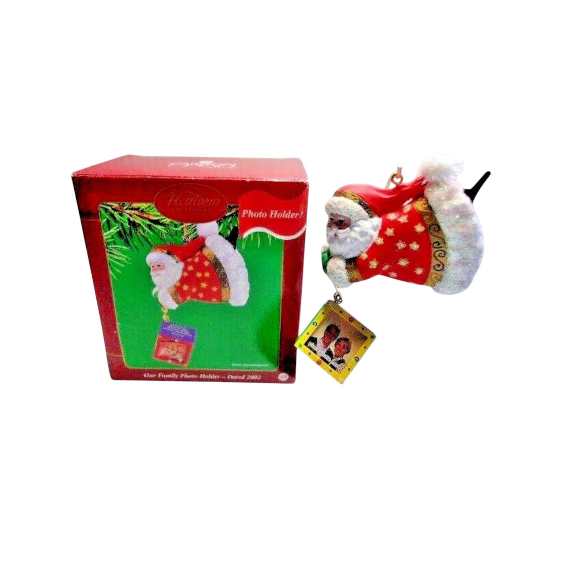 Celebrate shared memories and display your favorite family moment with this endearing “Our Family Photo Holder” ornament, SKU CXOR-034G. This 2002 edition features a Santa figure holding a cube-style frame designed to hold a small family photo, molded in mixed materials with rich painted detail and a tree-ready hanging loop. Part of Carlton Cards’ Heirloom collection, it combines holiday sentiment with decorative functionality—making it not just an ornament, but a keepsake frame you’ll love to revisit year after year. A perfect gift for families, grandparents, or anyone who treasures holiday-sentiment décor.
