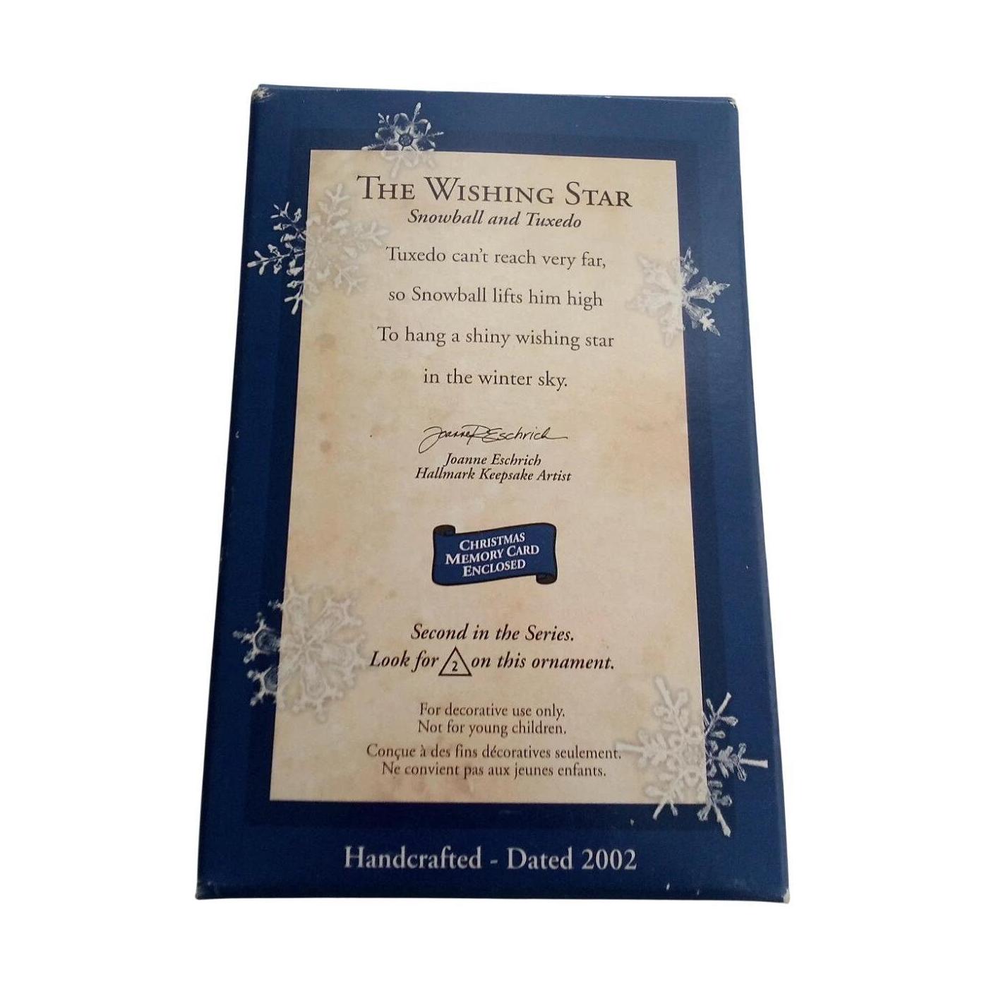 Adorn your tree with a magical moment from Hallmark’s Snowball and Tuxedo collection—2002 The Wishing Star (Snowball and Tuxedo). This enchanting ornament depicts Snowball the polar bear holding Tuxedo the penguin aloft so he can place a shining star atop an invisible tree. Designed by Joanne Eschrich, the beautifully flocked resin/plastic keepsake includes the original box and tag. Standing about 2½–2⅝″ tall, this collectible requires no batteries, cords, or lights, ready for immediate display.
