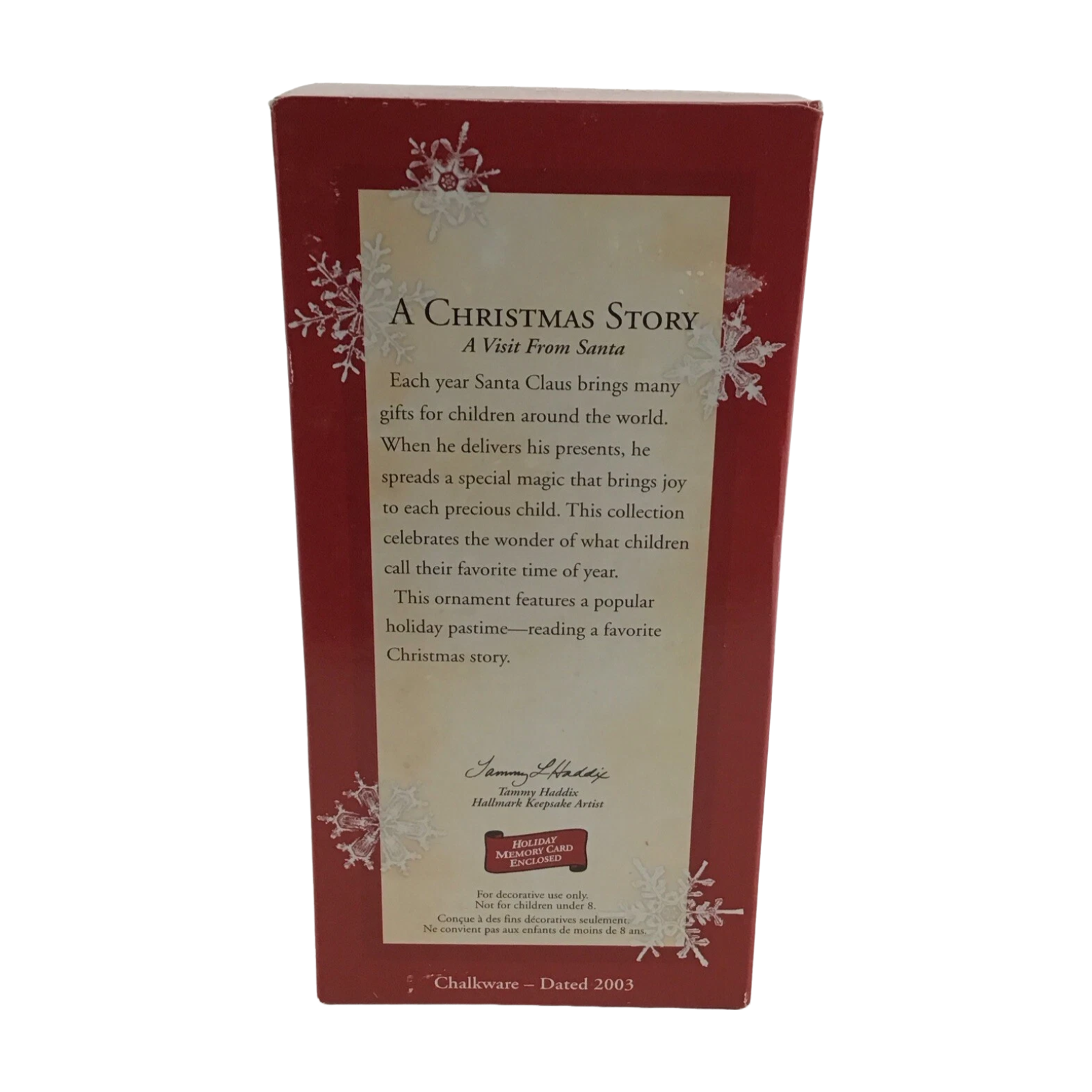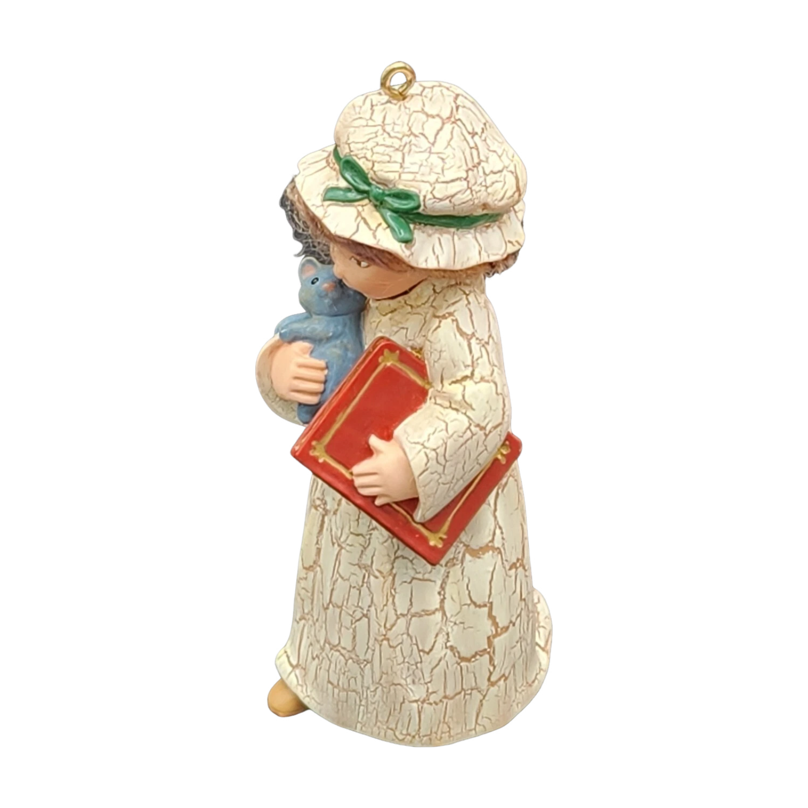 Bring classic holiday storytelling to your tree with the 2003 A Christmas Story ornament—Part of Hallmark’s A Visit From Santa collection. Crafted in vintage-style chalkware, it depicts a young girl in a nightcap, holding a Christmas book and gently cradling a grey kitten. This charming collectible arrives in its original red keepsake box, complete with tag and protective insert—ideal for gifting or display. No batteries, cords, or light strings are required—this nostalgic piece is beautifully static.