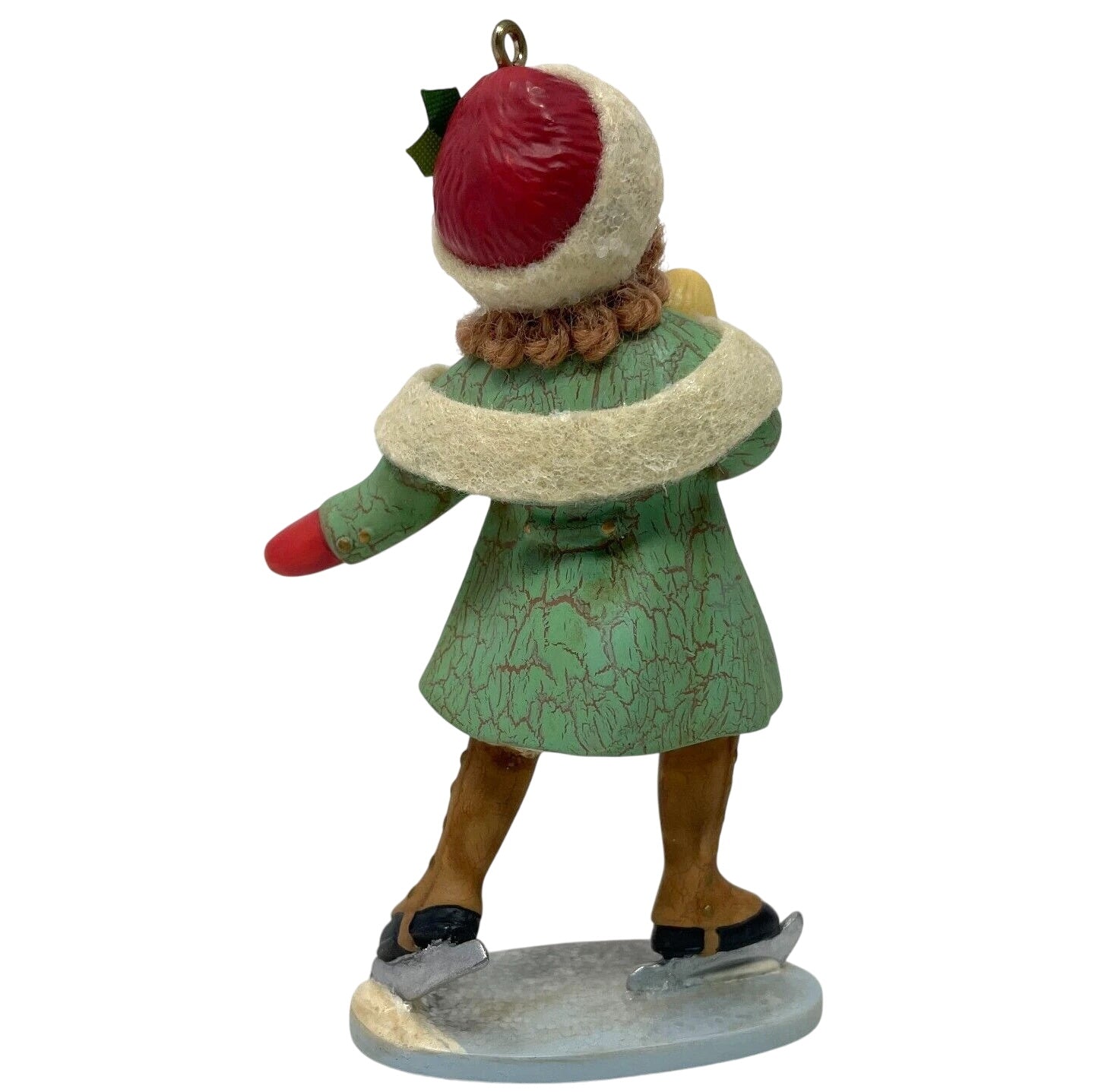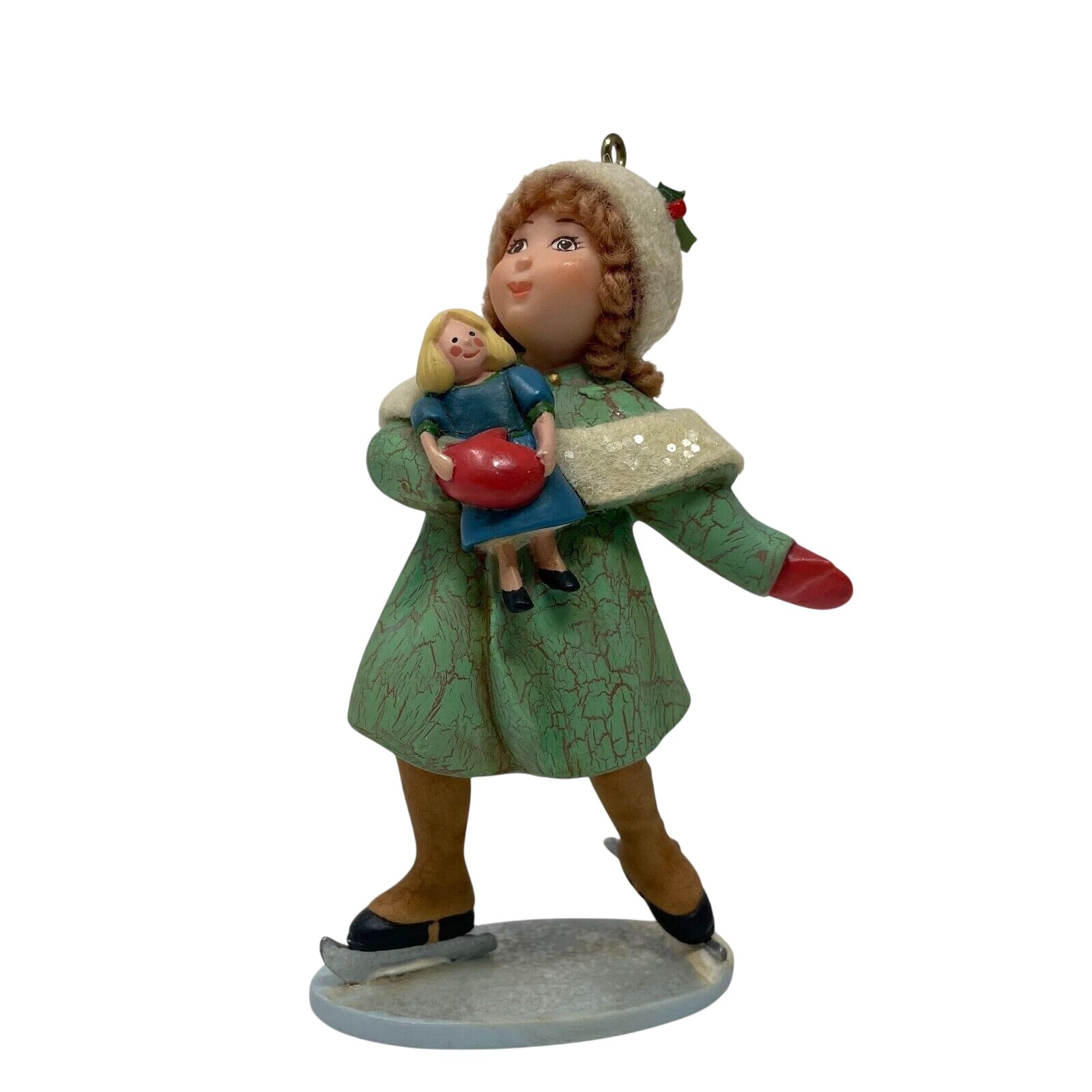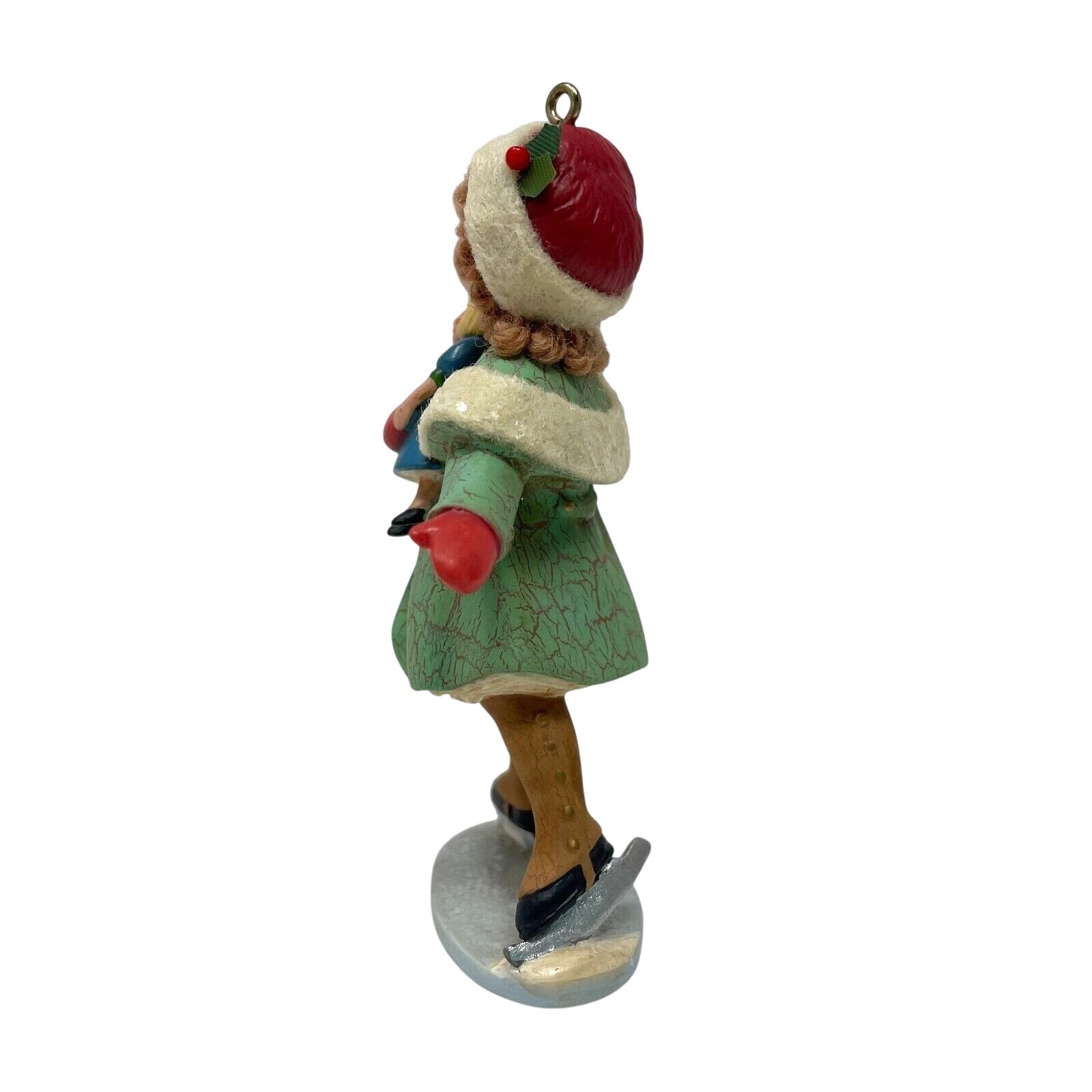 Delight in nostalgic charm with the 2003 A Very Good Girl ornament, part of Hallmark’s A Visit From Santa collection. This vintage-style chalkware-inspired design features a sweet young girl dressed in a teal coat trimmed in fur, red gloves, and skates as she joyfully glides across ice with a doll in hand. Included is the original keepsake box, tag, protective insert, and gold hanging cord. No batteries, cords, or lighting are required—this lightweight resin beauty charms in static elegance.