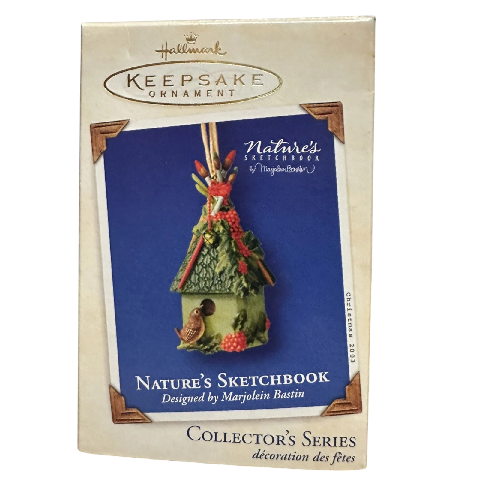 Celebrate the arrival of spring with the 2003 Around the House ornament from Hallmark’s Nature’s Sketchbook series. Designed by Marjolein Bastin and bringing her nature-inspired artistry to life, this stunning keepsake features a charming copper‑topped birdhouse nestled with two cheerful chickadees, embodying the joy and promise of new beginnings. Typically presented mint in its original Keepsake box, this ornament adds an elegant splash of the outdoors to any holiday décor or nature-themed collection.