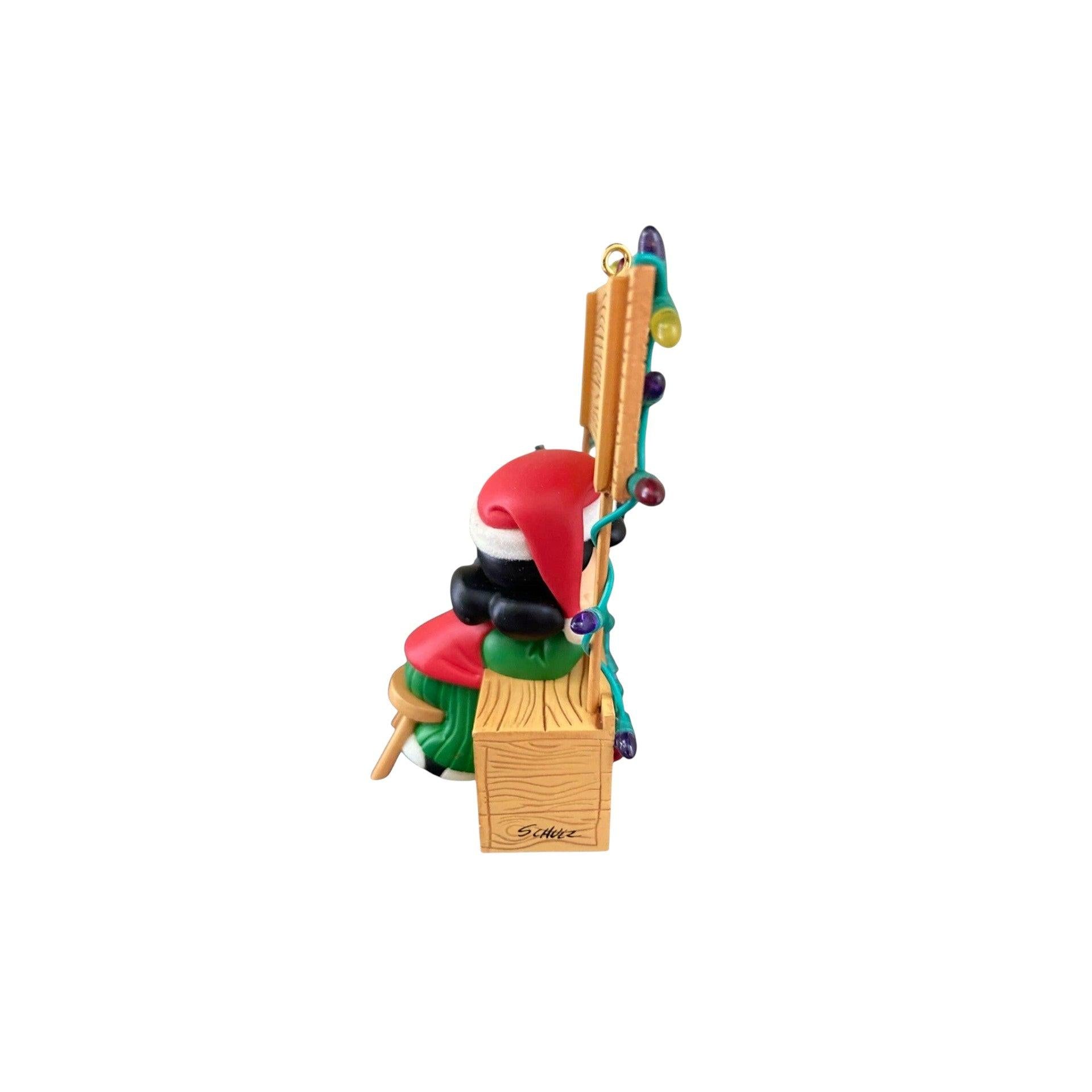 Step into the holiday spirit with this 2003 edition from Hallmark featuring the iconic Lucy van Pelt from the Peanuts gang. The ornament shows Lucy standing proudly at her signature advice booth, this time themed for the holidays with signage that references “Holiday Psychiatric Help 5 ¢” and “The Doctor Is IN.” At approximately 3½ inches tall, it’s crafted in richly painted resin with fine detail, bringing both nostalgia and cheerful décor to any tree. A perfect pick for Peanuts fans, collectors of character ornaments, or anyone with a sense of humor about holiday advice booths.