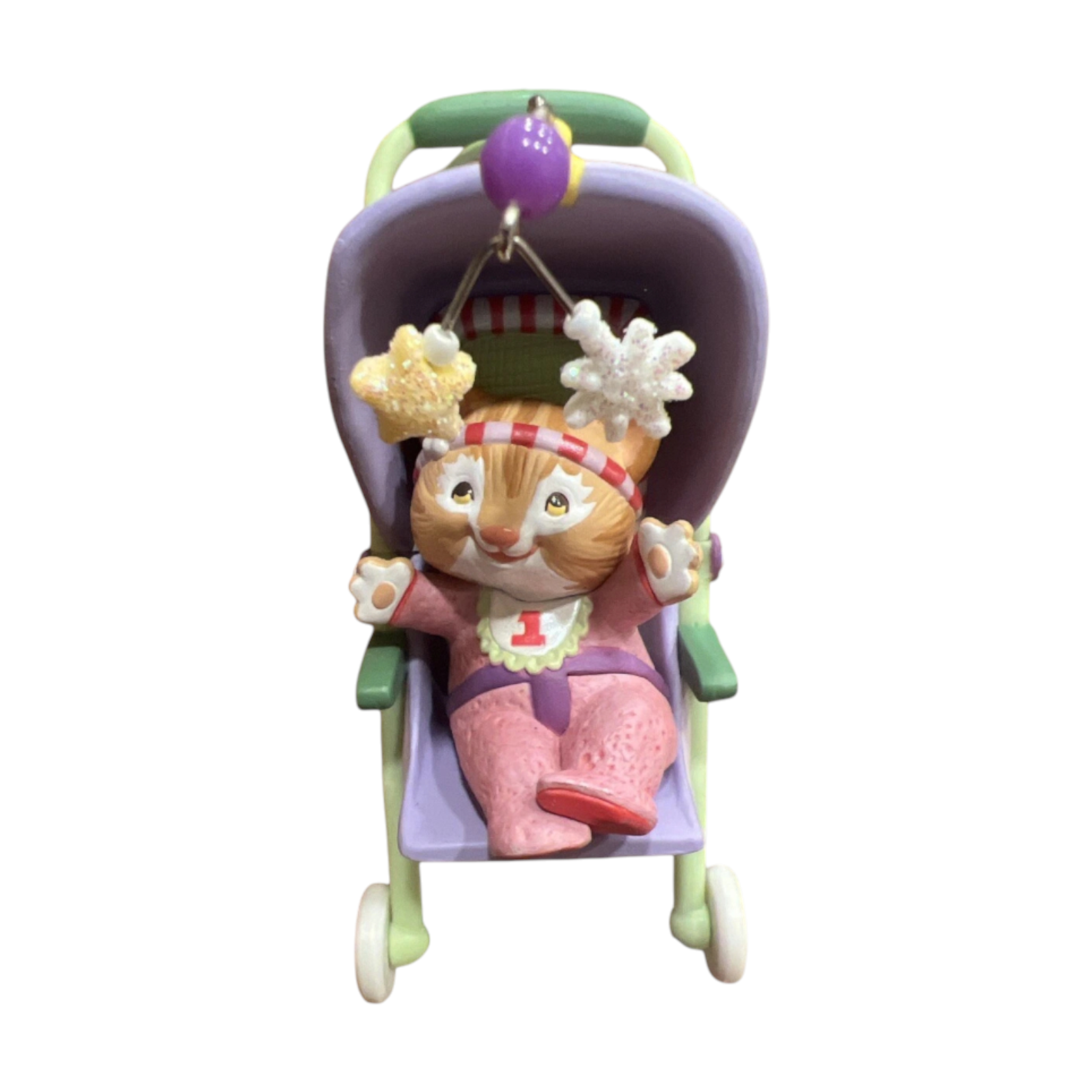 Celebrate your child's inaugural holiday season with the 2003 My First Christmas ornament from Hallmark's Child's Age Collection. This charming piece features a playful design that captures the innocence and joy of a child's first Christmas. The ornament comes in its original packaging, ensuring its pristine condition for years to come. Please note, this ornament does not require batteries, cords, or light strings.