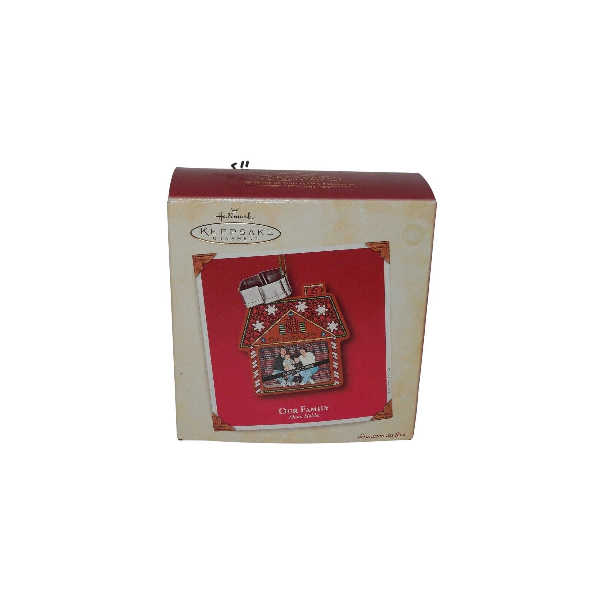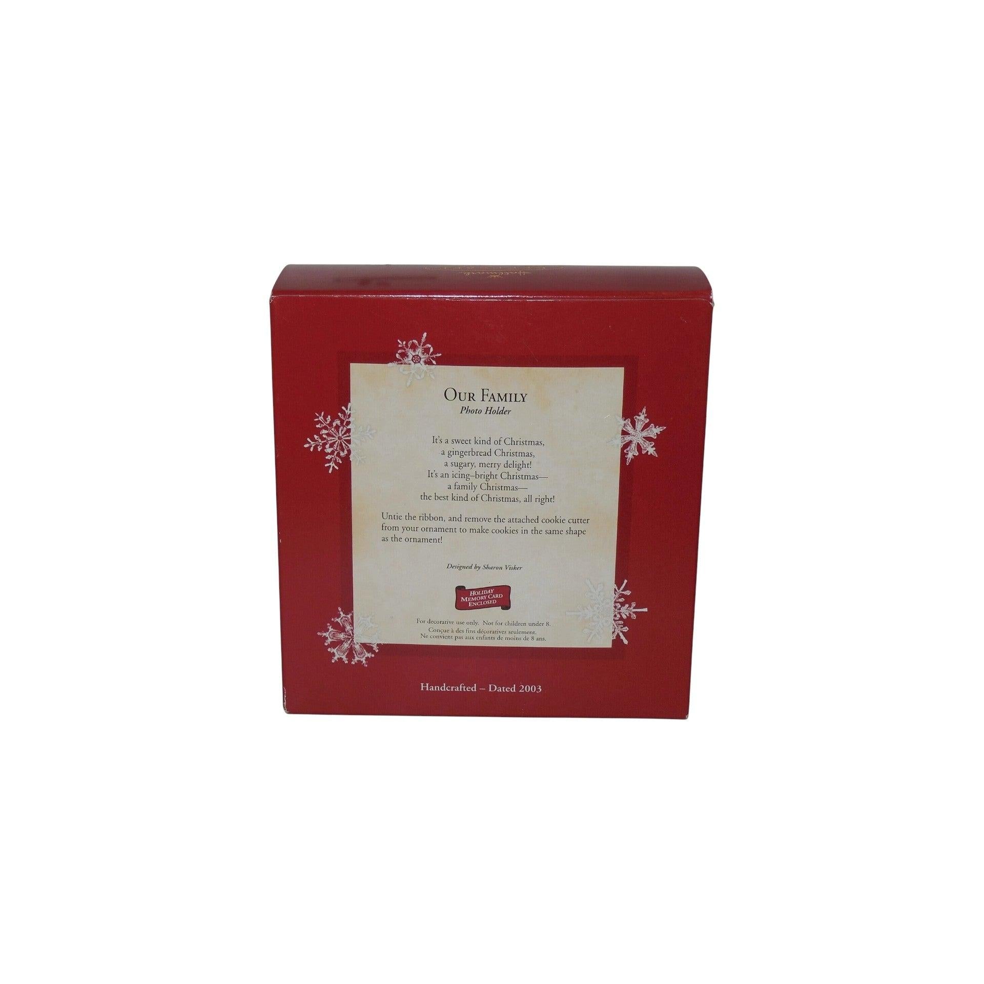 Celebrate your family’s love year after year with the 2003 Our Family Photo Holder ornament. Designed by Sharon Visker, this handcrafted metal keepsake doubles as a photo frame—it displays your favorite family snapshot inside a house-shaped holder and even includes a matching cookie cutter in the same charming shape, allowing you to bake memorable treats just like the ornament. Dated 2003 and arriving in its original box, it requires no power—just a place on your tree or mantel to showcase your legacy.