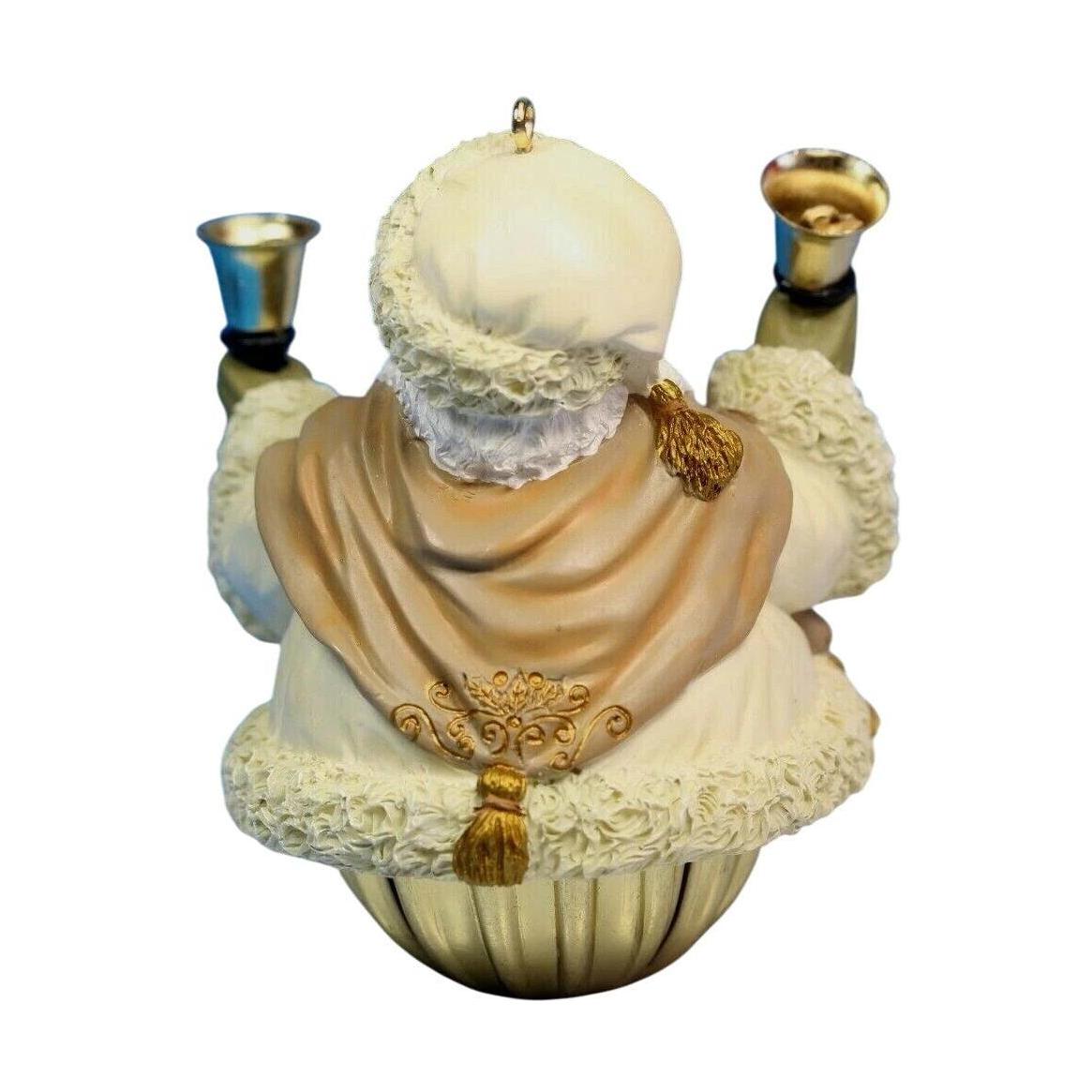 This festive 2004 edition from the Hallmark Keepsake line features Santa Claus joyfully holding bells in both hands—the ornament itself is a jingle bell, so when you gently move it the bell inside rings. Designed by artist Joyce Lyle, the piece stands approximately 3.5″ H × 3.0″ W × 2.75″ D. This charming design blends classic Santa imagery with a functional jingle-bell twist, making it a delightful addition to a holiday tree, especially for those who love ornaments that bring an extra dash of sound and joy.