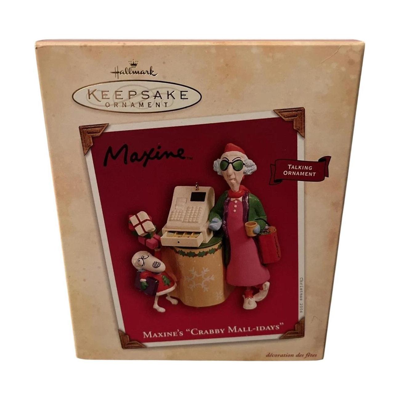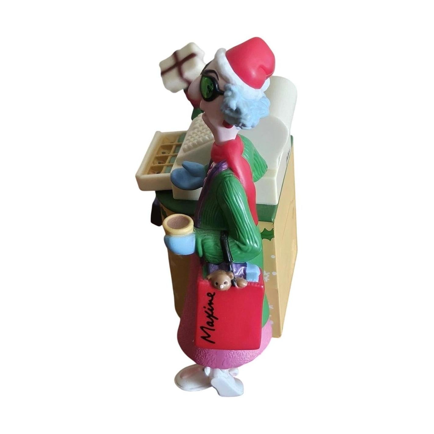 Maxine takes on holiday shopping in Maxine’s Crabby Mall-idays, a talking ornament from 2004 that captures her sarcastic spirit at the mall register. When you press the cash register drawer, she delivers over ten wisecracks, including quips about the cost of Christmas. This multicolored mixed-material keepsake arrives in its original box, uses batteries (included), and requires no cords—just hang where you want your tree to get a dose of humor.