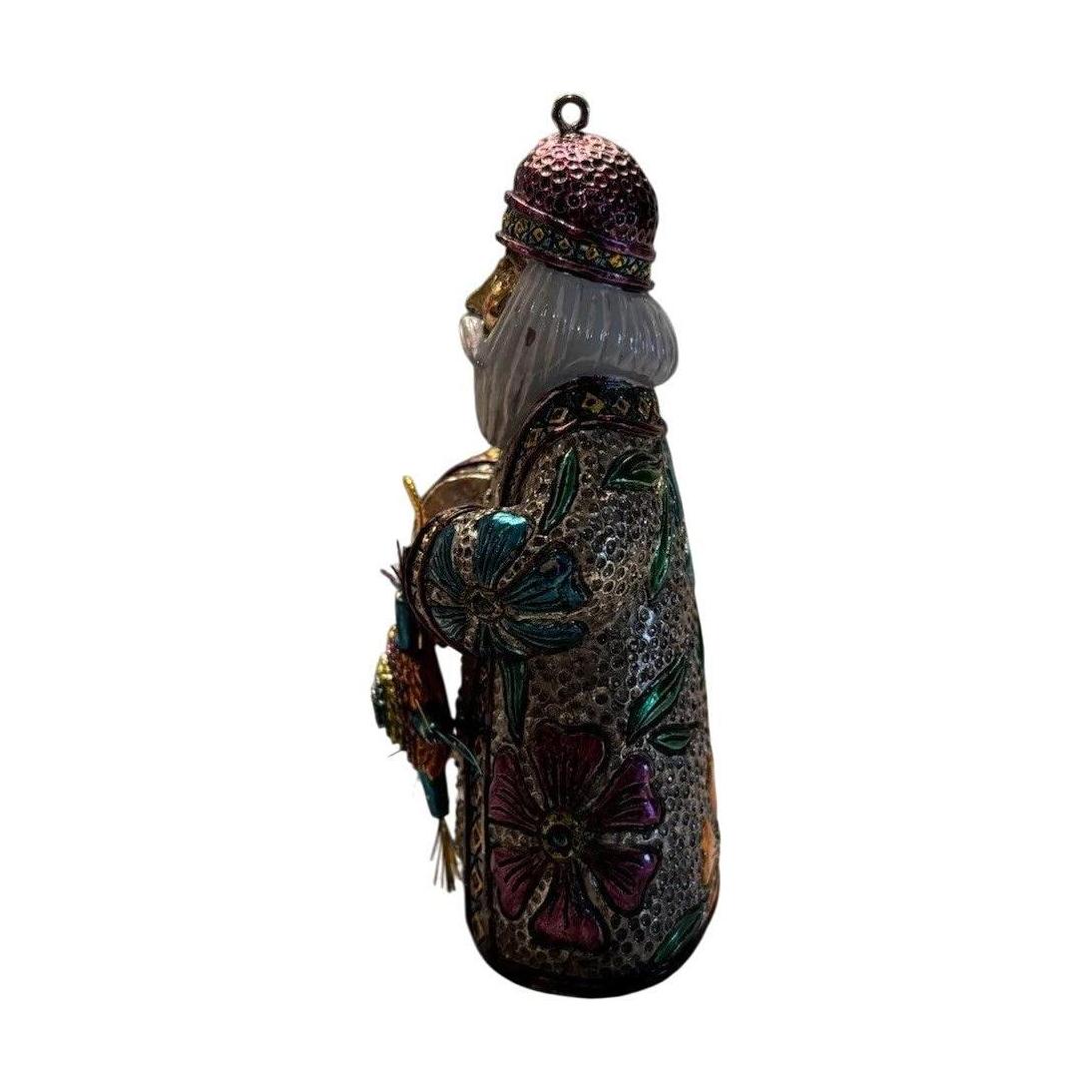 Infuse your holiday décor with vibrant Mexican tradition through Mexico, a collectible from Hallmark’s 2004 Santa’s from Around the World series, this porcelain Santa wears a silver-toned coat adorned with blue, purple, and floral patterns, and holds a radiant star symbolizing festive hope and cultural heritage. Arriving Mint in Box with its original tag, this keepsake requires No Power Needed—perfectly prepared to hang or grace any display.
