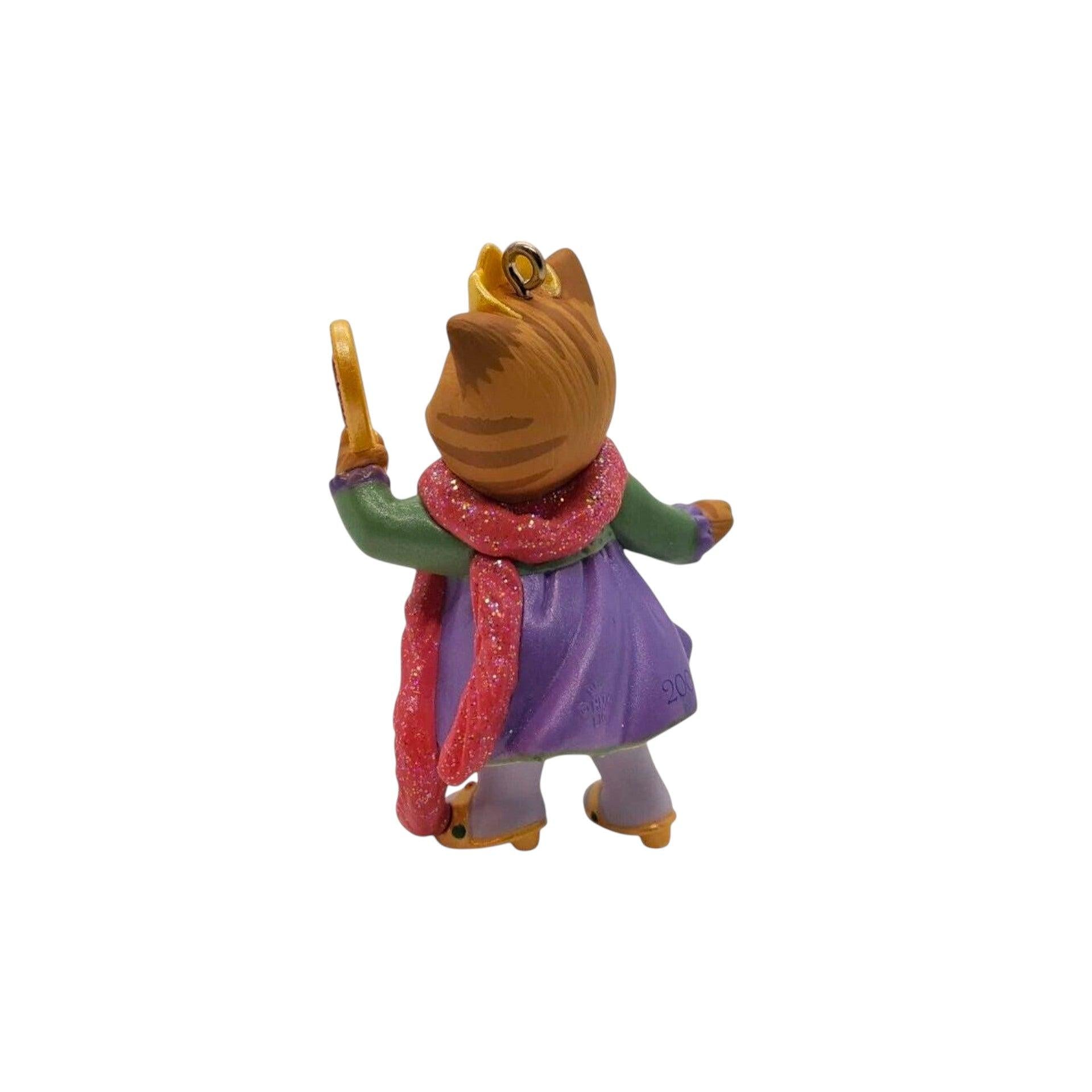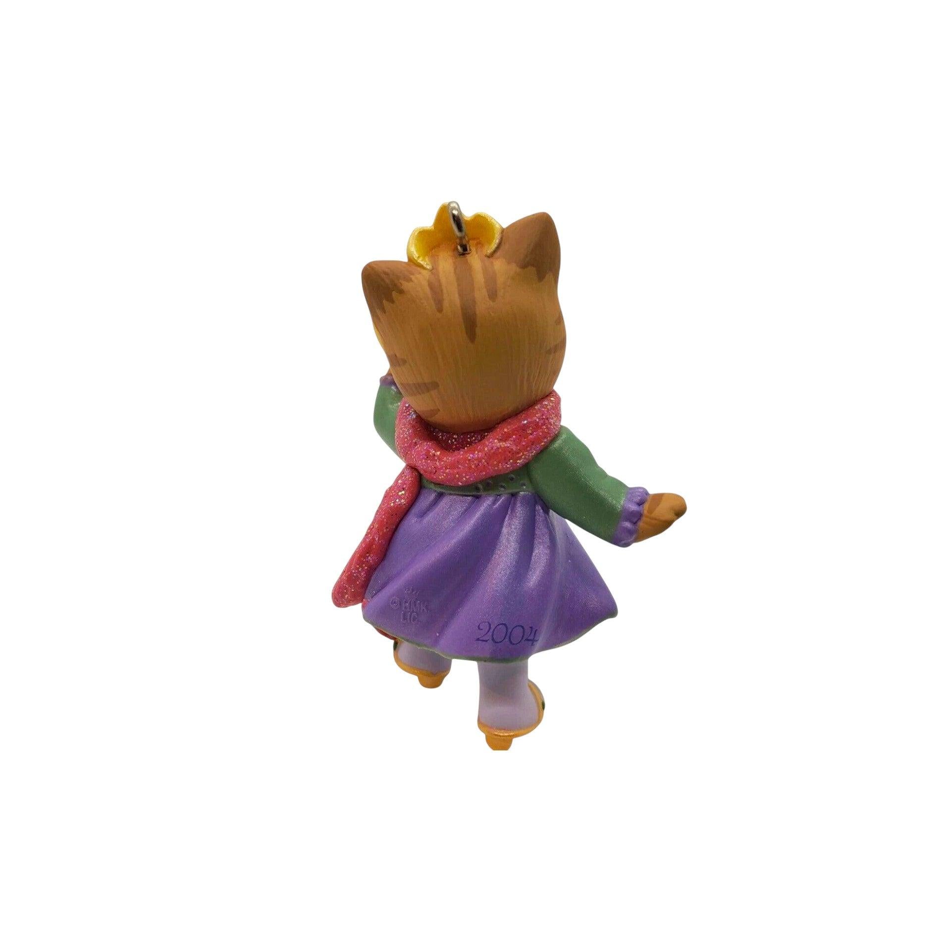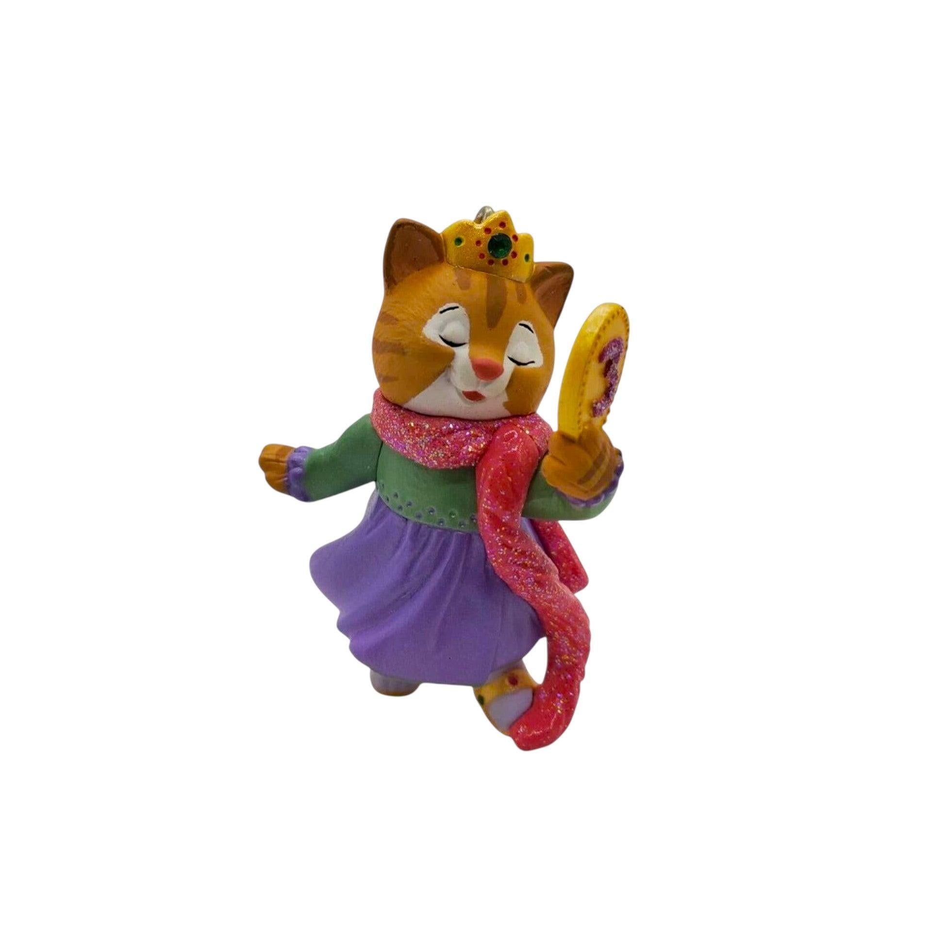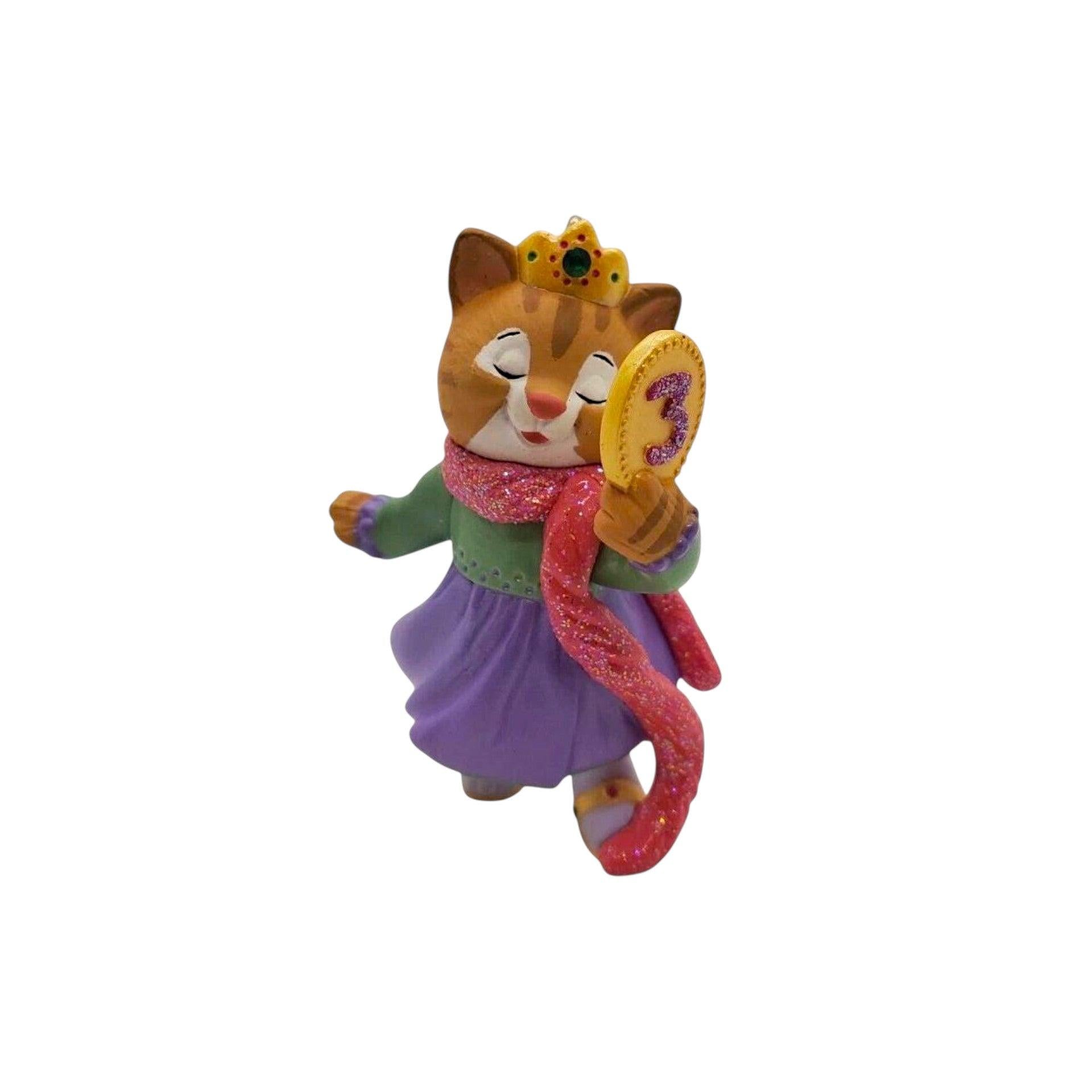 Capture the sweet innocence of a child’s third holiday with the 2004 My Third Christmas – Girl ornament. This endearing keepsake features a kitten dressed as a little princess—complete with a tiara and a hand mirror—perched in a graceful pose with the number 3 adorning her outfit. The delicate detail in her gown, the mirror, and her expression lend an air of timeless charm to this holiday milestone.