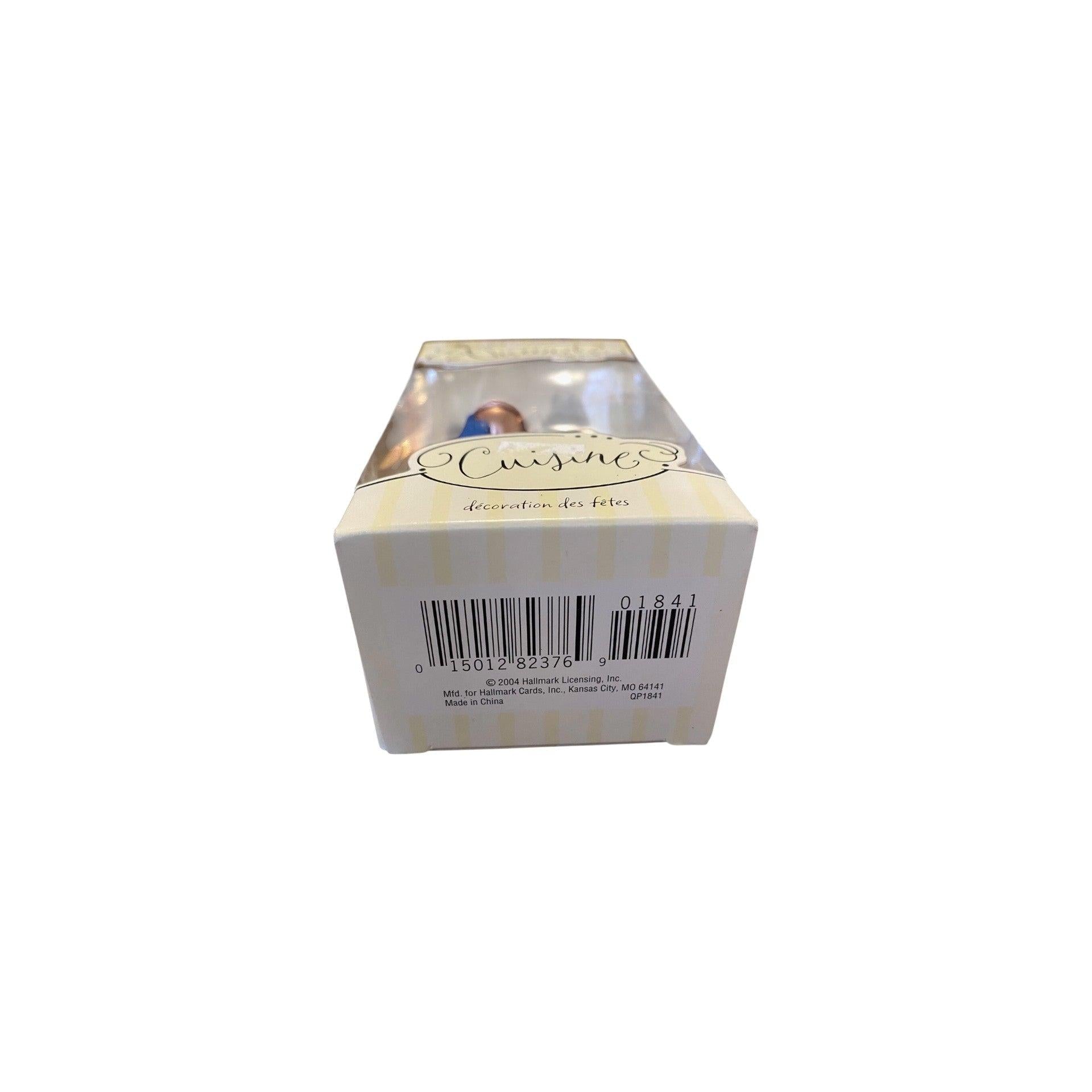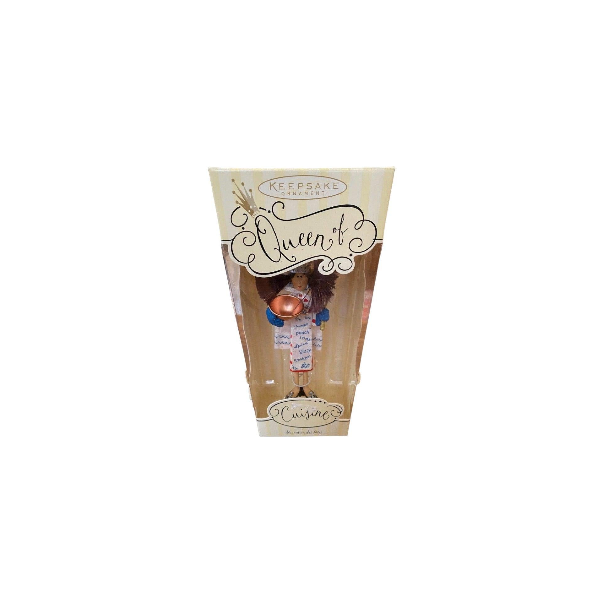 This 2004 Hallmark ornament — Queen of Cuisine, Straight Hair Brunette — is part of the Décorations des Fêtes series, a line known for elegant and internationally styled holiday figures. The design typically features a beautifully dressed female figure with straight brunette hair, styled as a “queen of cuisine,” perhaps holding or surrounded by festive culinary accessories like a tray of treats, a holiday dish, or decorative cookware, blending holiday tradition with a refined, cultural flair. The ornament usually includes its original Hallmark box and is intended for decorative display only. It does not include lights, motion, or sound, so it requires no batteries, cords, or light strings.