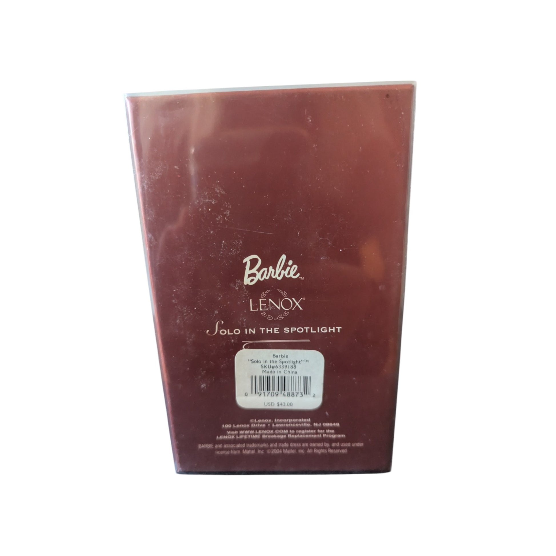 Celebrate Barbie style with the 2004 Solo in the Spotlight collectible ornament from the Lenox Barbie Collector’s Series. This elegant holiday piece features Barbie dressed in a stunning white and pink ensemble posed under a spotlight, capturing her grace and glamour in miniature porcelain form — a perfect addition to holiday décor, Barbie collections, or nostalgic Christmas displays. The ornament includes the Barbie figure with hanging loop and original gift box, making it a lovely gift for Barbie fans. No batteries, cords, or power accessories are needed — simply hang and enjoy its classic charm.