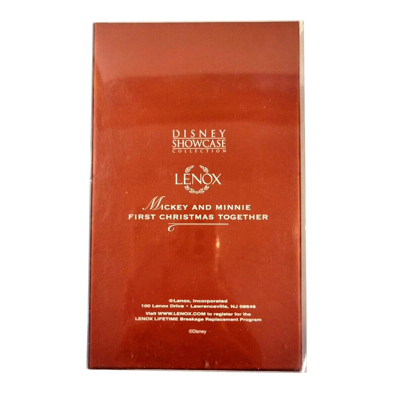 Celebrate love, magic, and the holidays with this elegant 2005 First Christmas Together (Mickey & Minnie) ornament from Lenox. This porcelain keepsake features Mickey and Minnie Mouse sharing a festive embrace, surrounded by holly accents and delicate gold trim. The classic Disney duo shines in soft tones, with subtle 24K gold detailing that elevates the ornament’s charm.