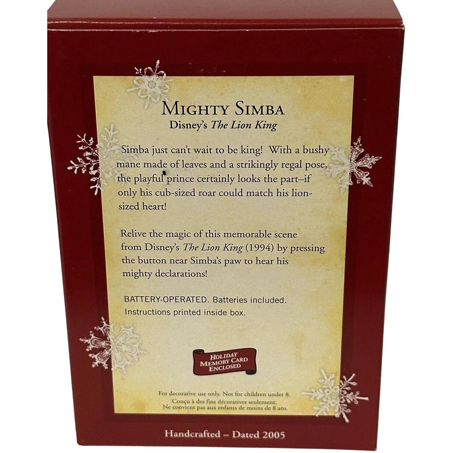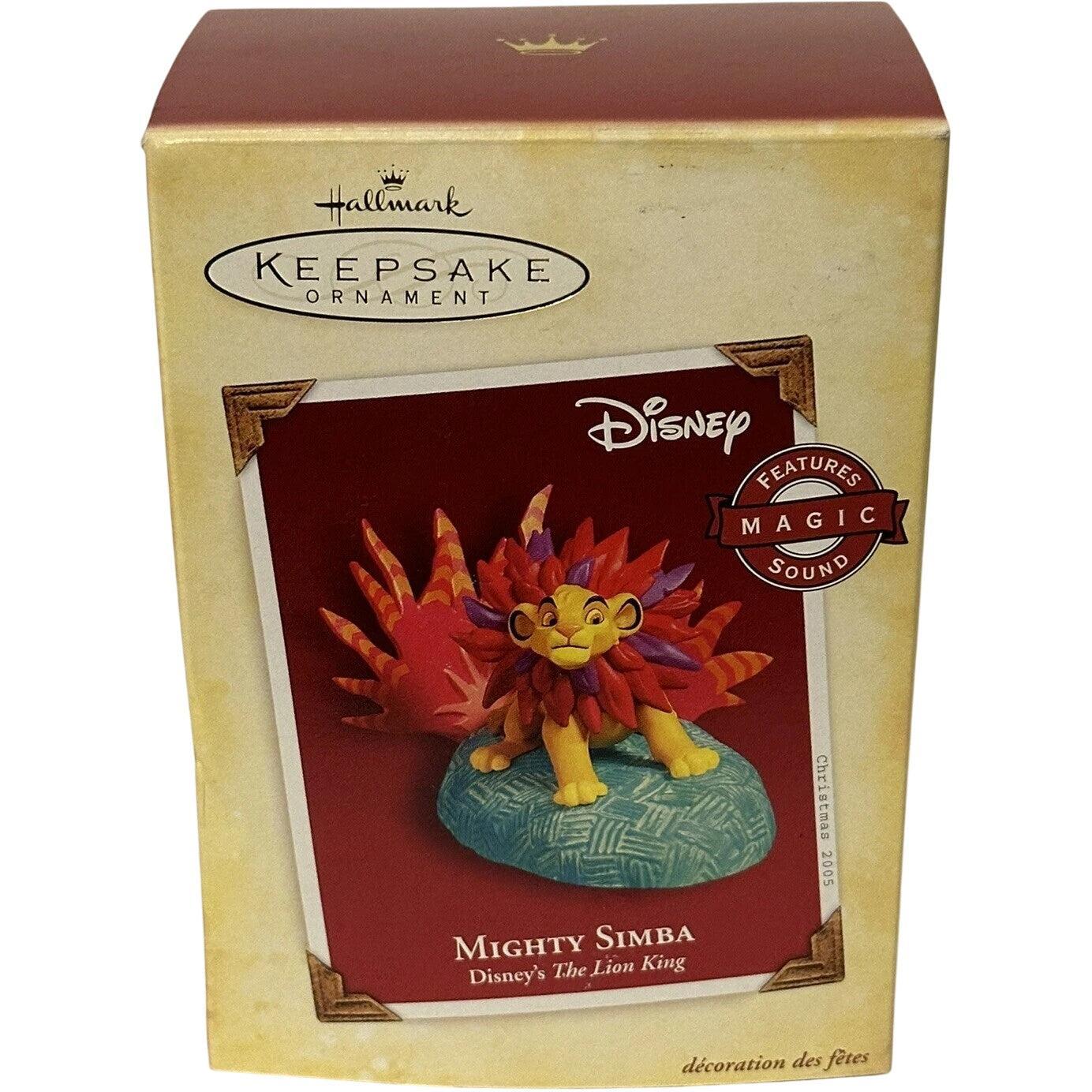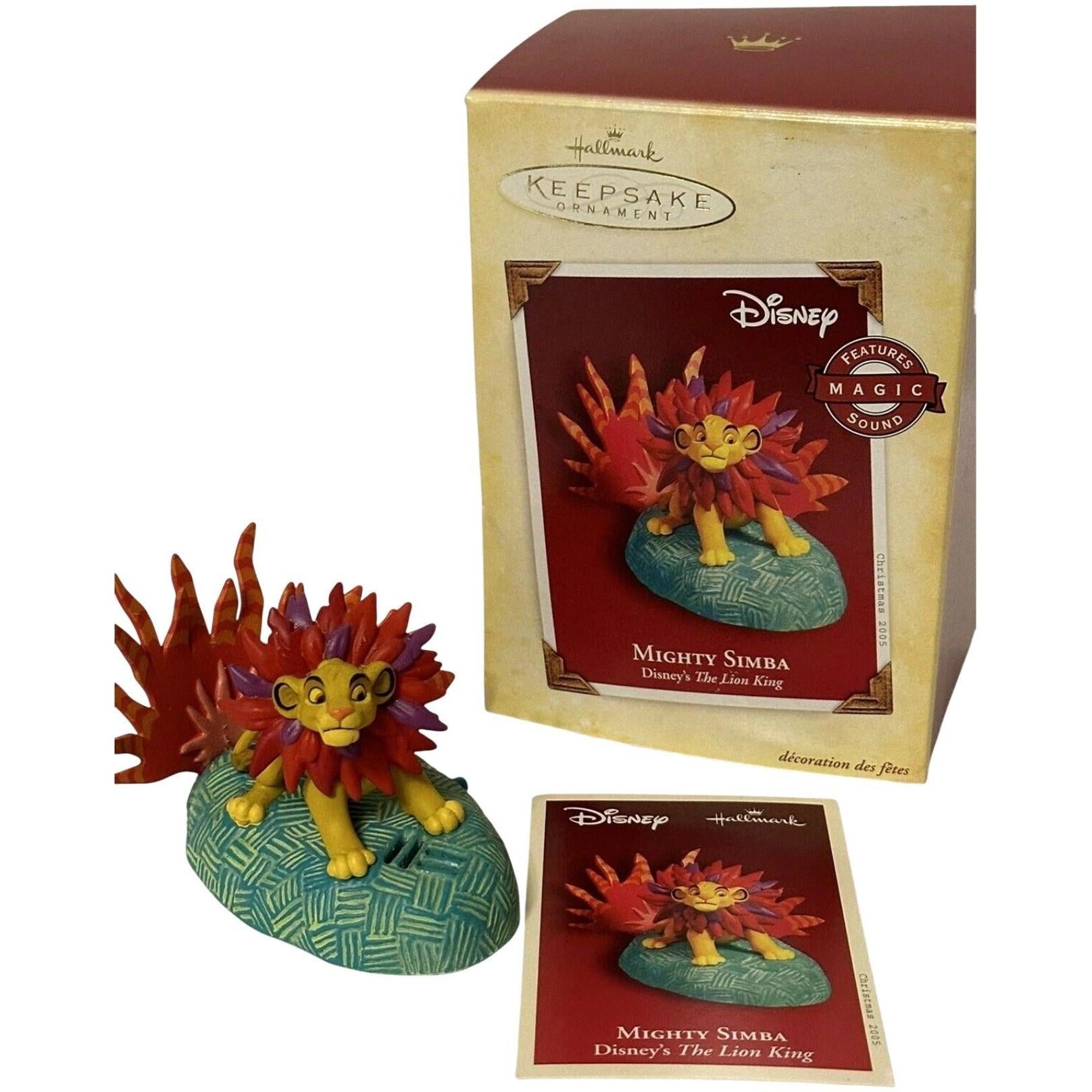 Unleash a roar of holiday nostalgia with this 2005 Hallmark Keepsake ornament featuring Mighty Simba from The Lion King. Adorned with a wild, leaf-like mane and seated proudly atop a patterned base, Simba springs to life with a button-activated recording—he proclaims “I just can’t wait to be king!” when pressed. This keepsake arrives mint-in-box with its original packaging and requires no extra accessories—just 3 LR44 batteries (included in most cases). A heartfelt tribute to Disney’s iconic cub, ready to infuse festive cheer with a dash of royal charisma.
