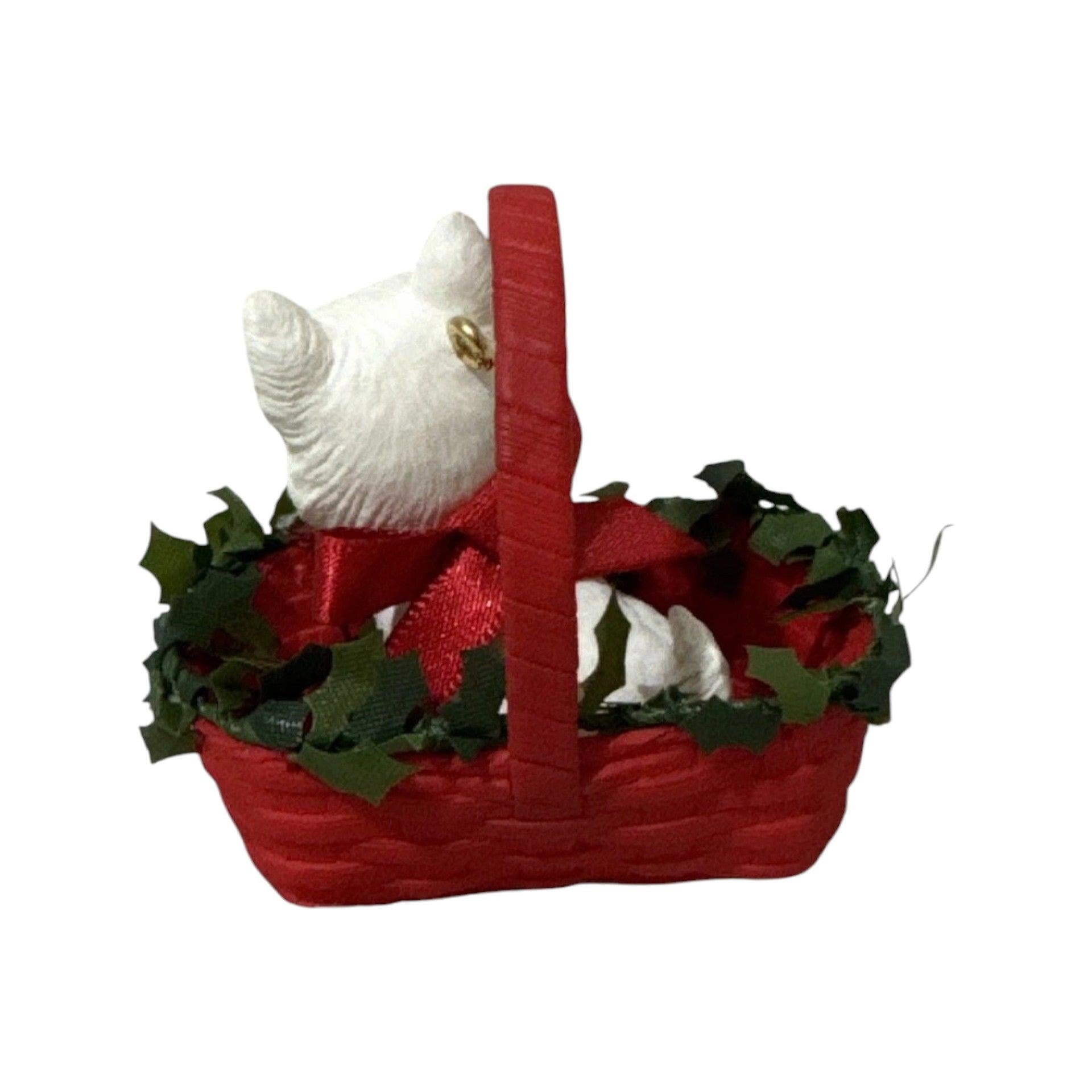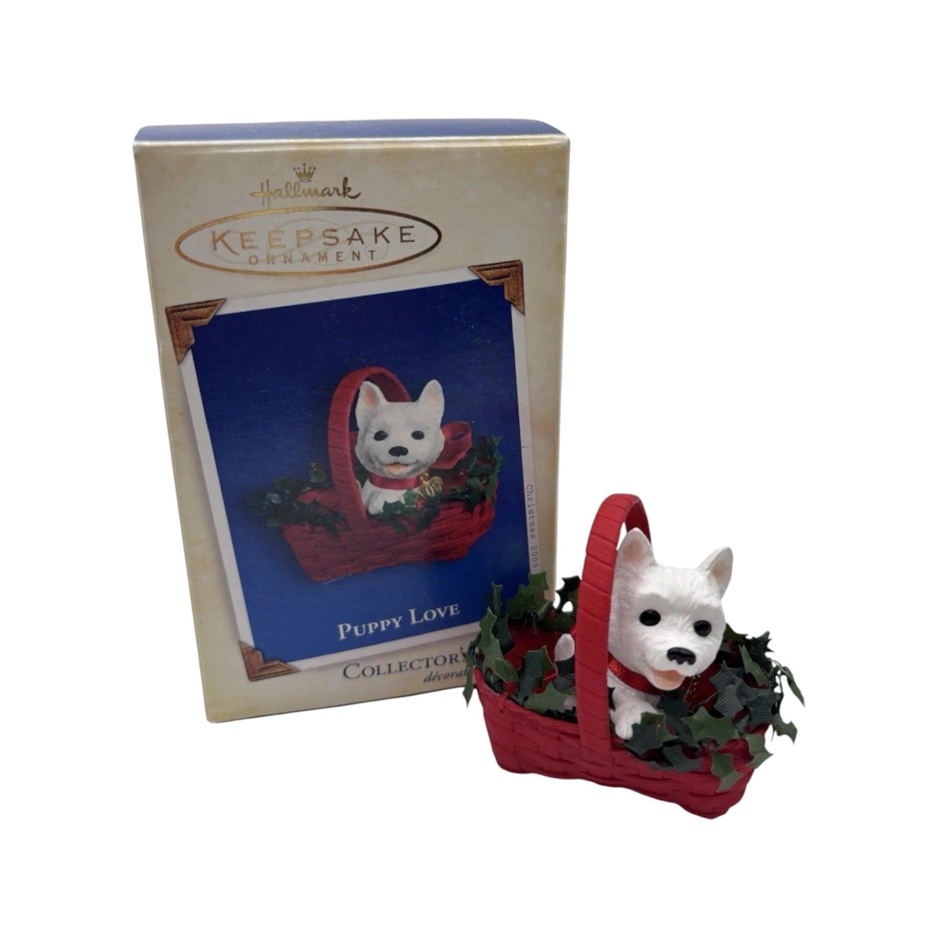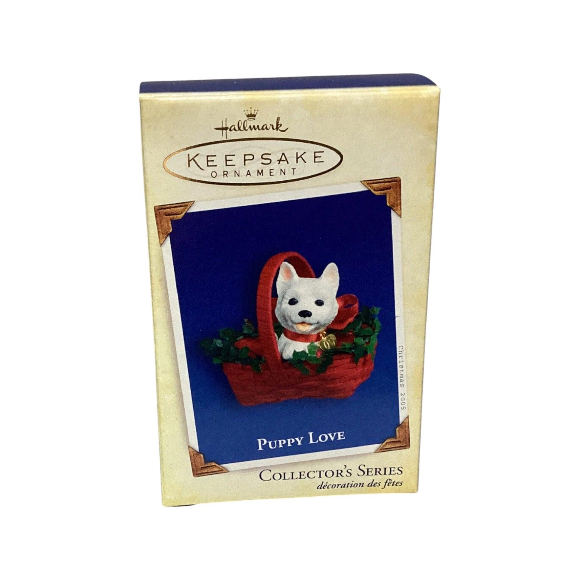 Add a Basket-full of holiday cheer with the 2005 Westie (Puppy Love) ornament — the 15th release in Hallmark’s Puppy Love series. The design features a perky West Highland Terrier (“Westie”) puppy nestled in a red basket accented with holly, complete with a heart-shaped brass tag stamped “05”. The ornament is handcrafted, and typically sold in its original box (box condition may vary).