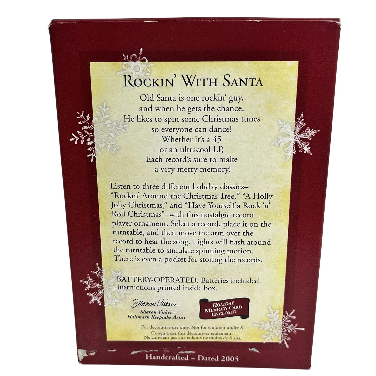 Turn up the holiday cheer with the 2005 Rockin’ With Santa Hallmark Keepsake ornament. This fun and festive Magic ornament features Santa spinning tunes on a vintage-style red record player surrounded by vinyl records and musical notes. When connected to a miniature light strand, it lights up and plays a lively version of “Jingle Bell Rock,” bringing retro holiday energy to your tree. With its playful design, nostalgic theme, and moving parts, this ornament is a must-have for music lovers and Hallmark collectors who enjoy a rock ’n’ roll twist on Christmas traditions.