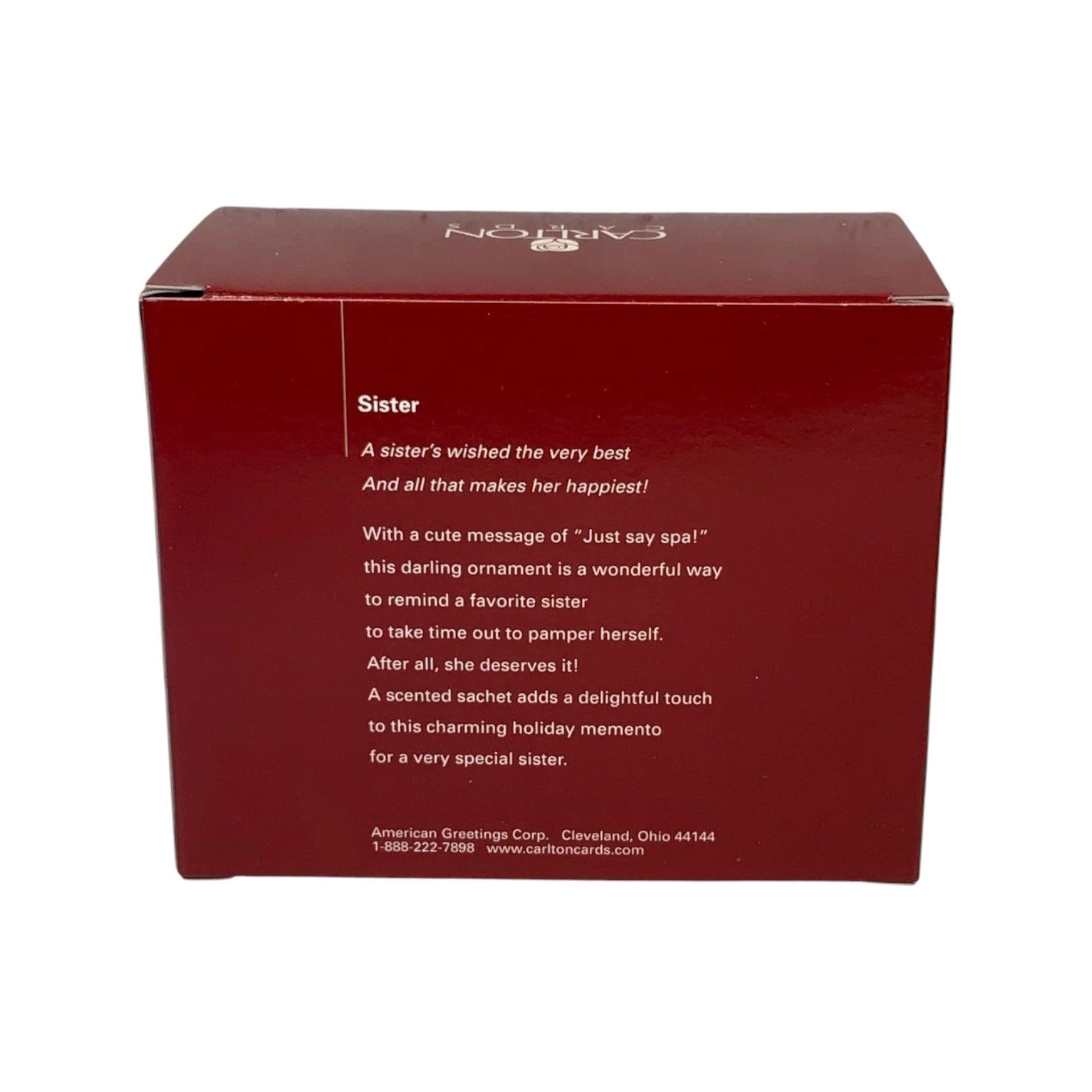 This Carlton Cards Heirloom-style Sister - Tea family ornament centers on a tea-time theme (commonly shown as a teapot/tea set scene with sister-focused wording and small character details), intended as a sentimental “family/sisters” Christmas keepsake. Listings for closely matching sister-tea ornaments often include the original window box and hang tag when kept by collectors. Most versions are decorative and hang from a standard metal loop; some sister-teapot variants were made with lighting, so the safest way to confirm power needs is checking the box/back for “lighted” wording or a battery compartment.