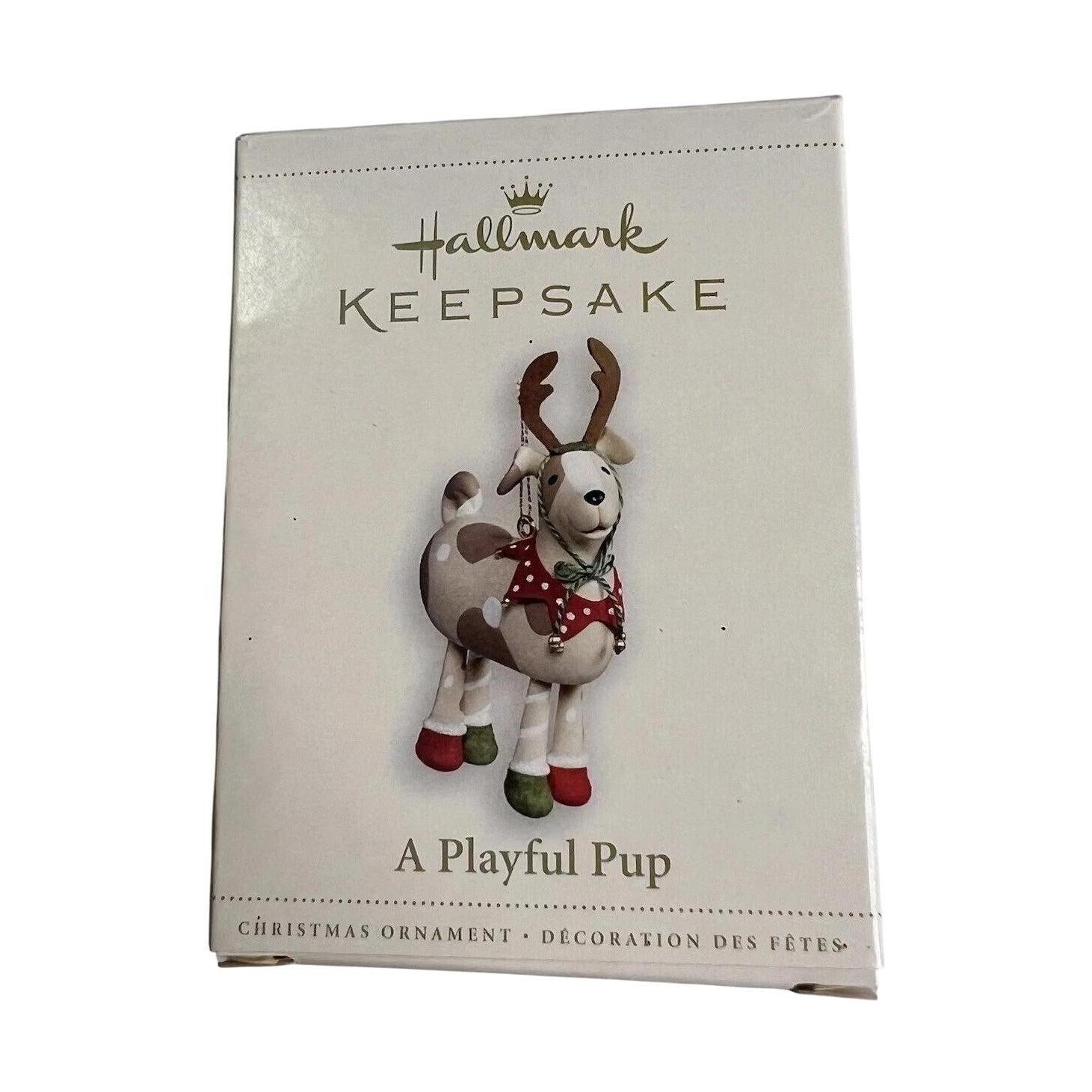 Bring a touch of holiday whimsy to your tree with this 2006 edition ornament from Hallmark featuring a cheerful puppy adorned for the season—complete with antlers, a sleigh-bell collar, and dangling legs that sway with every shimmer of the lights. Designed by Edythe Kegrize and sculpted by Katrina Bricker, the piece uses vibrant paint, textured detailing and a playful pose to capture the joy of a puppy’s first Christmas adventure. Compact yet full of character, this keepsake is ideal for dog lovers, collectors of animal ornaments, or anyone who enjoys a spirited whimsical accent.