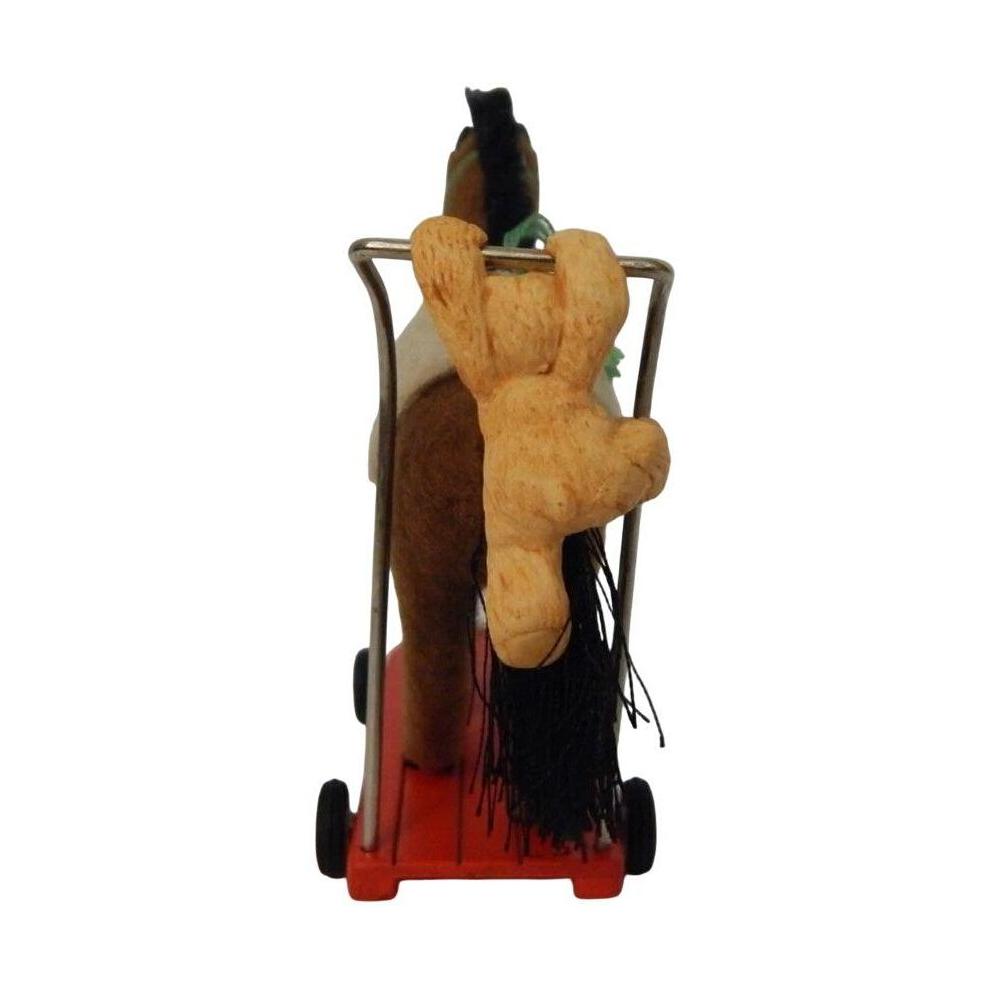 Saddle up festive nostalgia with the 2006 A Pony for Christmas (A Pony for Christmas) ornament—the ninth release in Hallmark’s magical pony series. This charming design features a brown plush pony mounted on a red wagon-style base with rolling wheels, and a lovable teddy bear companion hanging on for the ride. The pony wears festive trim and a green harness, and the piece is dated “2006”. It arrives in its original keepsake box and needs no batteries, cords, or power—ready to display out of the box.