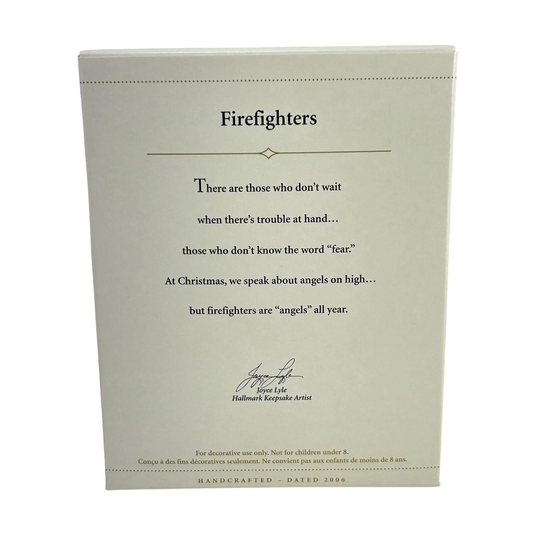Materials: A mixed‐media construction typical of Hallmark Keepsakes of this era: molded resin/plastic elements painted in fire-service colours, with a small gold-tone bell. (Specific materials not exhaustively listed.)