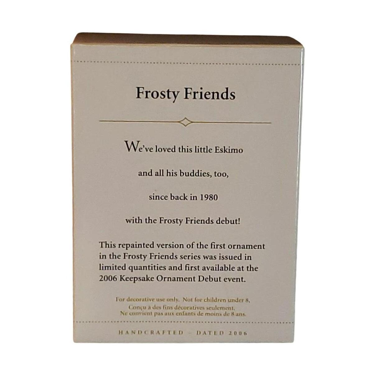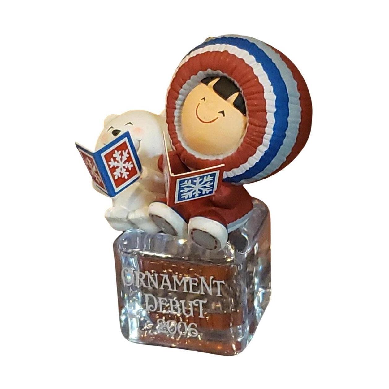 Celebrate a nostalgic twist with the 2006 Cool Yule Colorway, a limited‑quantity repaint of the classic 1980 Frosty Friends debut. This miniature keepsake features an Eskimo child and bear perched atop an ice cube marked “Ornament Debut 2006,” with refreshed book colors in blue and red instead of the original green. Released exclusively at the 2006 Hallmark Debut event and as a Gold Crown store exclusive, it comes mint‑in‑box with original packaging and collector tag. No batteries, cords, or lights needed—simply hang and let its wintry charm glow.