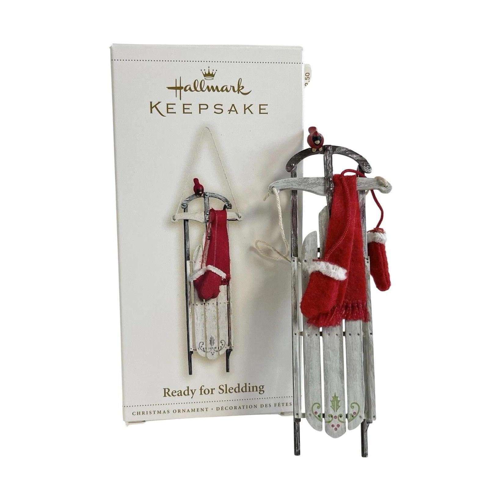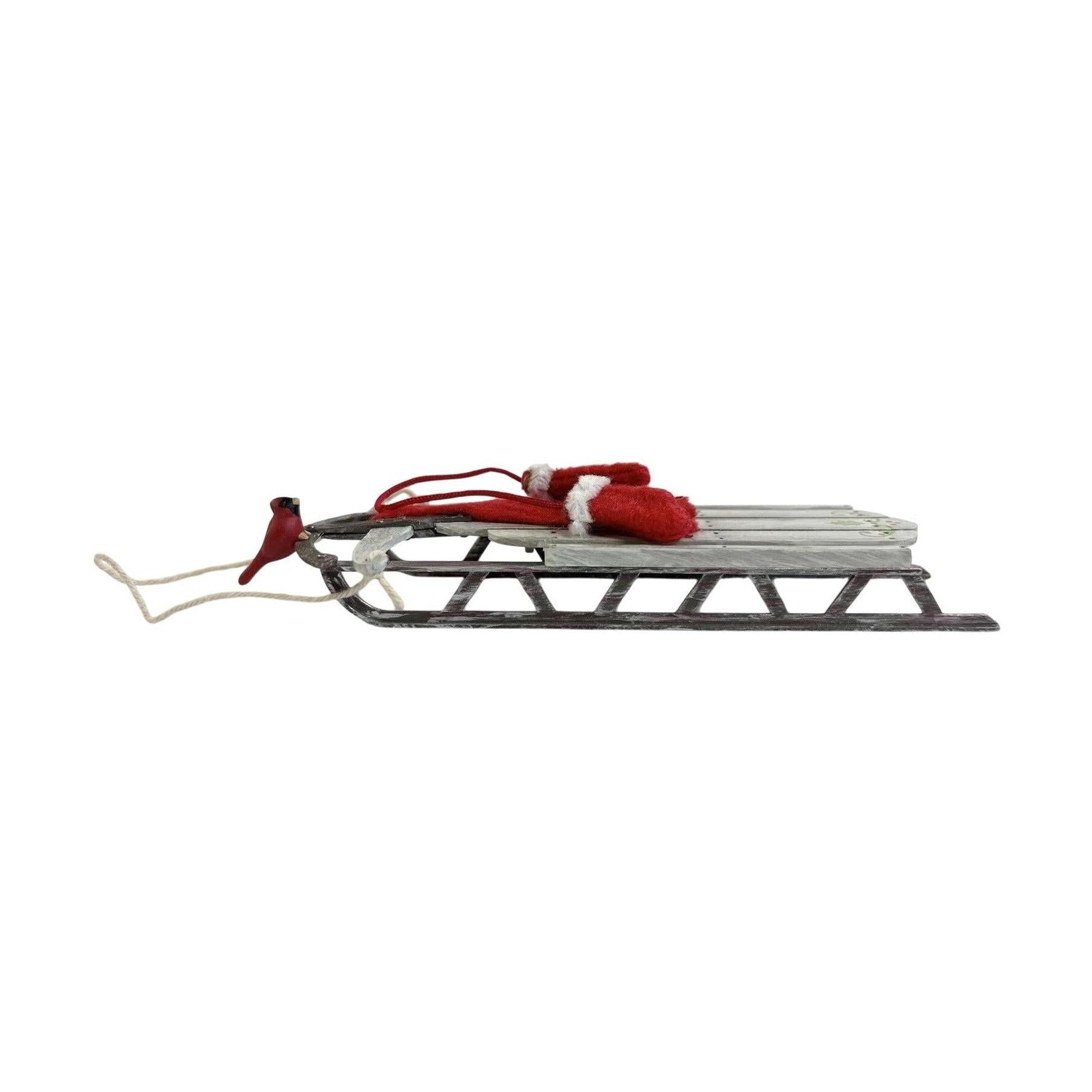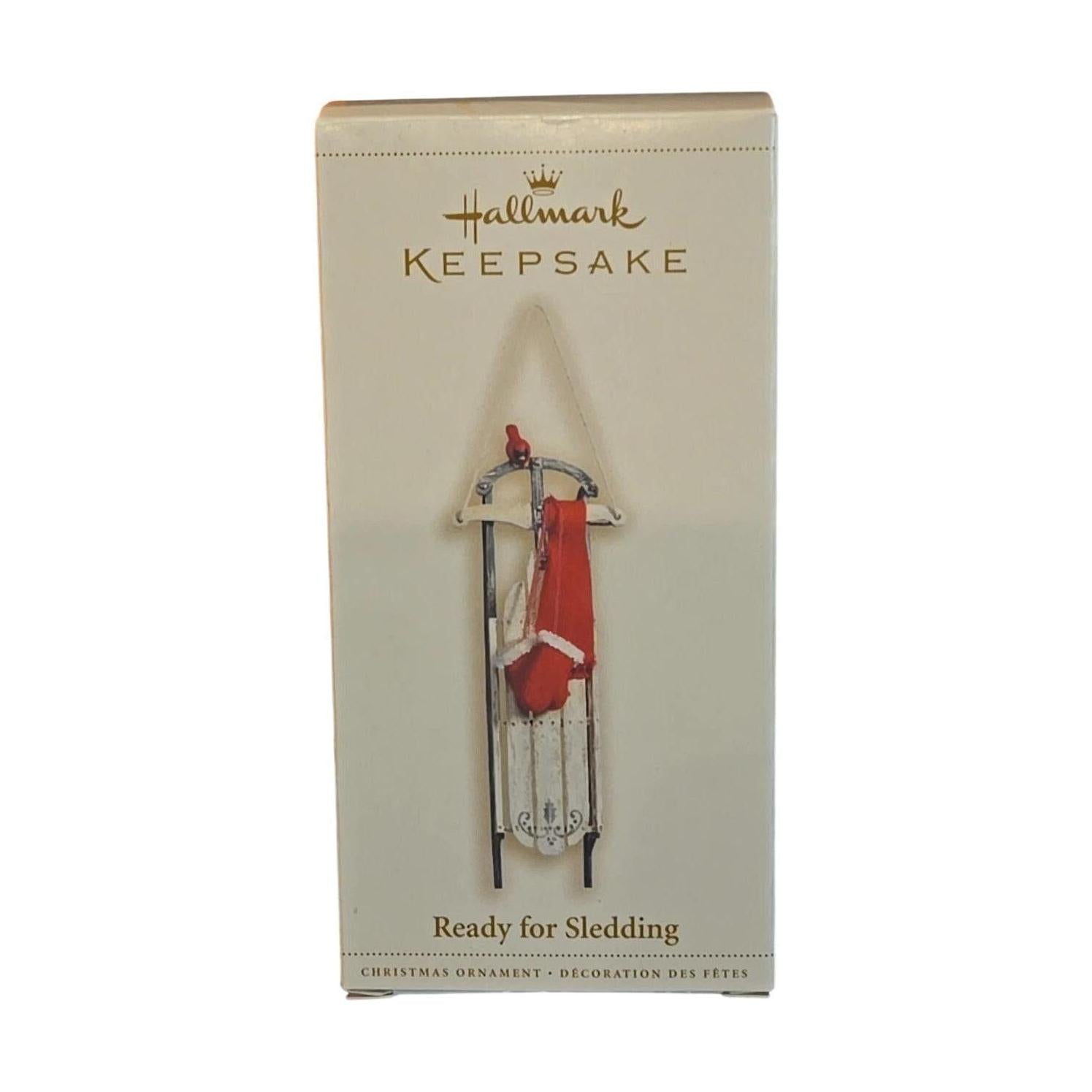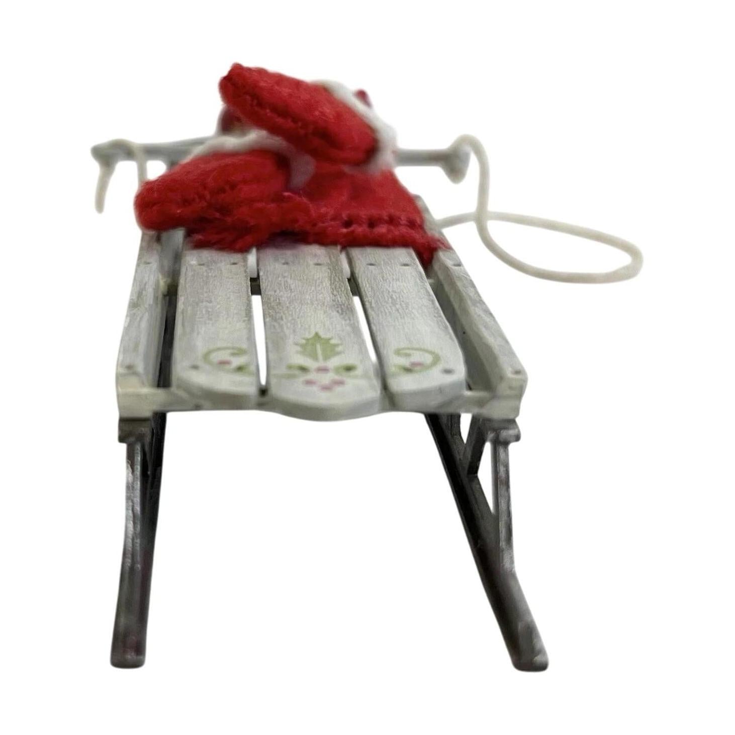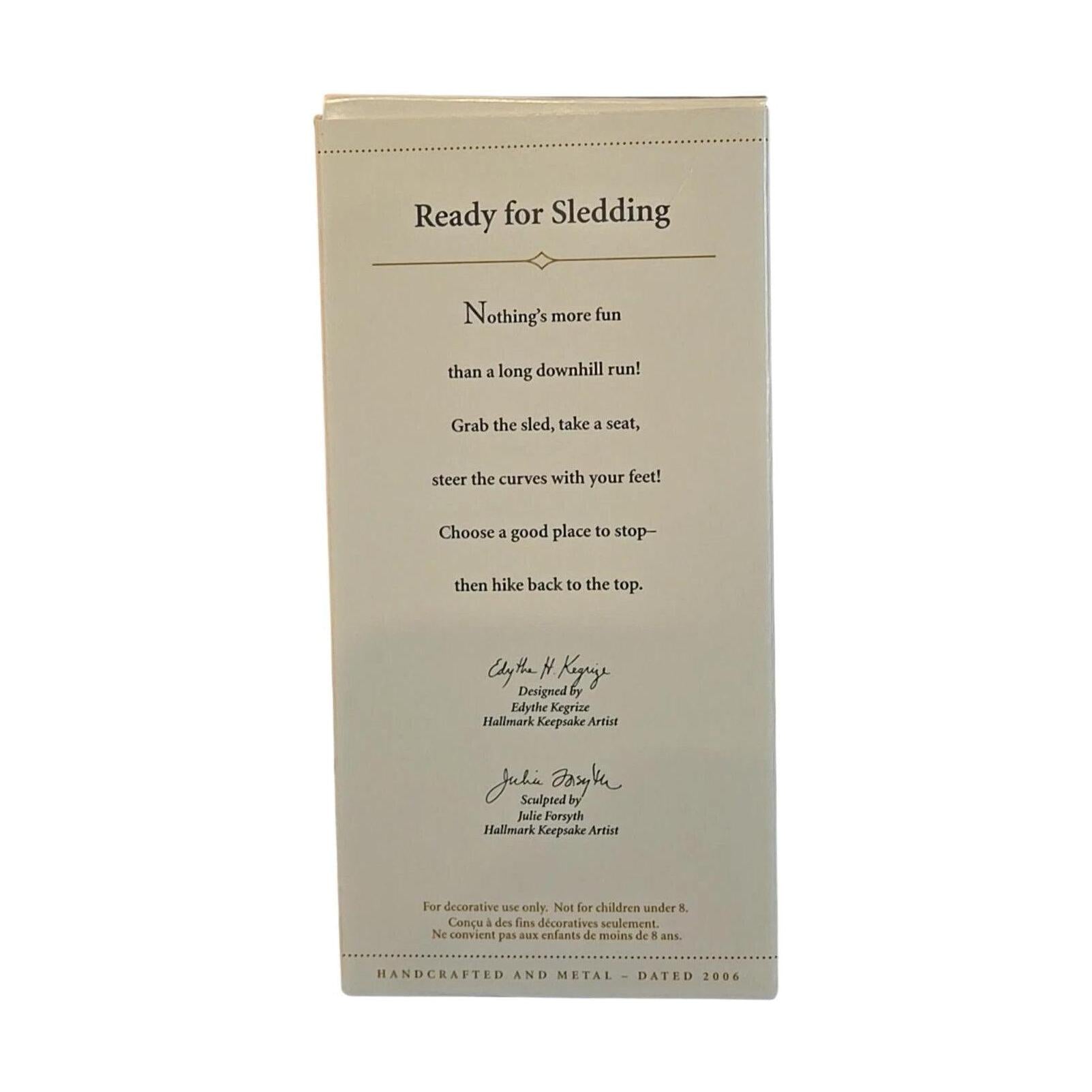 Capture the crisp thrill of winter with the 2006 edition of this ornament from the “Winter Garden” series by Hallmark. The scene features a bright red sled poised for action, teamed with cozy accessories and a cheerful cardinal ready to ride — evoking the joy of a fresh snow day and the fun of sledding downhill. Designed by Edythe Kegrize and sculpted by Julie Forsythe, this piece is crafted in metal and painted with festive accents to bring an active winter moment to your tree. At approximately 5.1″ tall, it makes a bold—but still tree-friendly—statement: perfect for collectors of seasonal scenery, wildlife accents, or cold-weather themes.