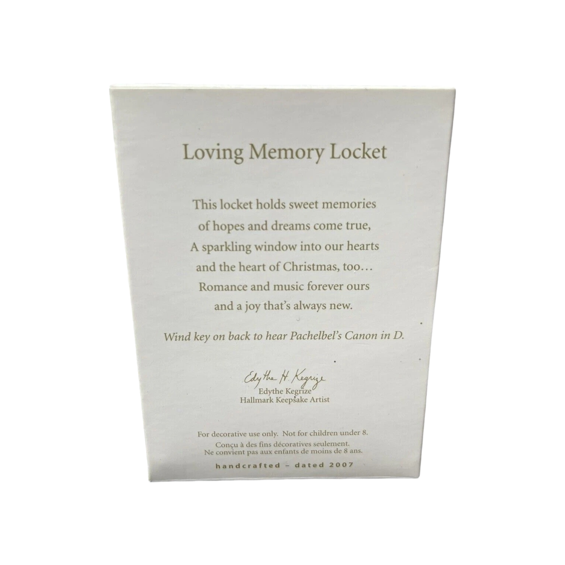 The 2007 Loving Memory Locket ornament offers a beautiful, sentimental way to honor loved ones and memories — its main feature is a tiny locket on the ornament’s front that opens to hold a cherished photo, making it meaningful for anniversaries, remembrance, or family traditions. The ornament is crafted with a decorative snowflake/heart-theme design, and comes in its original Hallmark Keepsake packaging when new — ready to hang on a tree or display as a keepsake. Additionally, this is not just a photo-holder: it is a “magic” ornament that includes a wind-up music box mechanism. When wound, it plays Canon in D, adding an emotional, musical touch to the keepsake.