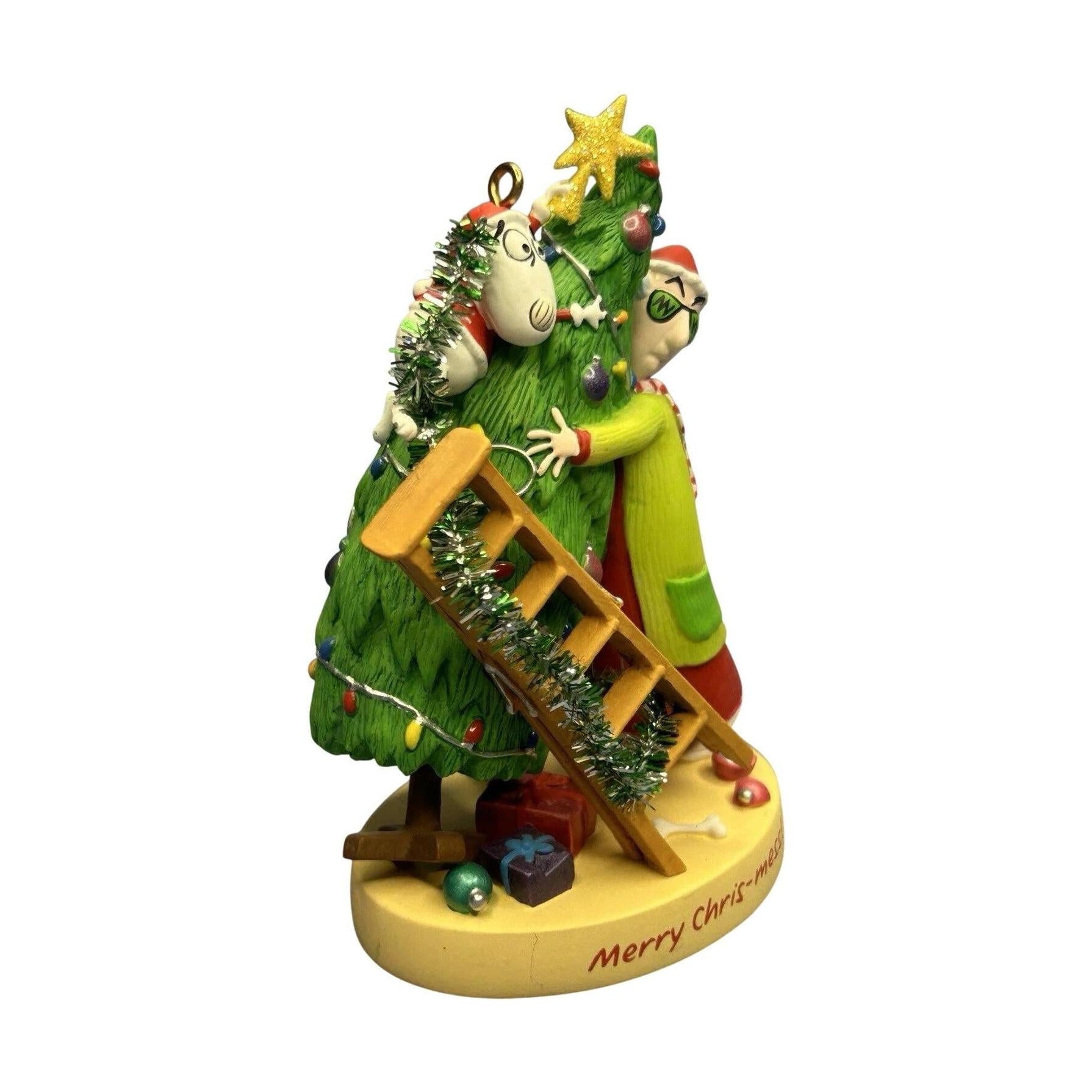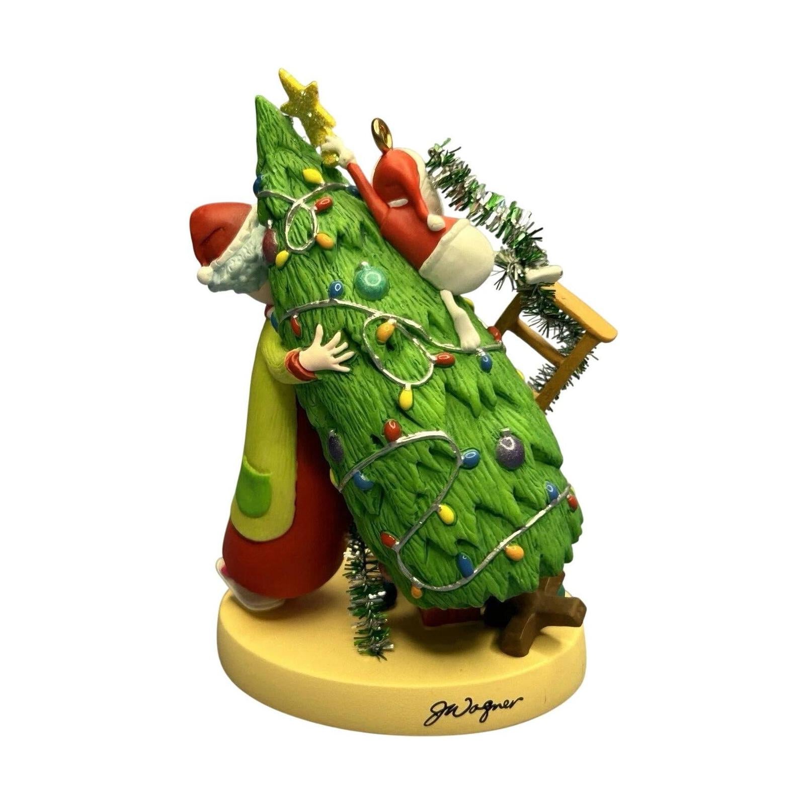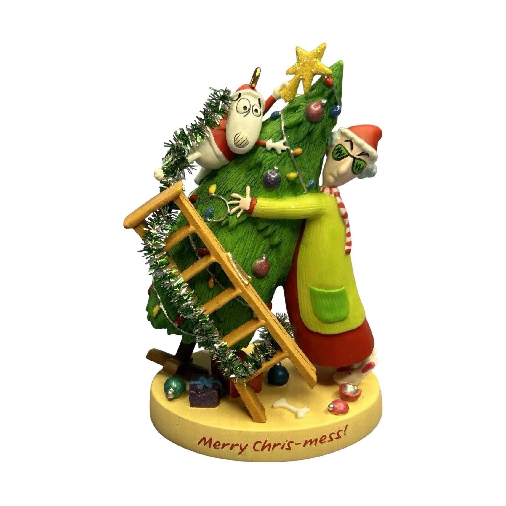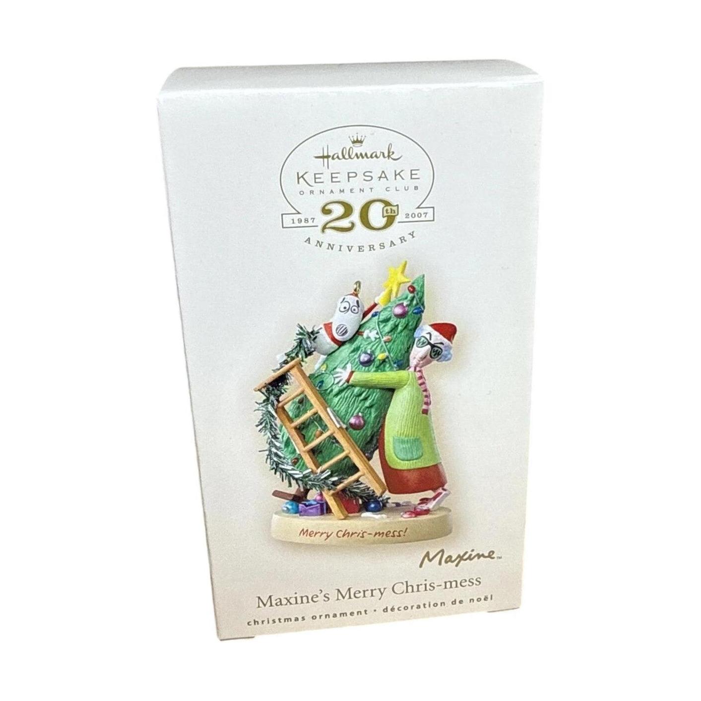 Celebrate the holidays with Maxine’s famously feisty flair in this 2007 Maxine’s Merry Chris-mess ornament. Picture the cranky, yet endearing Maxine trying to tame a chaotic Christmas tree—complete with tangled lights and a ladder—while her beloved dog Floyd surveys the festive mess. Designed by John Wagner for the Hallmark Keepsake Ornament Club’s 20th Anniversary events, this event-exclusive piece arrives mint in box and requires no power to delight.