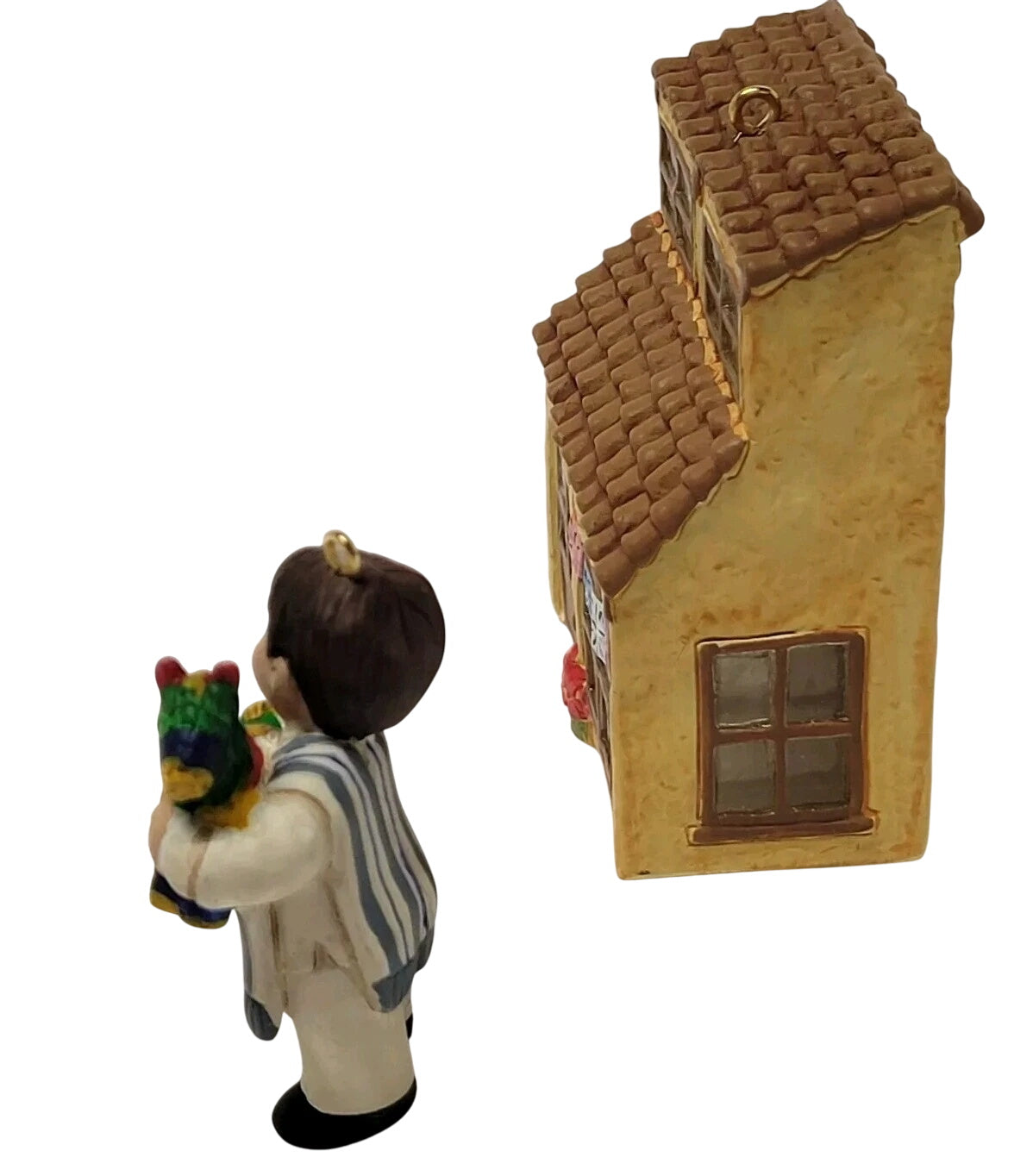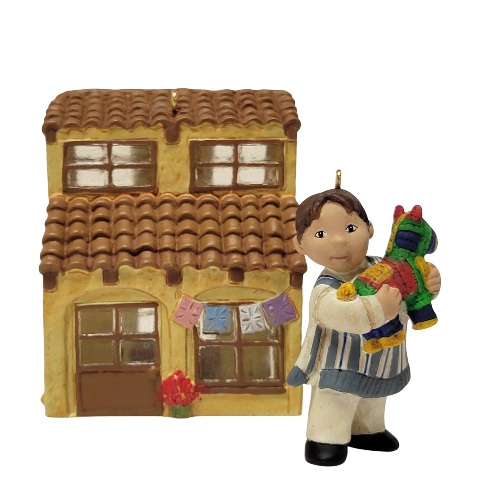 Celebrate Mexican heritage with the 2007 Mexico (Joy to the World) Hallmark Keepsake Ornament set. This two-piece collection includes a hand-painted mini house (approx. 3″ H) and a child in traditional attire (approx. 2″ H), beautifully crafted by artists Katrina Bricker and Kristina Kline. From the Joy to the World series, this delightful duo arrives in its original packaging with protective inserts—ready to hang on your tree without the need for batteries or cords.