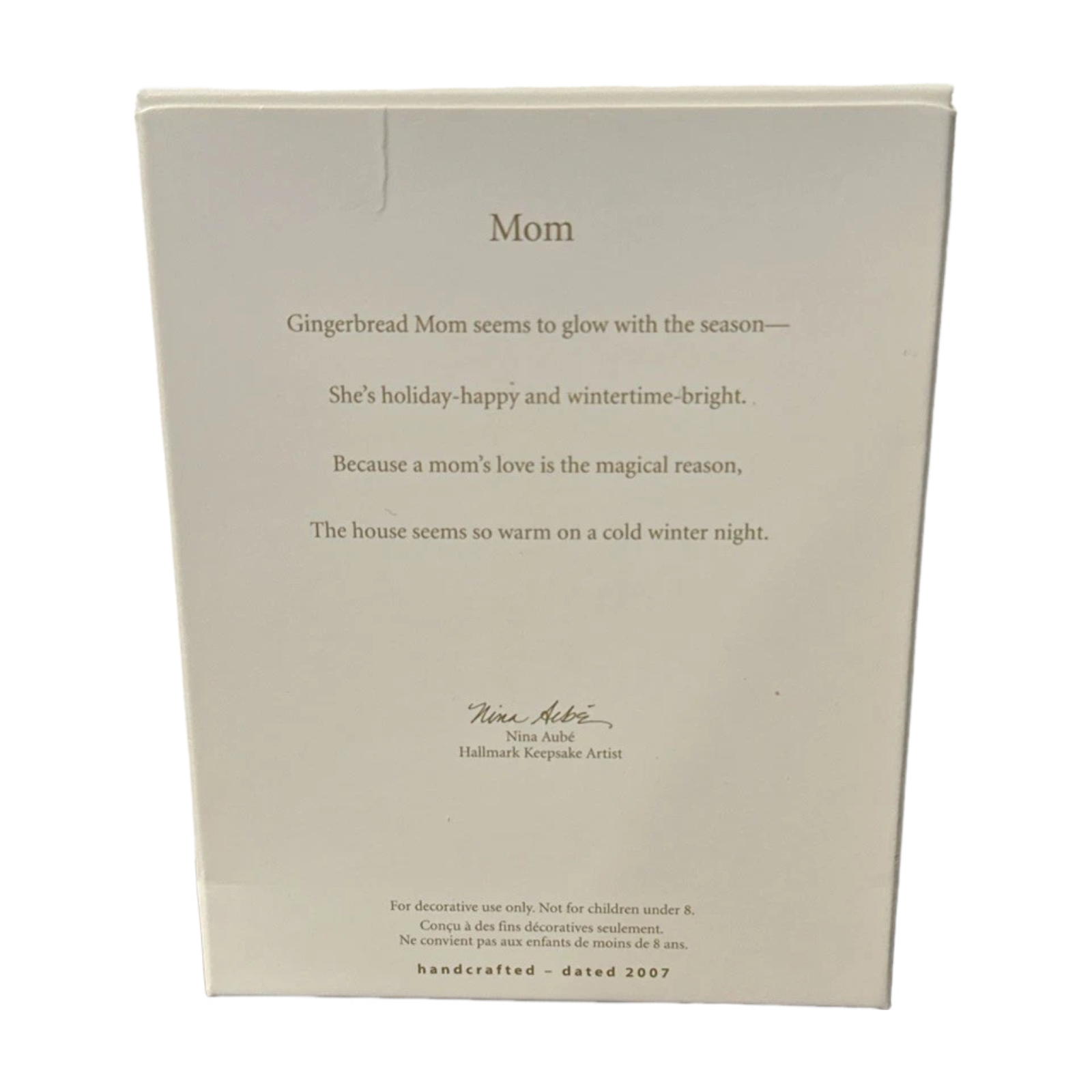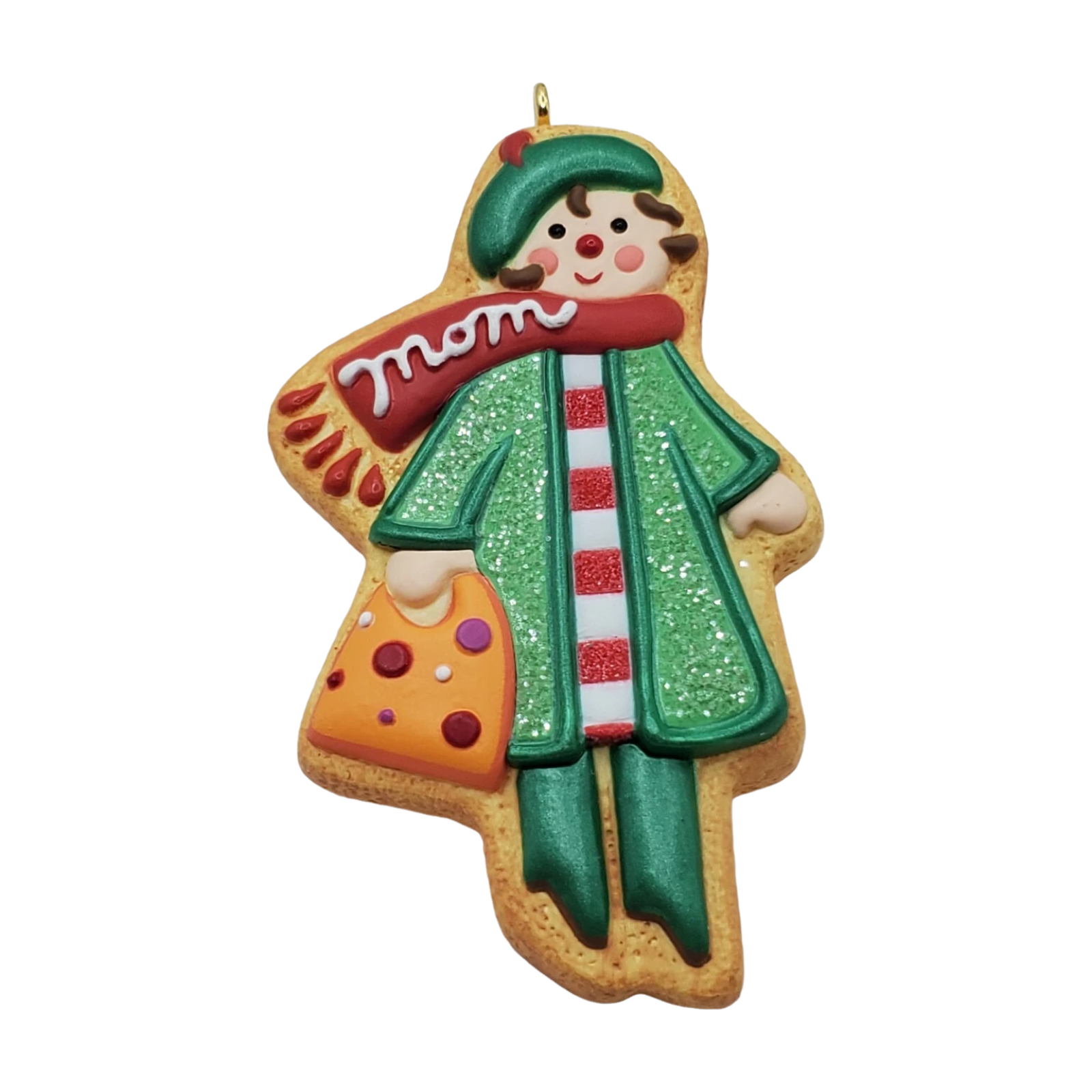Celebrate the special woman in your life with the 2007 edition of the Hallmark Keepsake Ornament “Mom” (SKU QXG6169). Designed by Nina Aubé, this charming ornament portrays a cheerful “Mom” cookie-figure dressed in holiday baking attire, complete with a red scarf emblazoned with the word “Mom”. Standing at approximately 3.18″ H × 1.91″ W × 0.40″ D, it features painted mixed media detailing that brings warmth and personality to the tree. Ideal as a gift for mothers or a meaningful addition to a family themed collection, it combines heart-warming design with collectible appeal.
