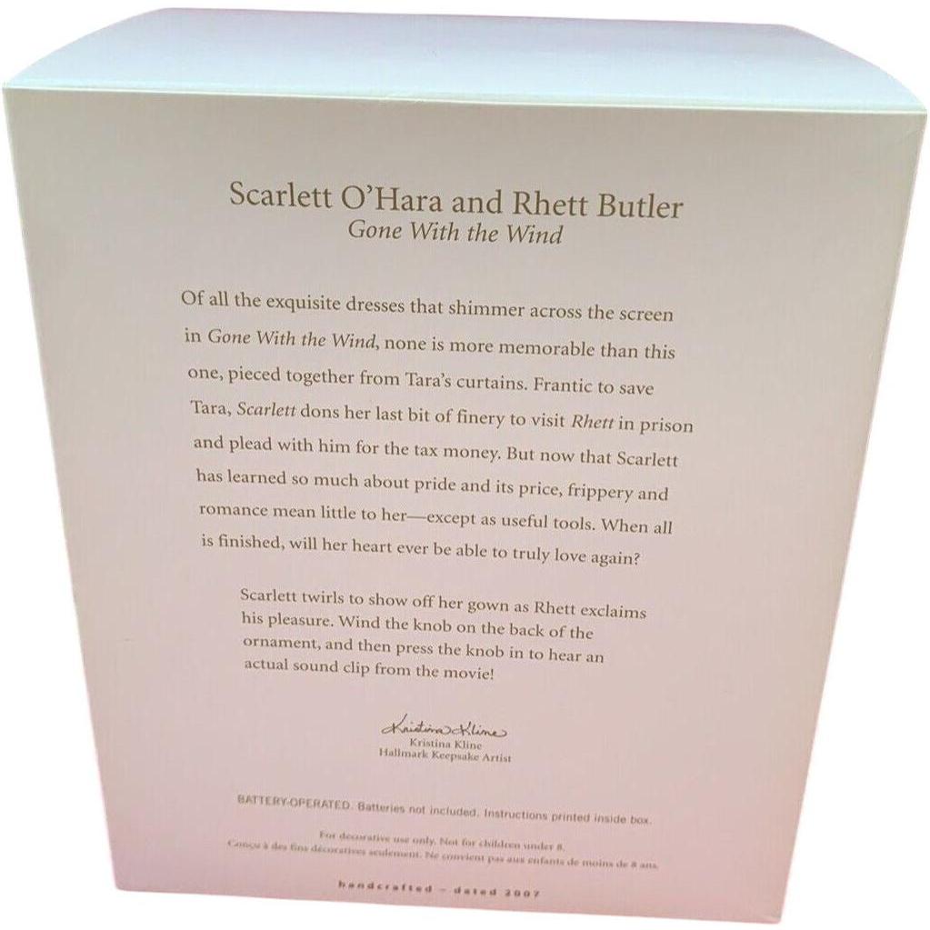 This exquisite Magic Ornament captures the fiery romance of Gone With the Wind. Scarlett twirls in her memorable curtain dress—fashioned from Tara’s drapes—while Rhett admires her. Wind the knob on the back and press it to activate both a charming wind-up motion and a genuine sound clip from the film