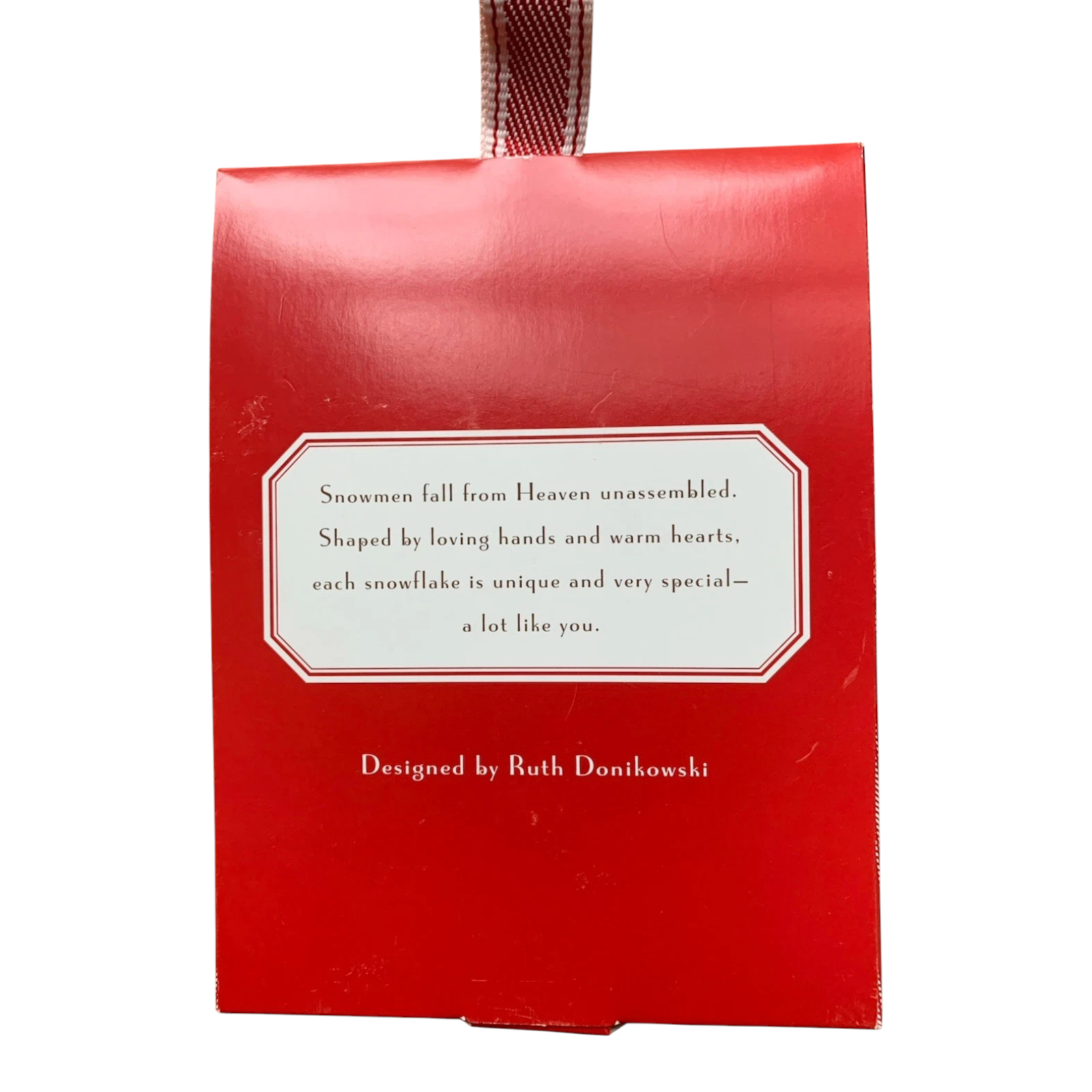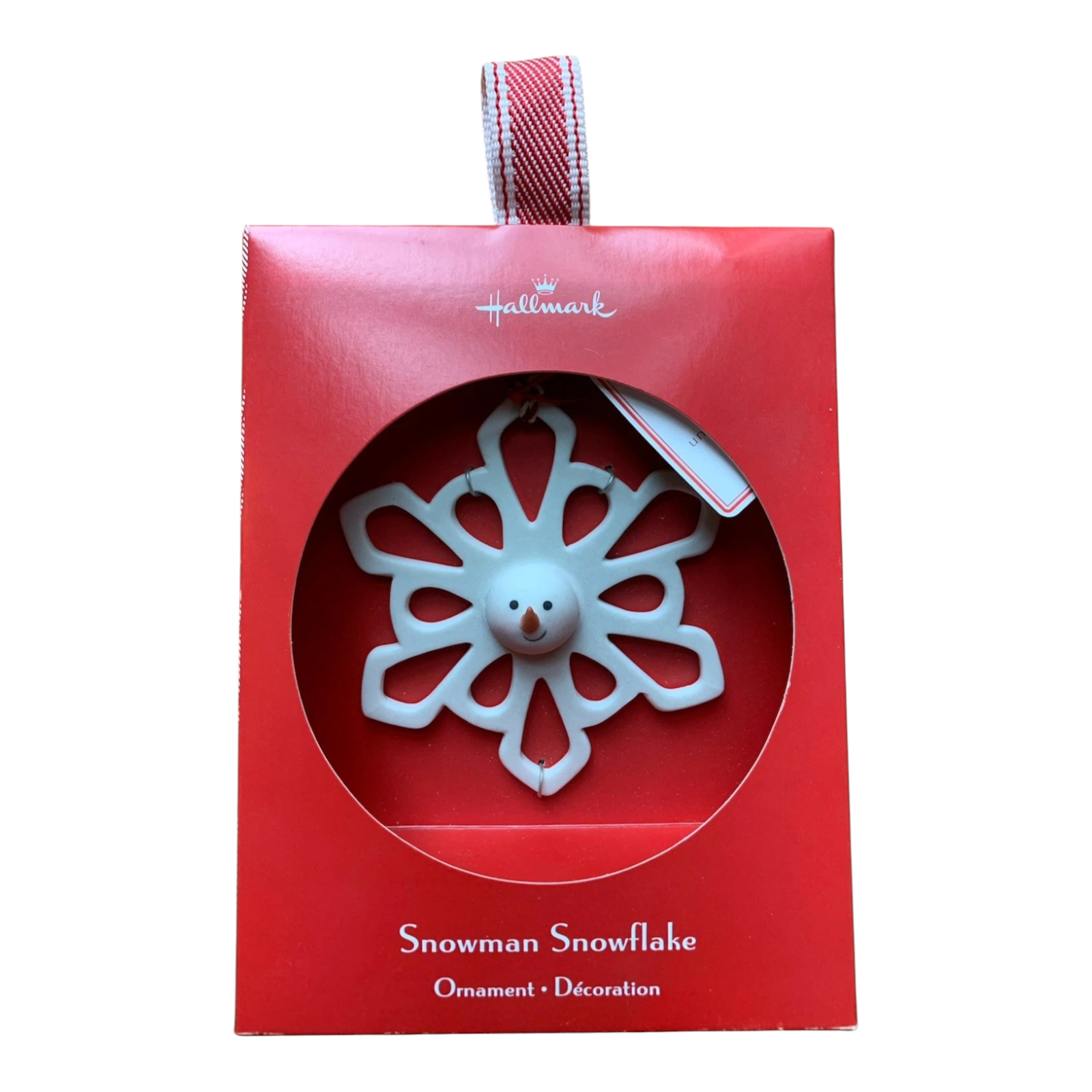 Add a whimsical winter touch to your holiday collection with this charming 2007 Hallmark ornament, Snowman Snowflake. Crafted from porcelain, it features a cheerful snowman face nestled inside a beautifully detailed snowflake with a bright carrot nose and joyful expression. The back includes a heartfelt sentiment: “Snowmen fall from heaven unassembled. Shaped by loving hands and warm hearts, each snowflake is unique and very special – a lot like you.” The ornament comes in its original Hallmark box and is ready for display or gifting. No batteries, cords, or lights are required—simply hang and enjoy.