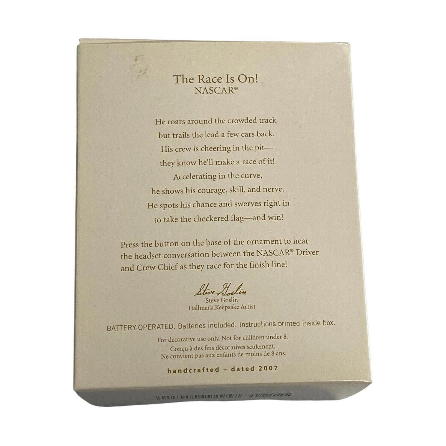 Feel the rush of the final lap with The Race Is On!, a 2007 NASCAR Magic Keepsake Ornament that captures the tension and excitement of the racetrack. This ornament features a realistic stock car speeding into view, complete with moving parts, as it delivers an authentic headset conversation between driver and crew chief when activated. Press a button and hear the radio chatter as they jockey for position—cheering from the pit, strategy calls, and the roar of engines.