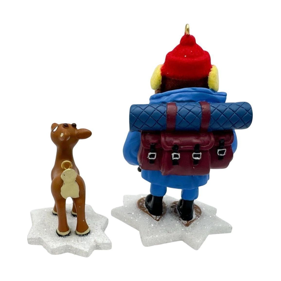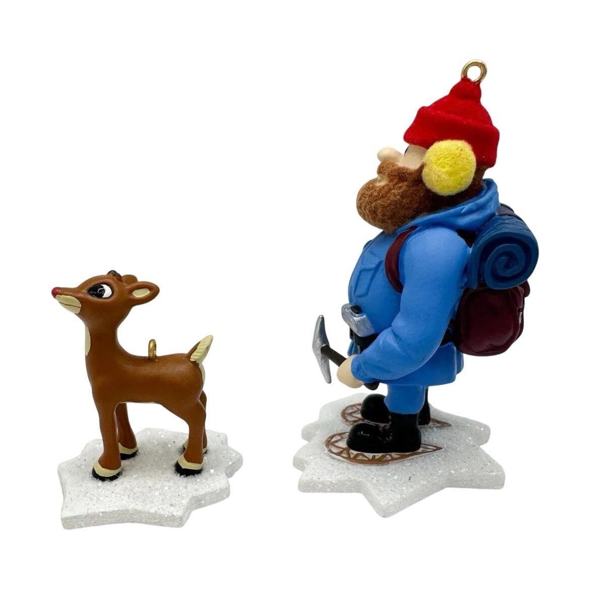 Journey back to the snowy peaks with 2007 Yukon Cornelius & Rudolph, a Hallmark Keepsake set featuring two beloved characters from Rudolph the Red-Nosed Reindeer. This keepsake set includes a figure of Yukon Cornelius and a companion Rudolph ornament. Yukon Cornelius stands taller and is detailed with his prospector gear, while Rudolph is smaller and instantly recognizable with his signature nose.