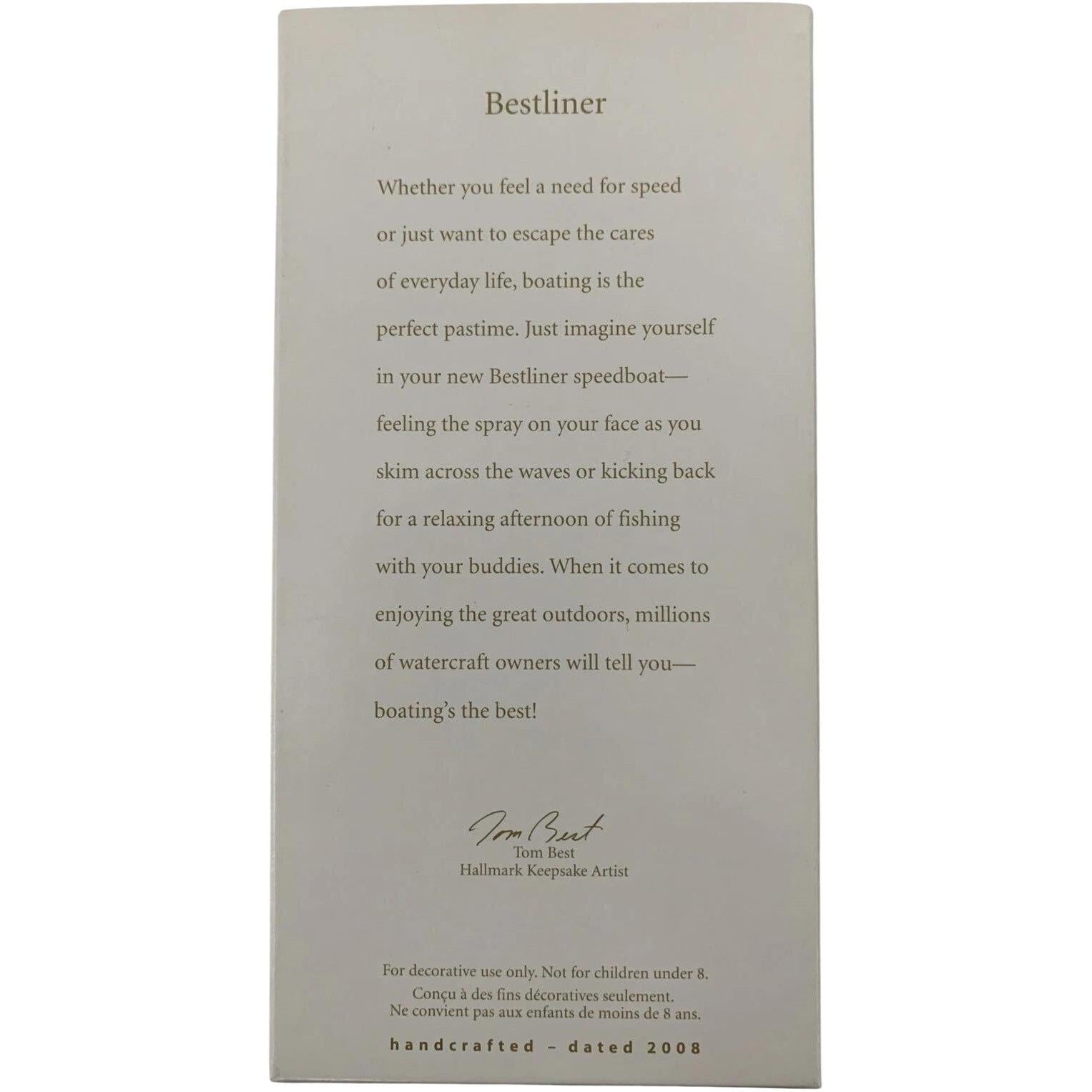 Hit the holiday waves with the 2008 Bestliner Speed Boat keepsake ornament, a sleek tribute to summer sport and boating passion. This ornament depicts a red and white speedboat in fine detail—smooth lines, cabin features, and ready-for-the-water flair.