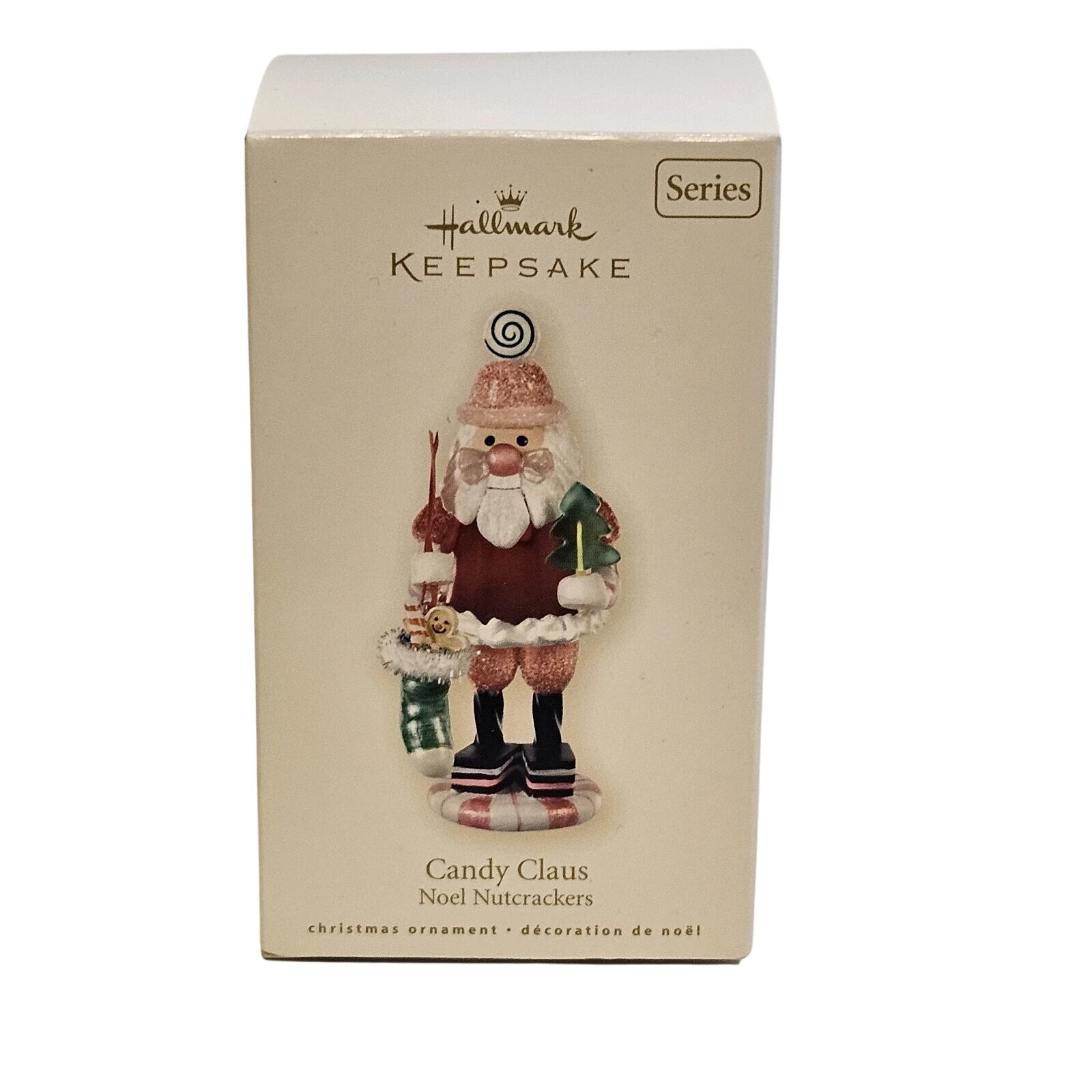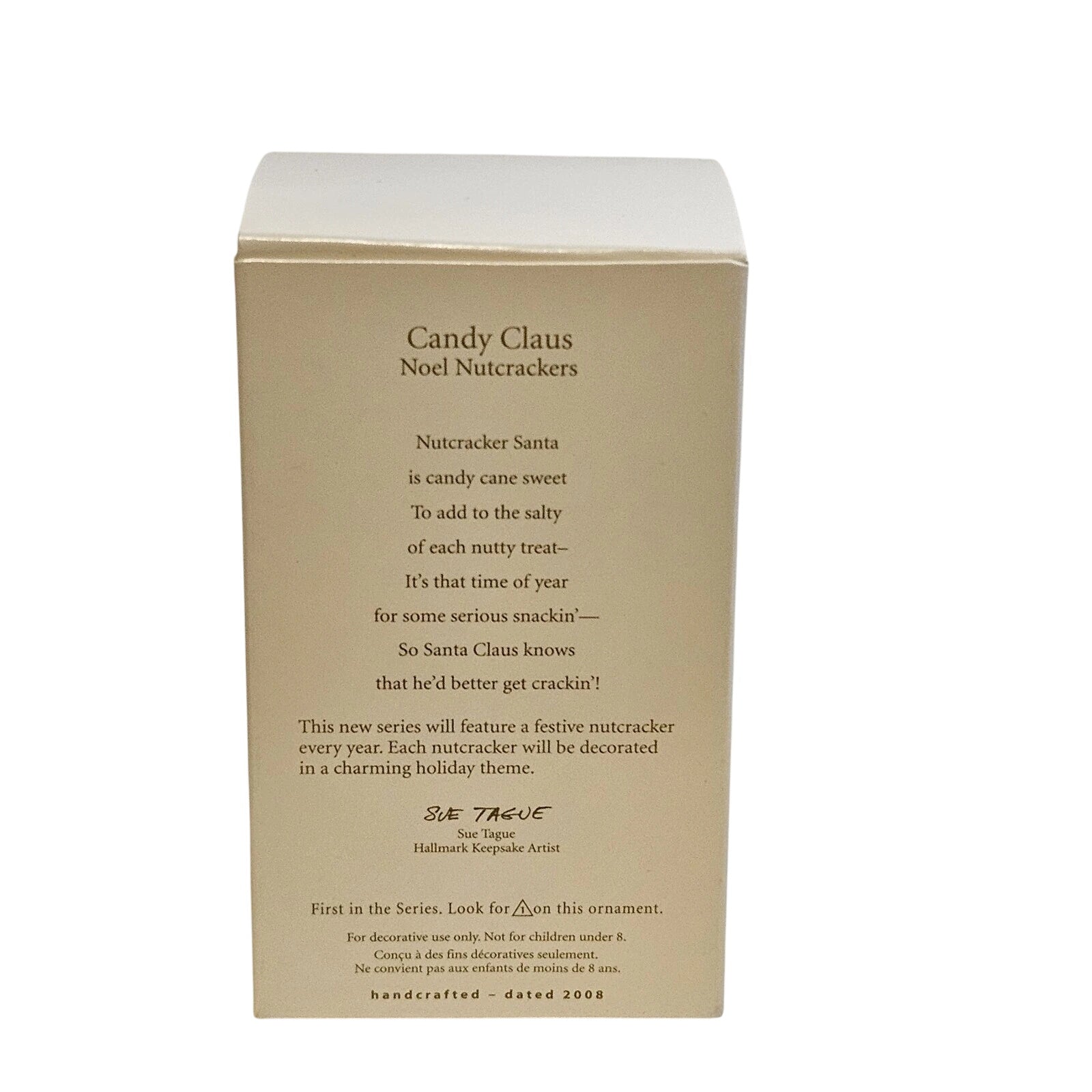 Add a sweet touch to your holiday nutcracker lineup with 2008 Candy Claus, the very first in Hallmark’s Noel Nutcrackers series. This whimsical nutcracker is dressed in candy-themed colors, candy cane stripes, and a festive Santa motif. Flip the lever on his back to make his jaw move in classic nutcracker fashion.