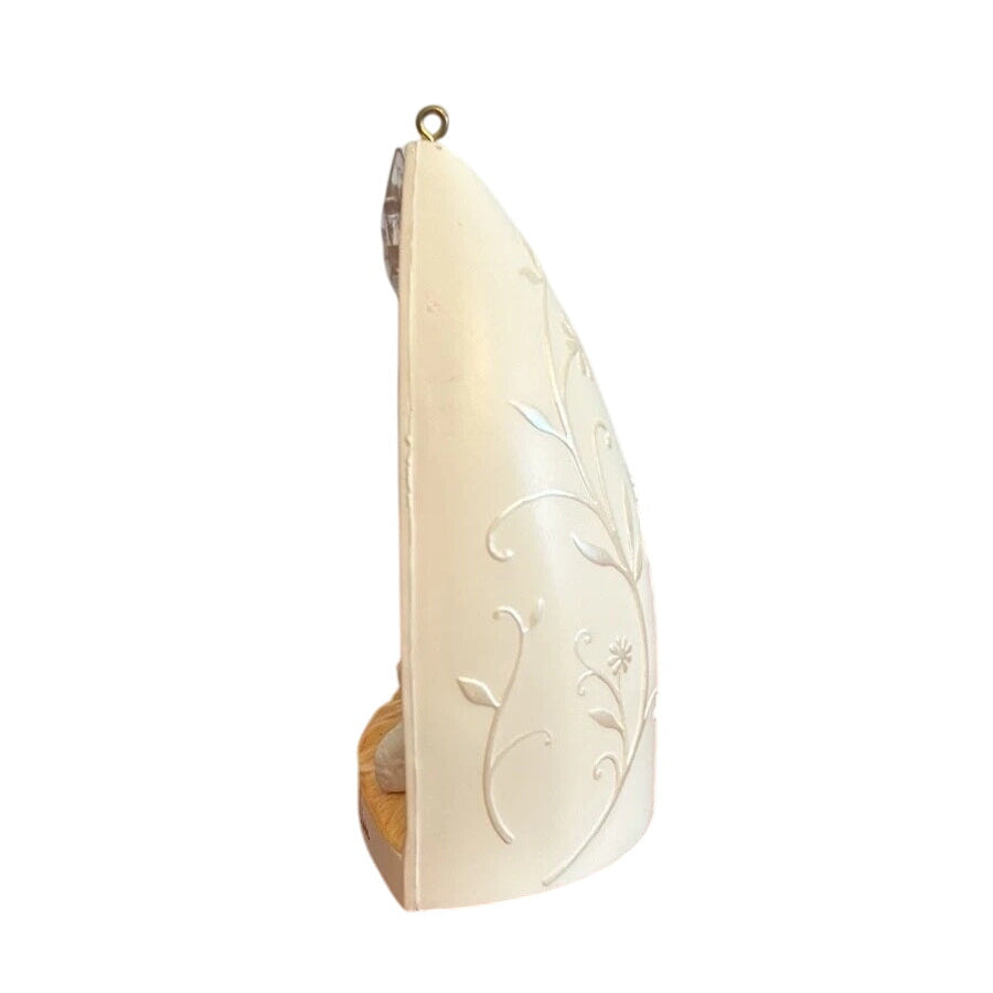 Celebrate the true meaning of Christmas with 2008 Let Us Adore Him, part of Hallmark's revered Light of Bethlehem collection. This beautifully crafted ornament depicts the newborn Jesus in a humble manger, watched over by faithful animals—a sheep and a donkey—under the shining star of Bethlehem. Adorned with the heartfelt sentiment “let us adore him,” this Gold Crown Exclusive ornament was designed by Edythe Kegrize and sculpted by Julie Forsyth.
