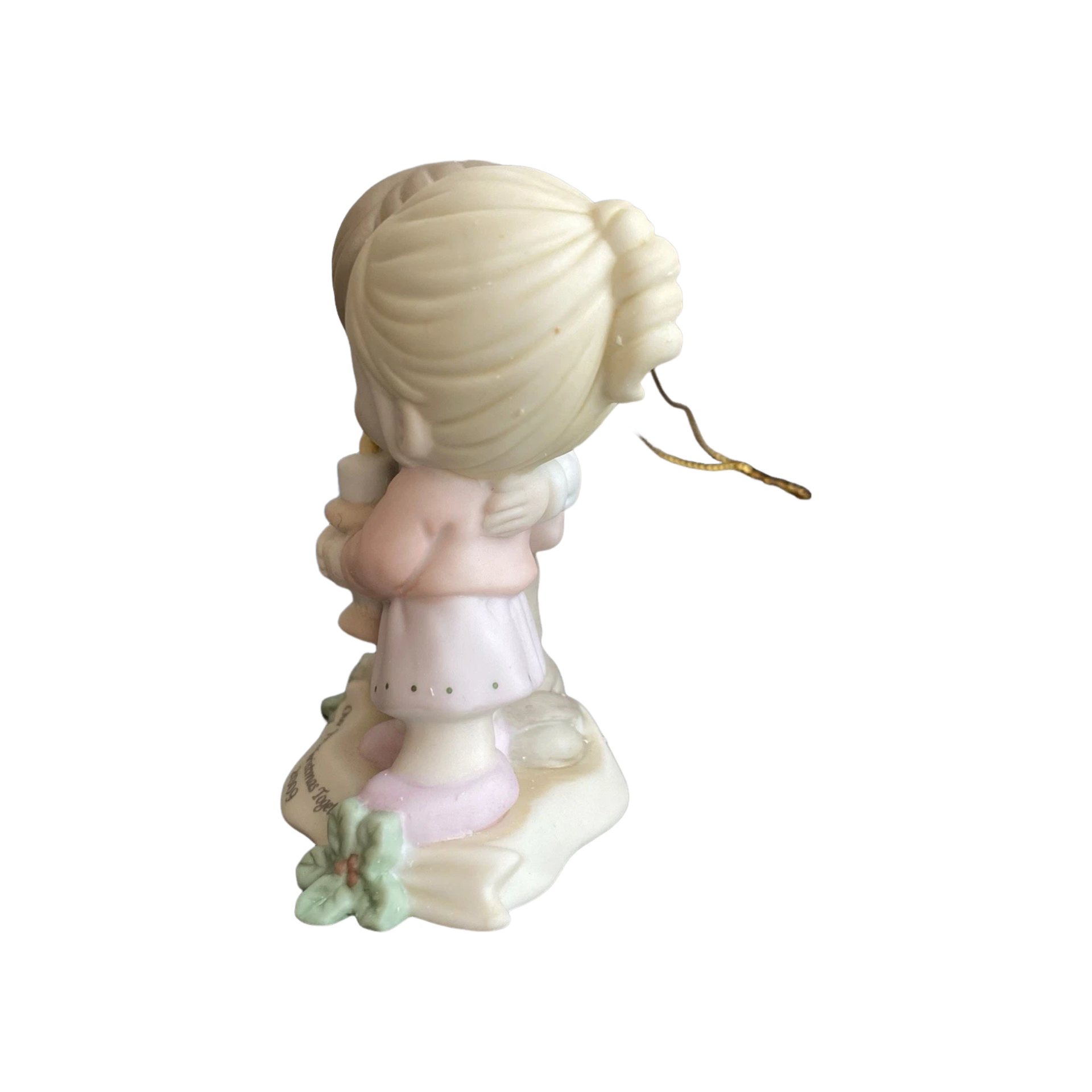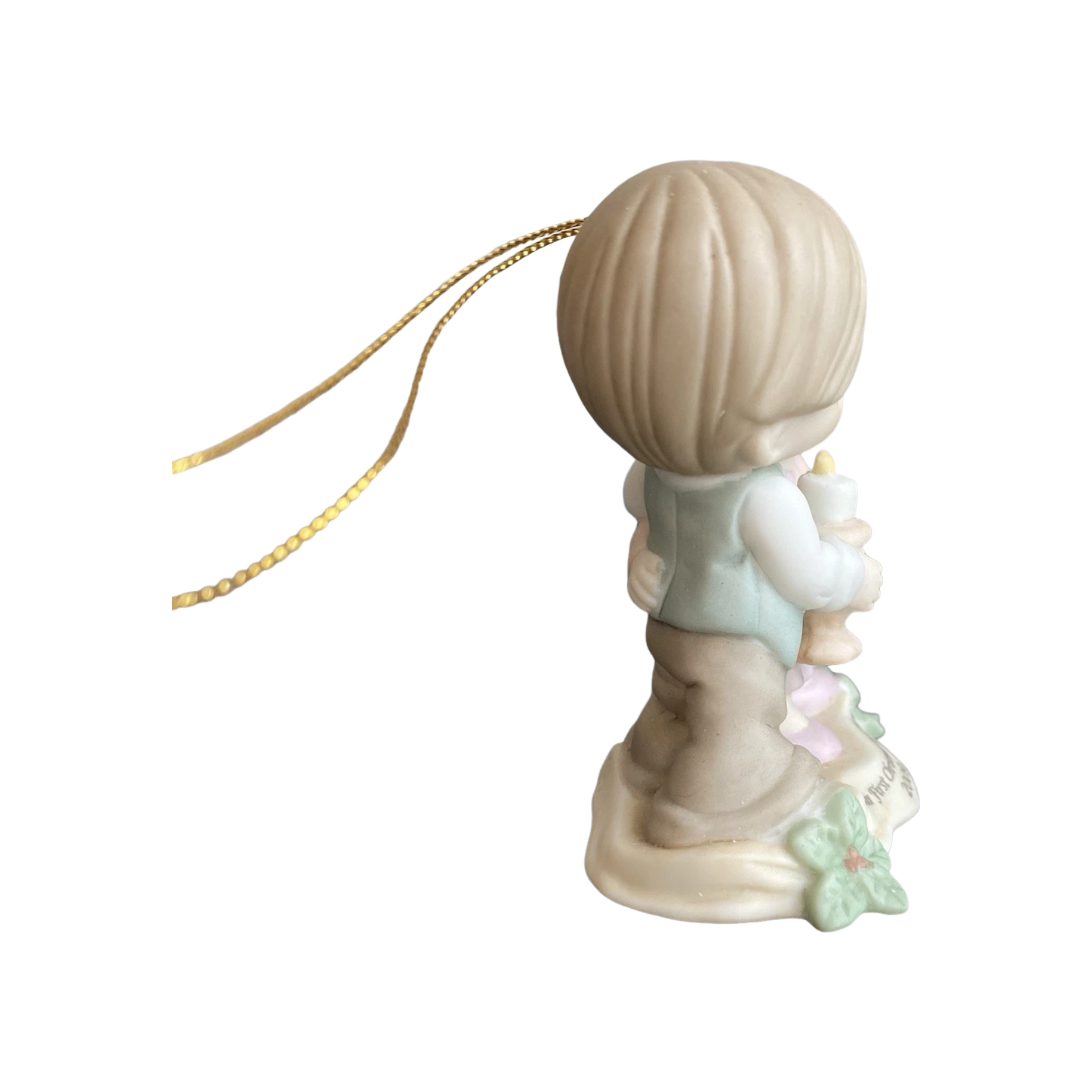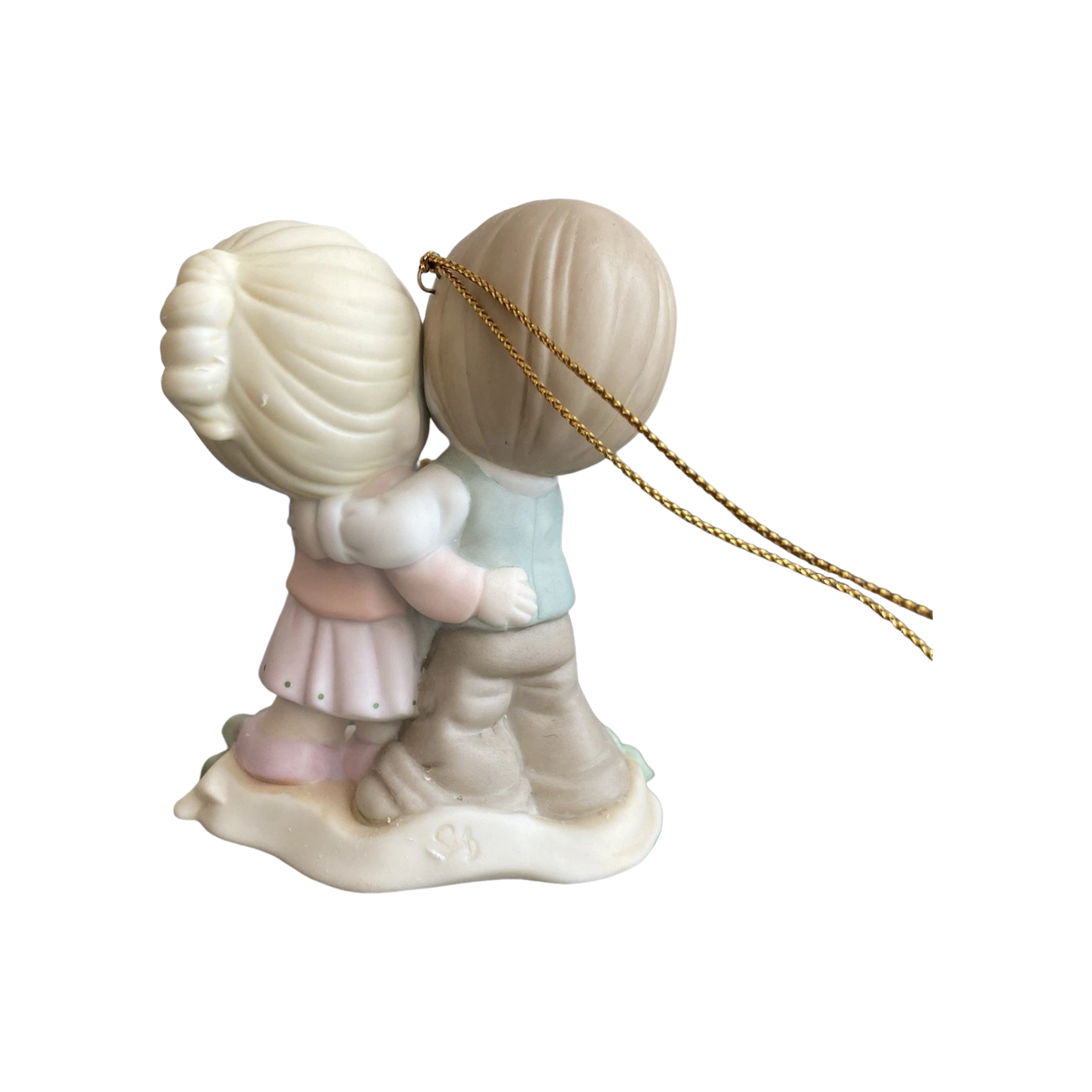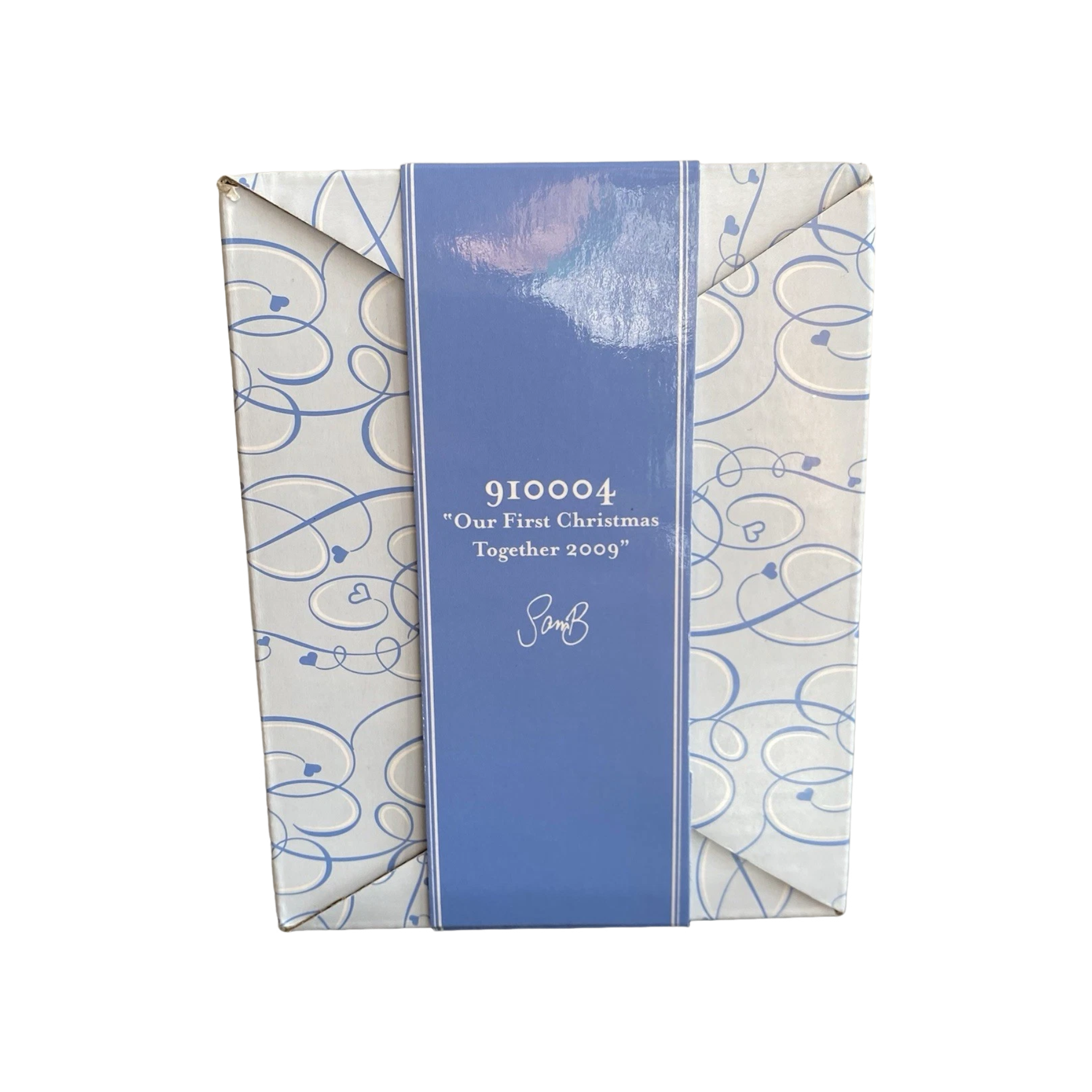 This sentimental 2008 Precious Moments Our First Christmas Together ornament, dated 2009, depicts a sweet boy and girl couple standing close together while holding a glowing unity candle, symbolizing the warmth, joy, and shared memories of a couple’s first holiday season together. Crafted in fine porcelain bisque with Precious Moments’ signature hand-painted pastel details, this commemorative ornament makes a meaningful keepsake for newlyweds, partners, or anyone celebrating a first Christmas as a couple.