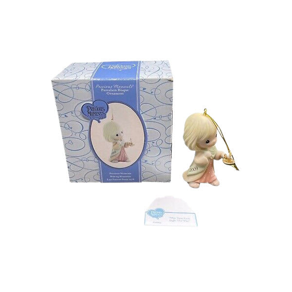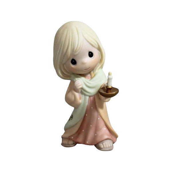 The 2008 ornament features a young girl holding a candle. Crafted from porcelain bisque with a matte finish, the ornament has a multicolor design that adds a festive touch to any holiday decor.
