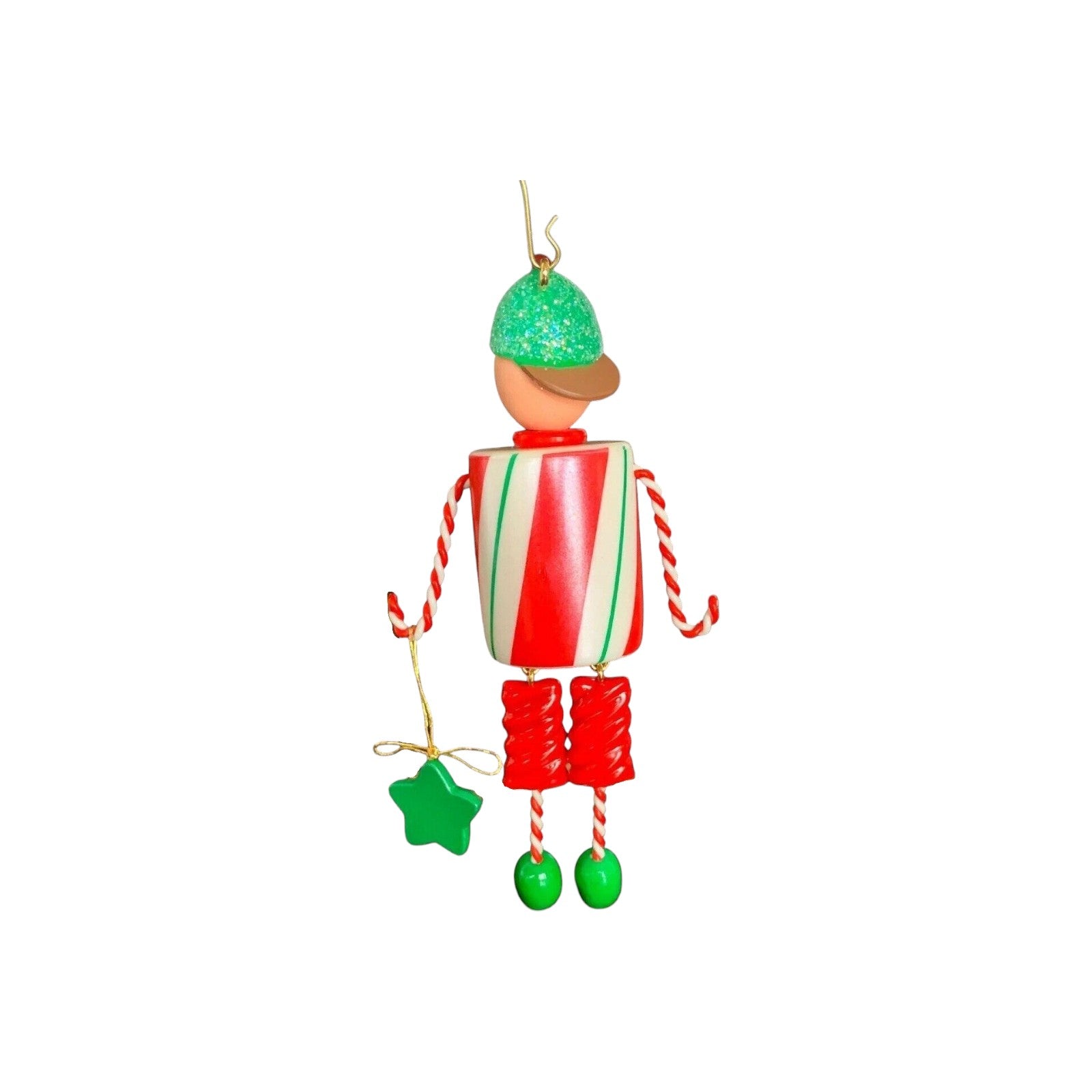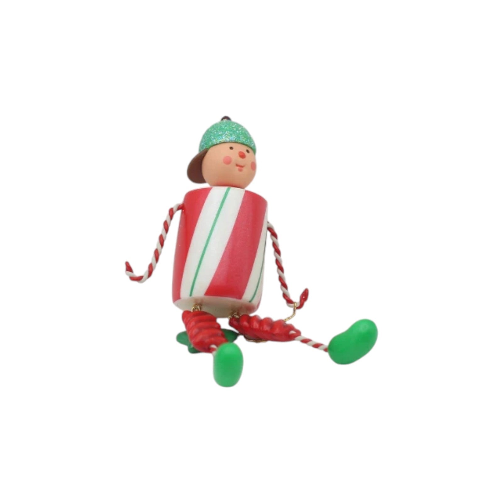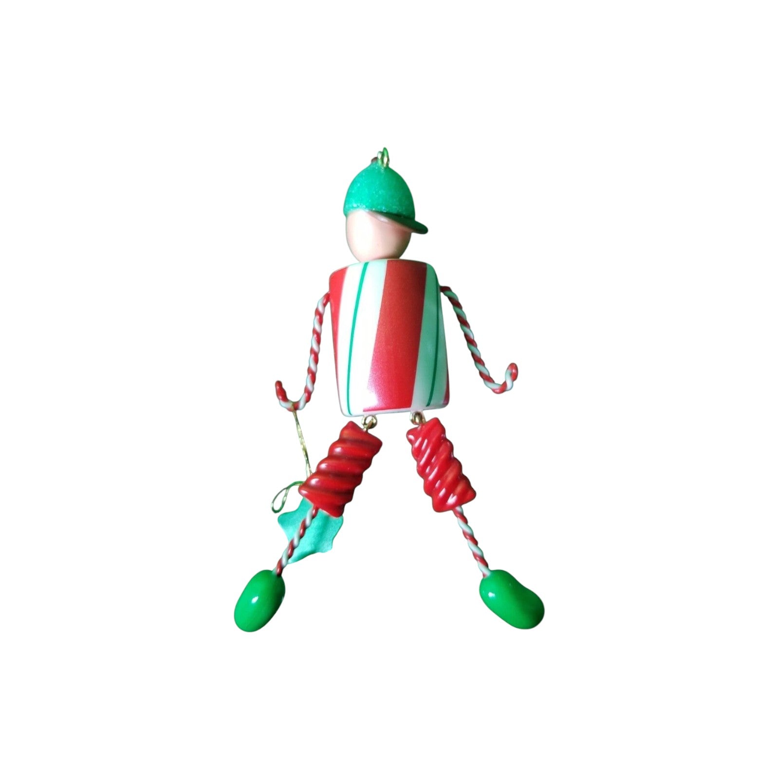 Celebrate the young boy in your life with the 2008 Keepsake ornament “Son” (SKU QXG6211) by Hallmark. This cheerful design portrays “Candy Son” — crafted to resemble a sweet holiday treat with peppermint-striped body, candy-cane arms and legs, and a bright red heart marked “Son.” Designed by artist Nina Aubé, it features vibrant holiday colors and candy-themed detailing. Standing approximately 3.75″ tall, this ornament blends festive fun with sentimental value, making it a great collectible piece for Hallmark Keepsake fans and family-themed ornament collectors alike.
