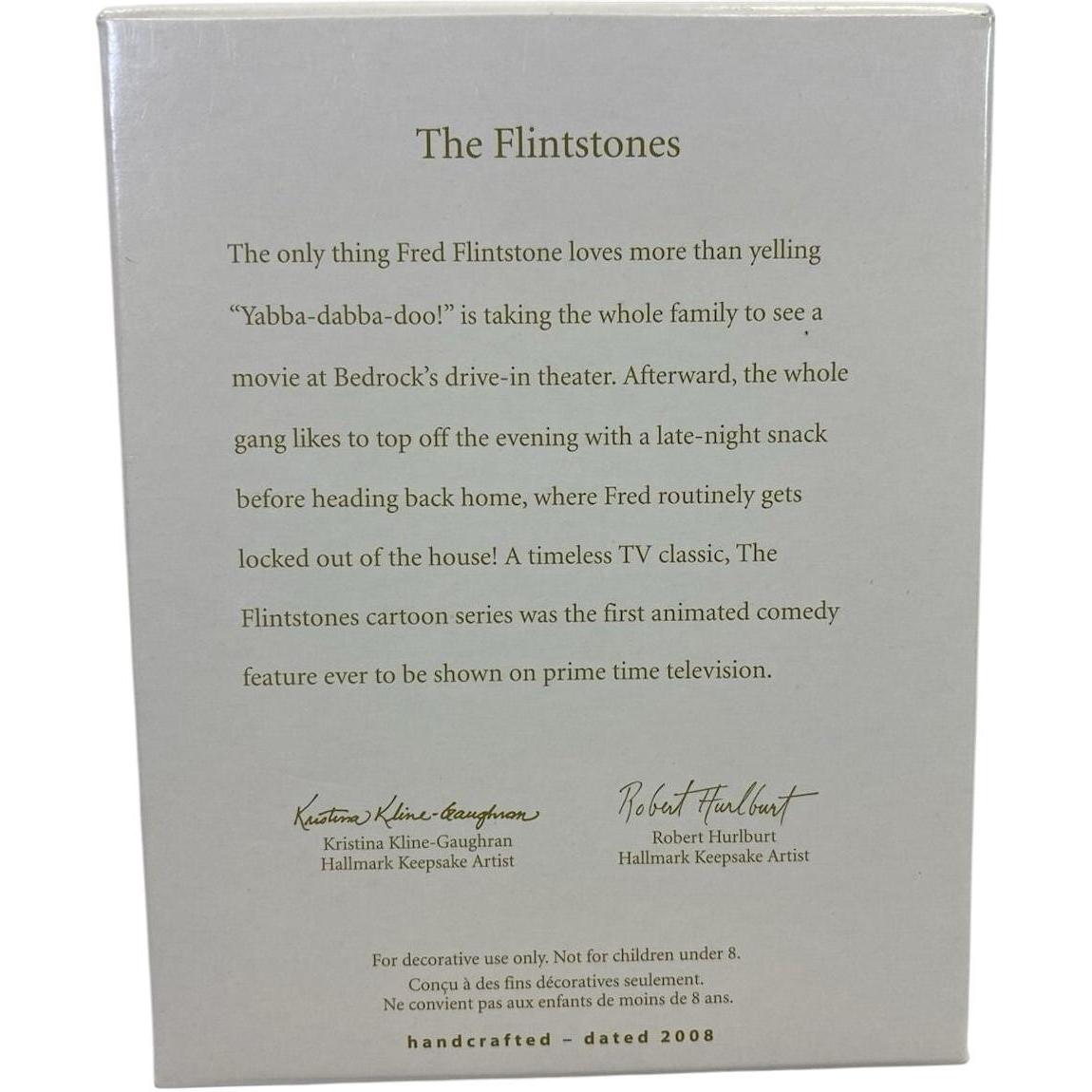 Take a trip back to Bedrock with this fun and nostalgic 2008 Hallmark Keepsake ornament. The design captures Fred, Wilma, Pebbles, and Dino all piled into their classic stone-age car — with Dino’s head popping out of the top and Pebbles riding on his head. The ornament includes the original box and molded insert when in mint packaging.