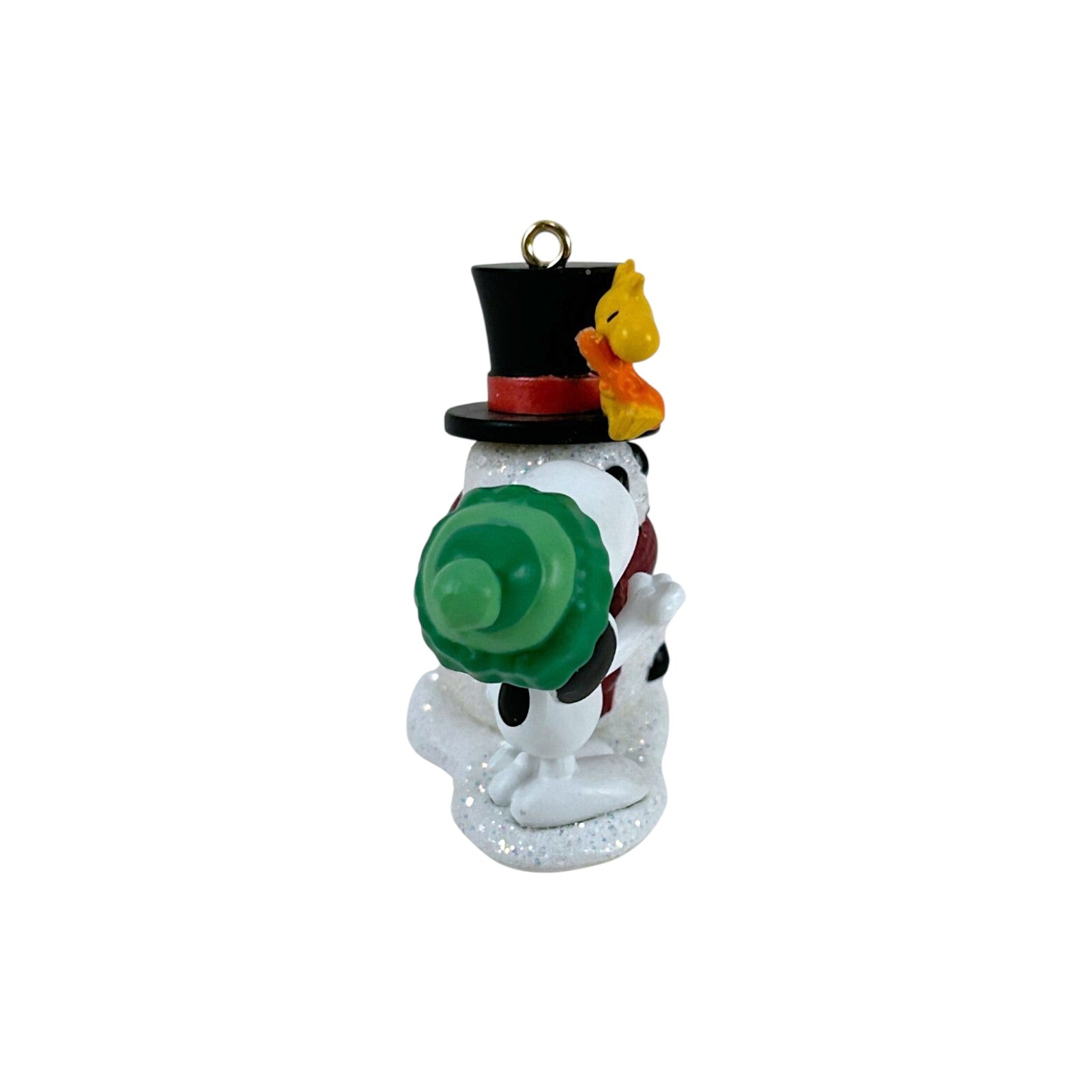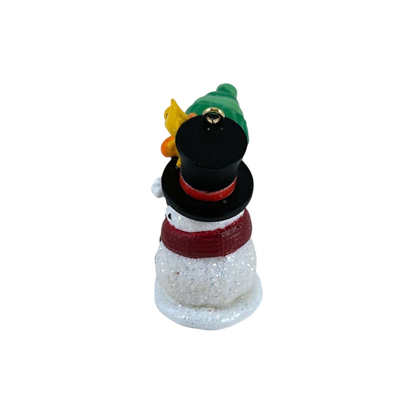 Celebrate winter joy with the 2008 Winter Fun with Snoopy miniature ornament—the 11th edition in Hallmark's delightful Winter Fun with Snoopy series. This charming scene captures Snoopy building a snowman with Woodstock perched atop the snowman’s top hat as Snoopy ties on the bright red scarf. Crafted from durable resin/plastic by artist Tracy Larsen, the piece is officially dated 2008 and measures approximately 1¼″ wide. It arrives mint in box with its original tag, and being fully static, it requires No Power Needed—ready to adorn a tabletop tree, wreath, or cozy scene.