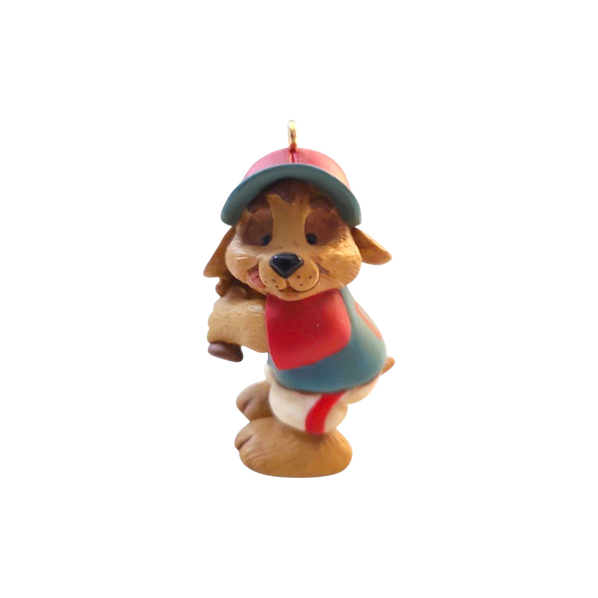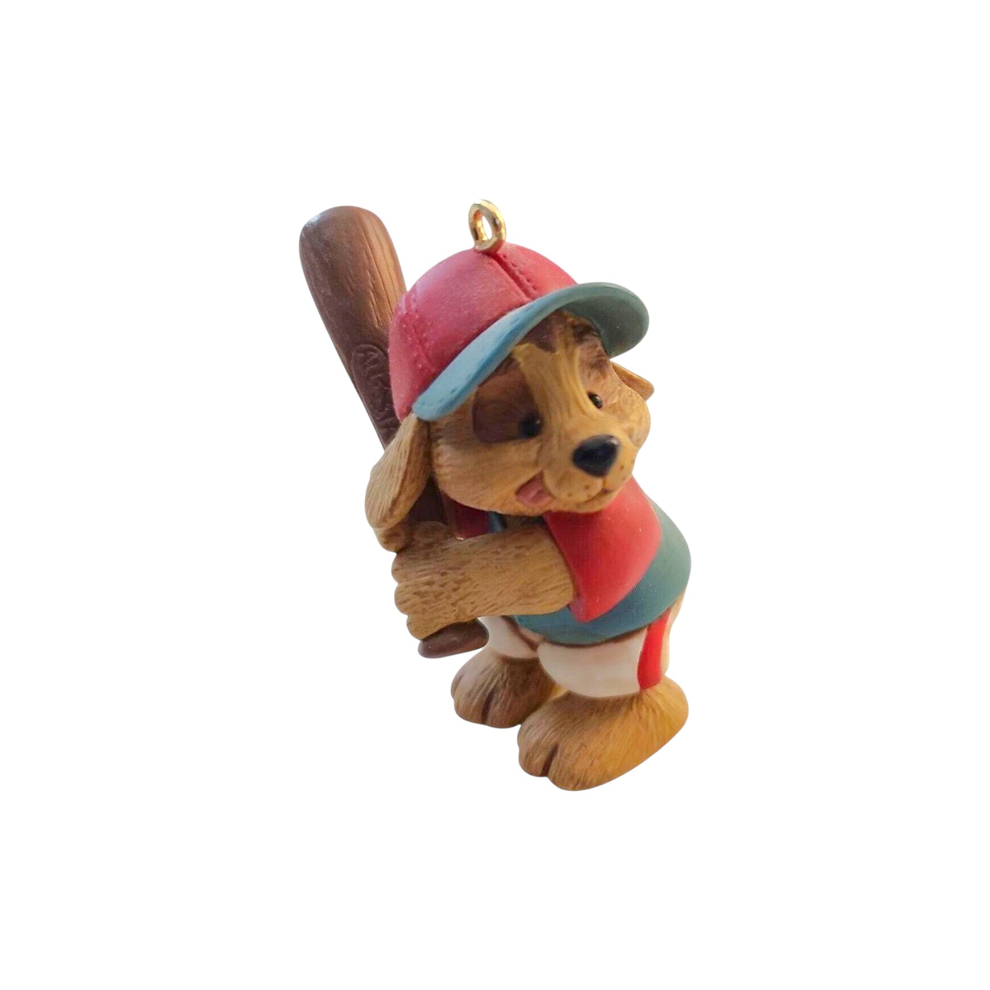 Slide into holiday spirit with the 2009 All-Star Ballplayer keepsake ornament. This charming design depicts a playful puppy in a baseball cap and jersey, wielding a bat — a fun tribute to budding baseball fans. The ornament is item QXG6745, introduced by Hallmark in 2009.