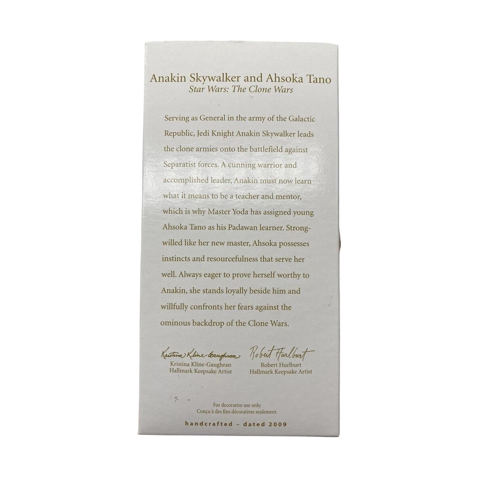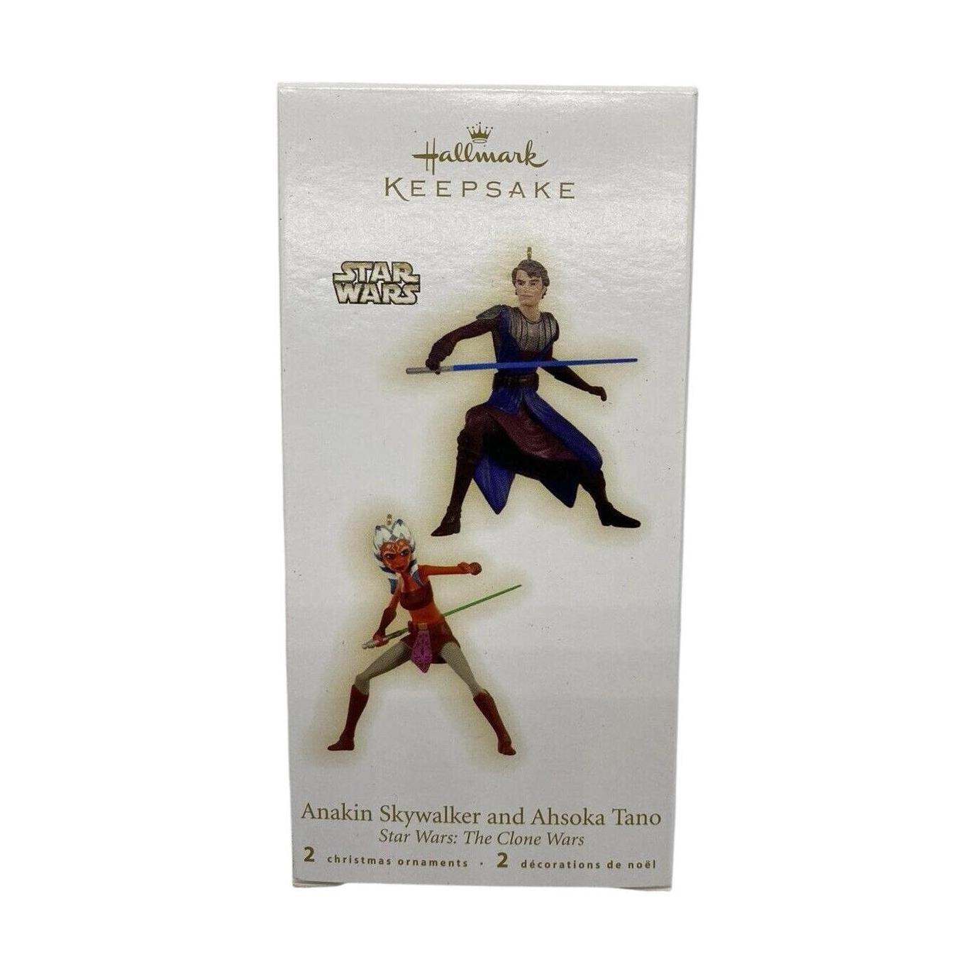 Bring the bond of master and apprentice to your holiday décor with this 2009 Hallmark Keepsake miniature set featuring Jedi Knight Anakin Skywalker and his Togruta Padawan, Ahsoka Tano, from The Clone Wars. Sculpted in action-ready poses, Anakin at 2½″ and Ahsoka at 2¼″, the dynamic duo arrives mint-in-box with original tags. No batteries, cords, or power required—simply hang and embrace the Force.
