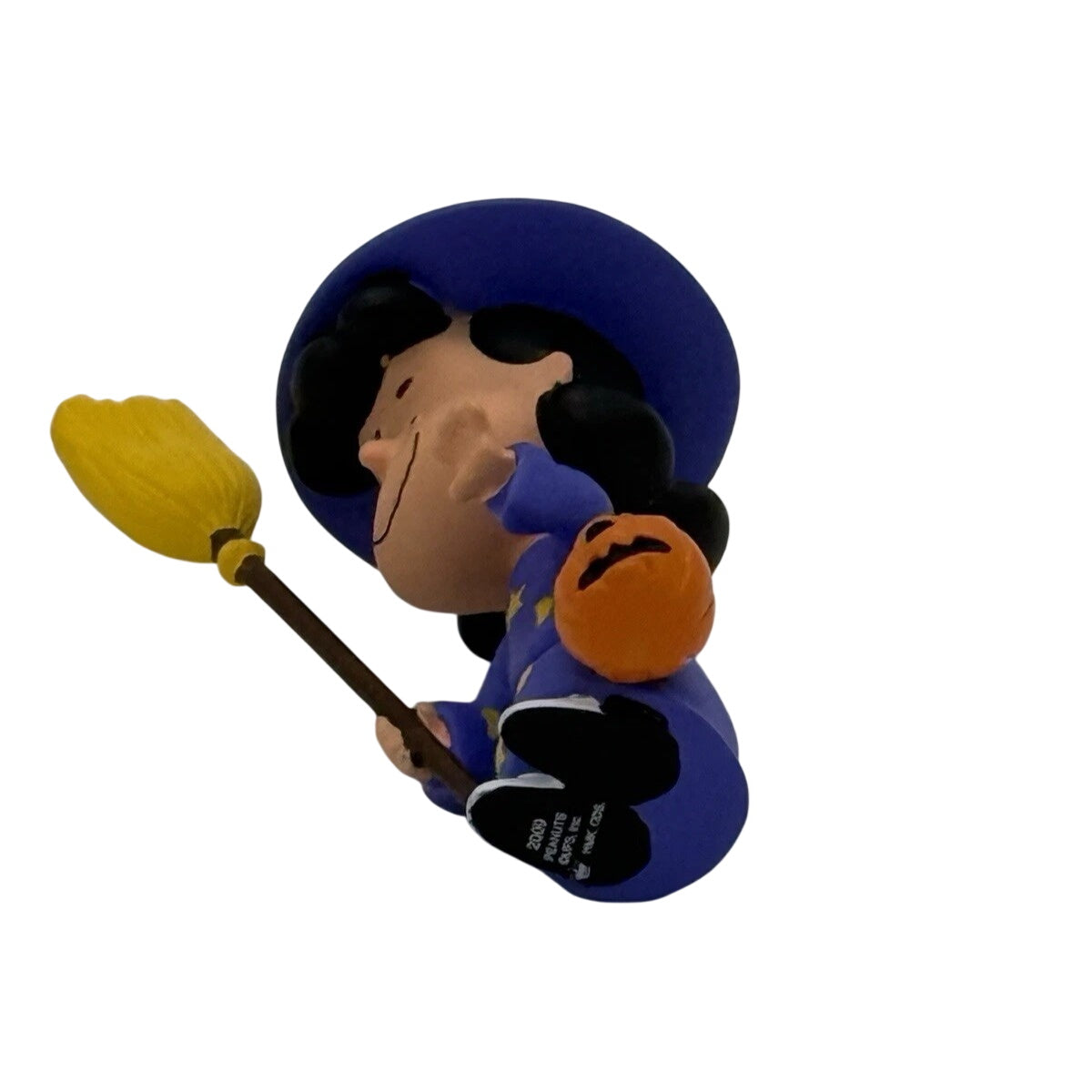Dive into a whimsical Halloween with this 2009 Bewitching Lucy ornament from the Peanuts Gang series. This charming keepsake features Lucy costumed as a delighted witch—complete with a purple star-spangled broom, matching hat, and jack-o’-lantern treat bucket, this resin/plastic piece captures every detail of Lucy’s magical moment. No batteries or cords are required—just hang and enjoy. It arrives mint-in-box with Hallmark tags and Halloween-themed installation instructions.