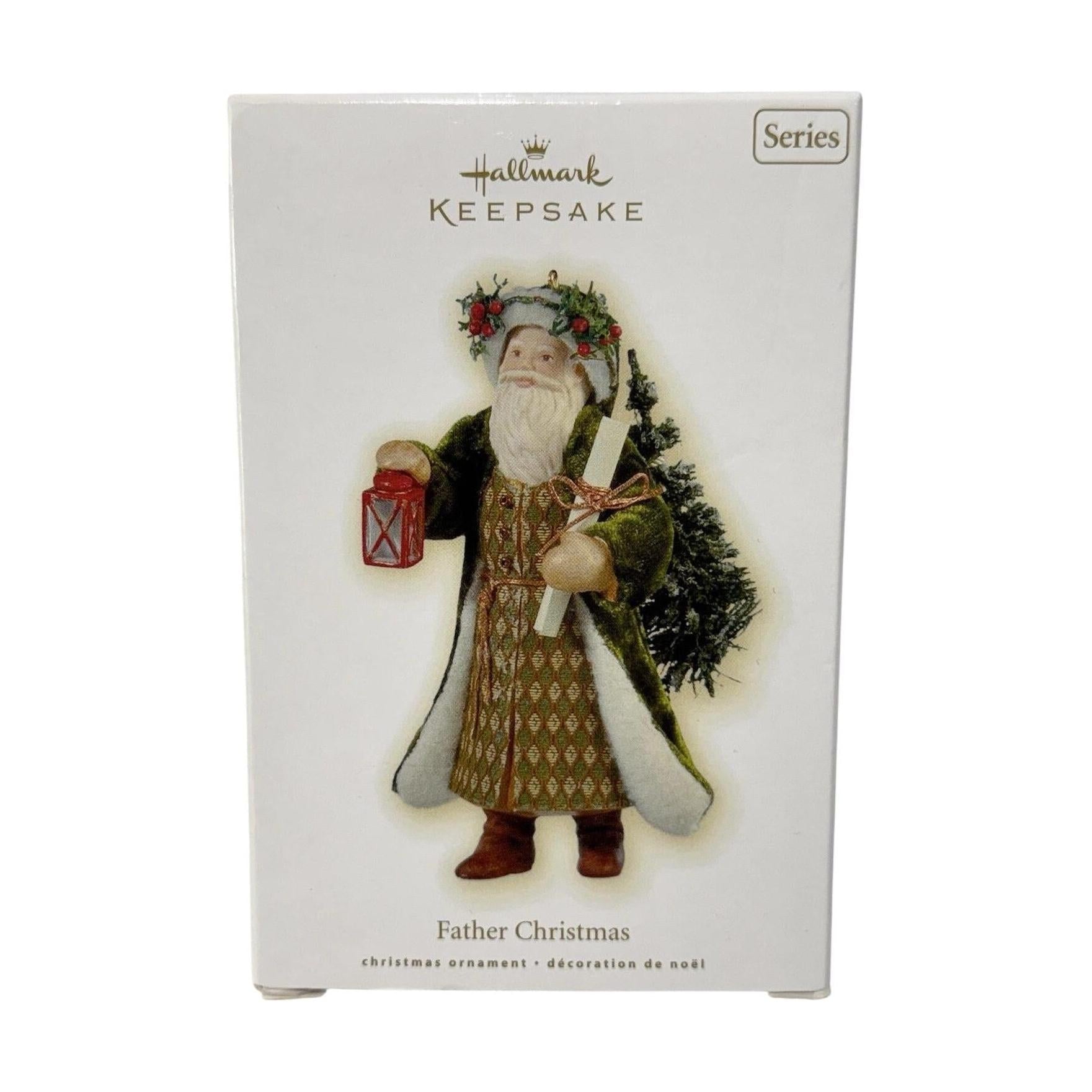 Step into a world of timeless holiday elegance with the 2009 Father Christmas, the sixth iconic piece in Hallmark’s beloved Father Christmas series. Santa is dressed in a luxurious green velvet coat, carrying a lantern, a scroll reading, “Where Christmas lives, love endures…and hope is evergreen,” and a small evergreen tree on his back—symbols of peace and hope in winter’s chill. Designed by Joanne Eschrich, this ornament stands approximately 5¾″ tall and arrives mint-in-box with original Gold Crown exclusive packaging and hang tag. No batteries, cords, or light strings required—just hang and let its hopeful message shine.
