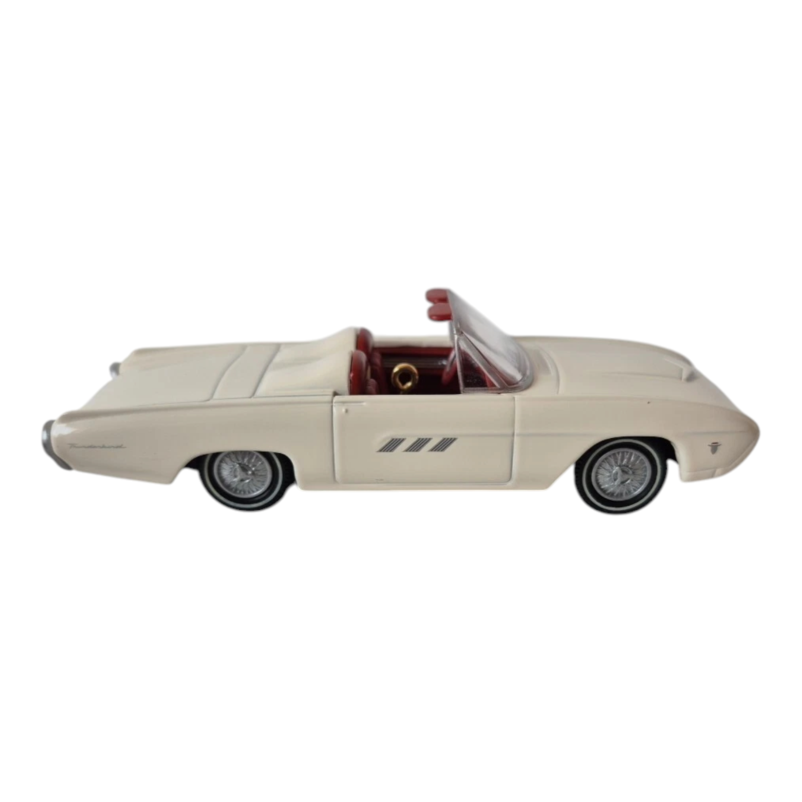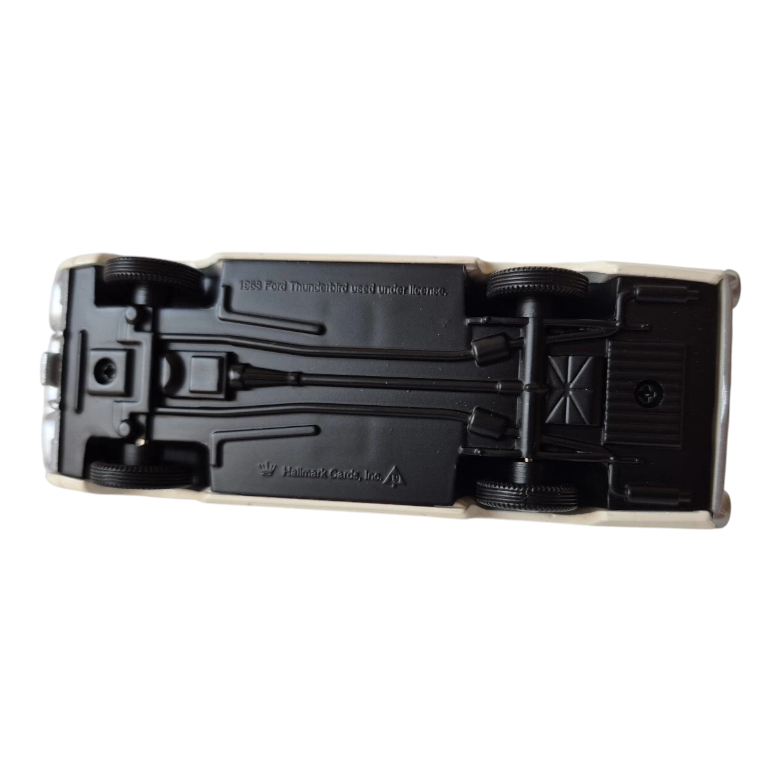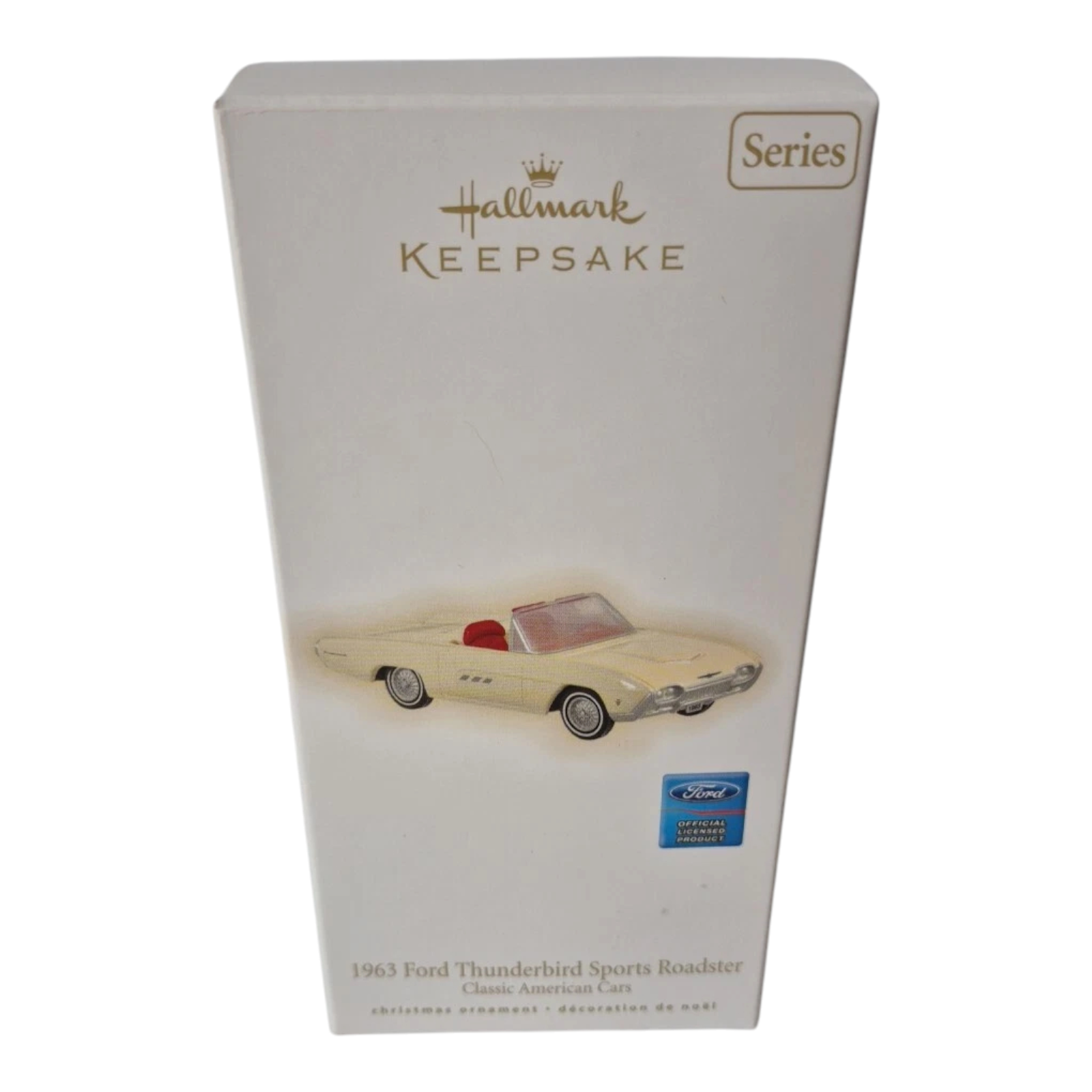 Add some sleek style to your holiday décor with the 1963 Ford Thunderbird Sports Roadster, the nineteenth ornament in Hallmark’s Classic American Cars series—released in 2009. Crafted by Don Palmiter, this meticulously detailed die-cast keepsake adorns your tree with features like real wire wheels, special fender badges, and a fiberglass tonneau cover—transforming the iconic convertible into a streamlined two-seater. The front license plate reads 1963 (the car's model year), and the rear plate reads 2009 (the ornament's release year). Rolling wheels add a fun, interactive touch, and no power is needed—just hang and let this classic cruise into the festive season.