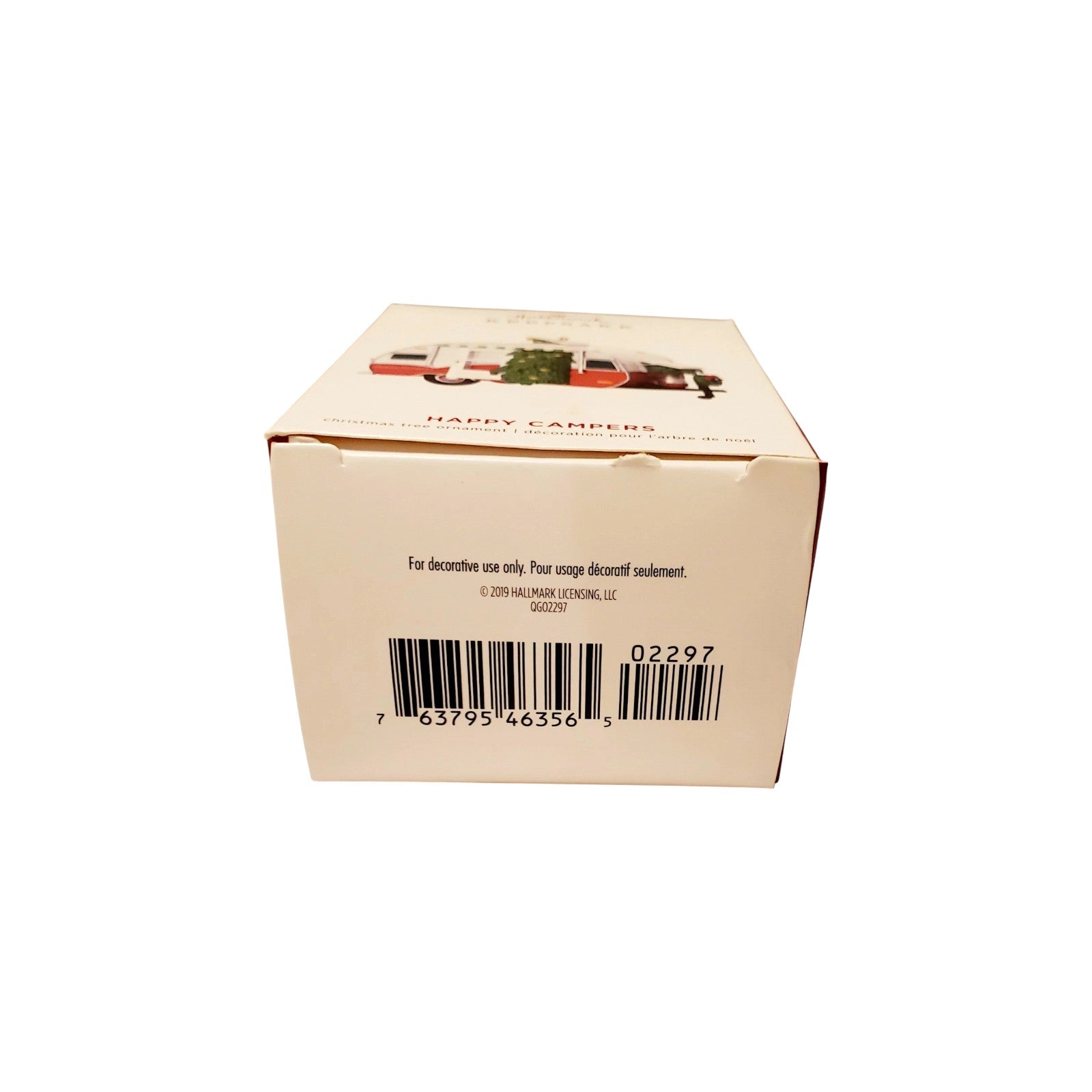 This ornament celebrates an outdoor-travel lifestyle with a camper/RV motif featuring the phrase “Happy Campers” on the side. The design is intended to capture the joy of camping, road-trips and holiday travel; the piece invites display on a holiday tree for those who love nature, camping or retro-travel themes. It includes a mini-light string grommet to allow insertion of a tree-light bulb so the camper’s windows glow.