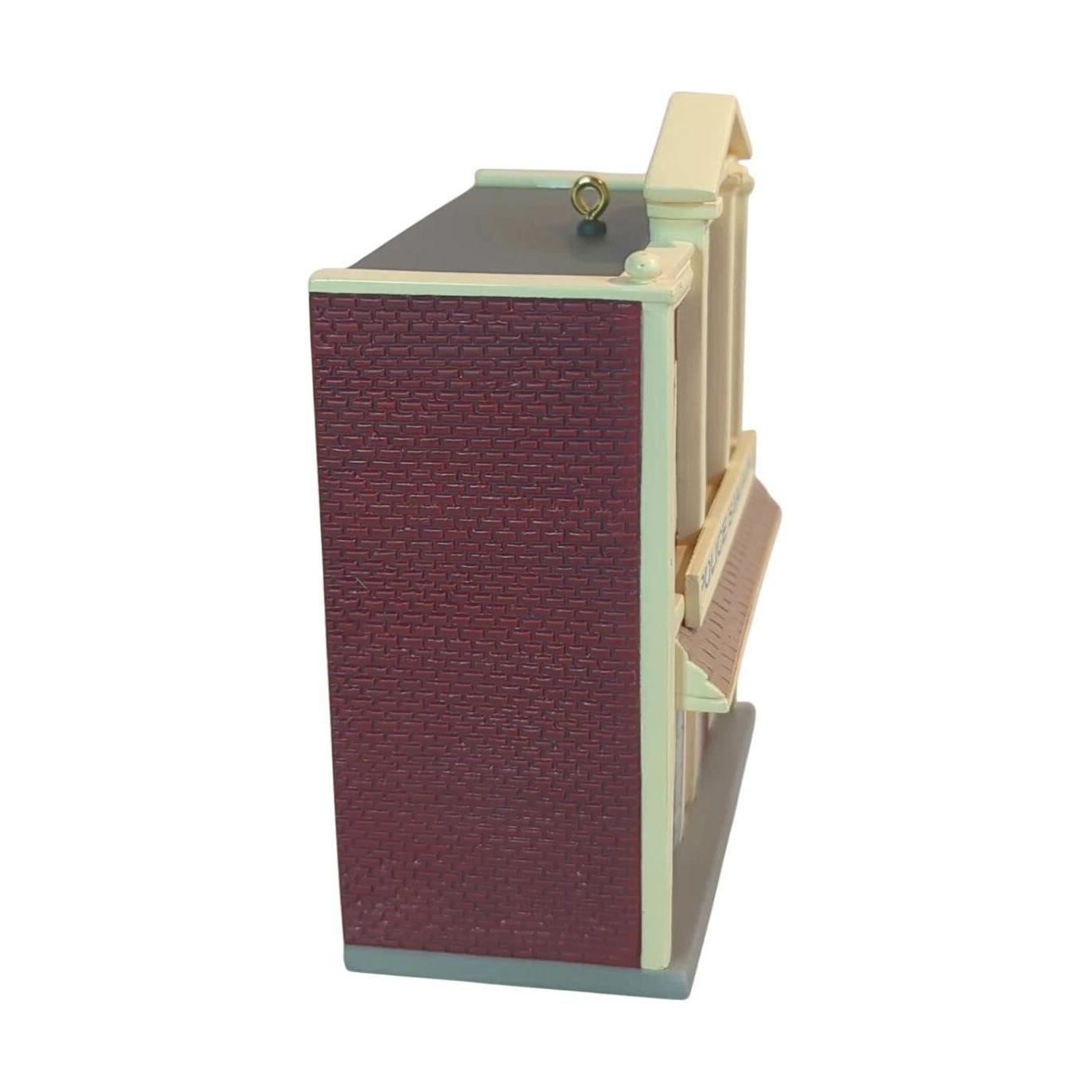 Keep your holiday village safe with the 2009 Keepsake Korners Police Station, the 26th and final release in Hallmark’s Nostalgic Houses & Shops series. Crafted by Don Palmiter, this charming resin-and-plastic ornament features a quaint brick police station complete with a festive Christmas tree inside, detailed windows, and a collectible miniature cruiser issued alongside. Standing approximately 3¾″ tall, it arrives boxed with its original hang tag, ready to hang—no batteries or lights needed