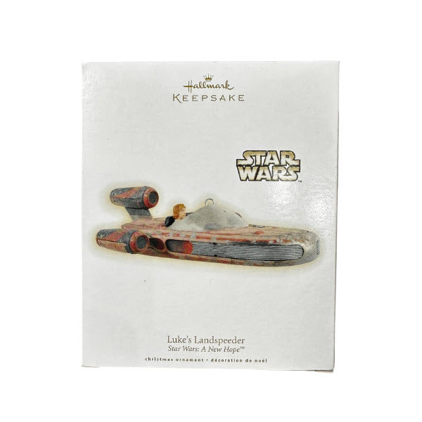 Take a nostalgic ride across Tatooine with this finely sculpted Hallmark “Magic” ornament depicting Luke Skywalker’s iconic X‑34 landspeeder. The piece includes Luke at the controls and replicates the vehicle’s weathered detail. It comes with the original keepsake box and instruction sheet. Powered by three LR44 batteries (included), simply press the base button to trigger realistic engine sounds—no cords required.